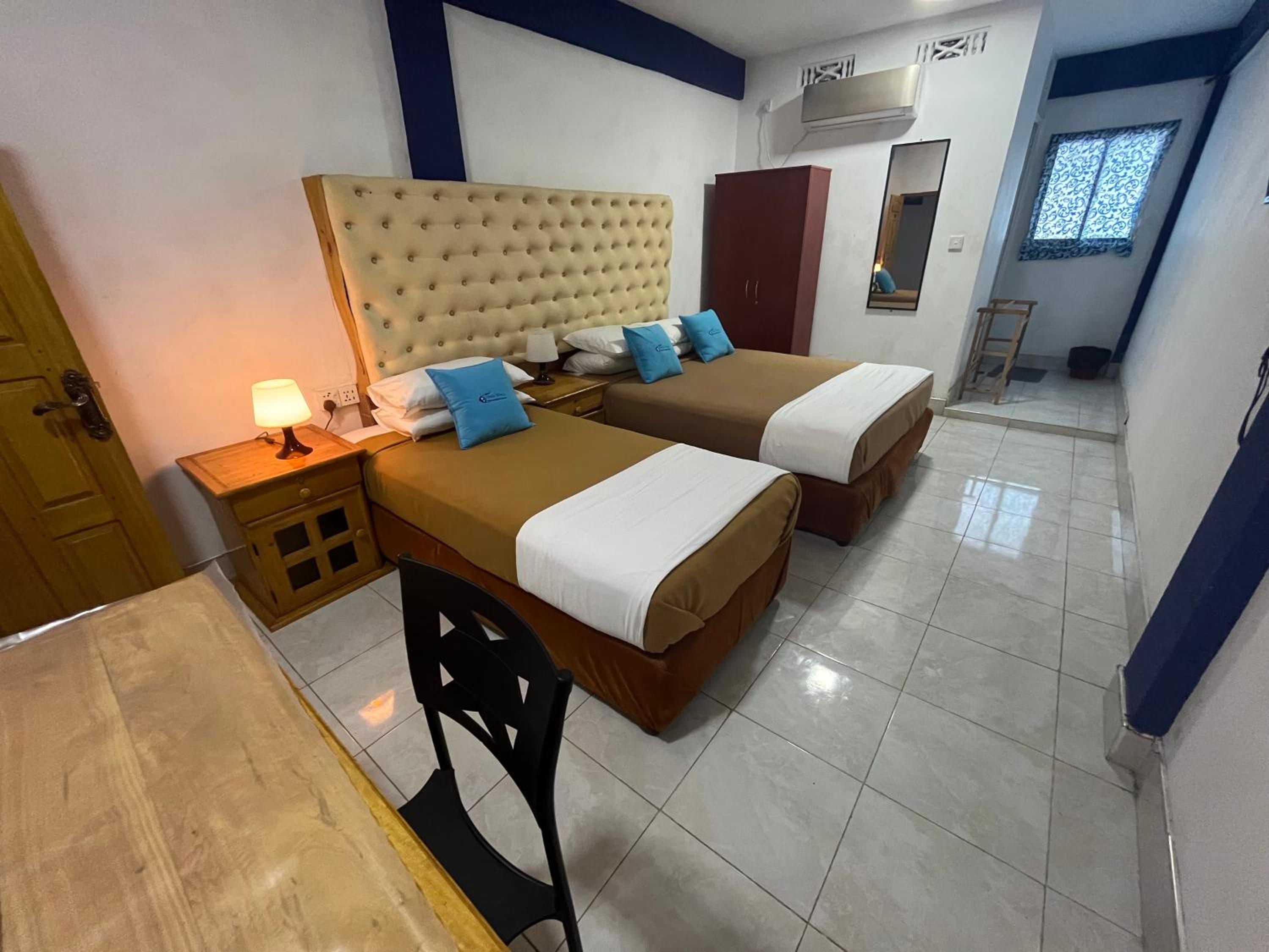 Spacious, clean rooms with comfortable beds, a serene environment, and a safe haven for tourists.