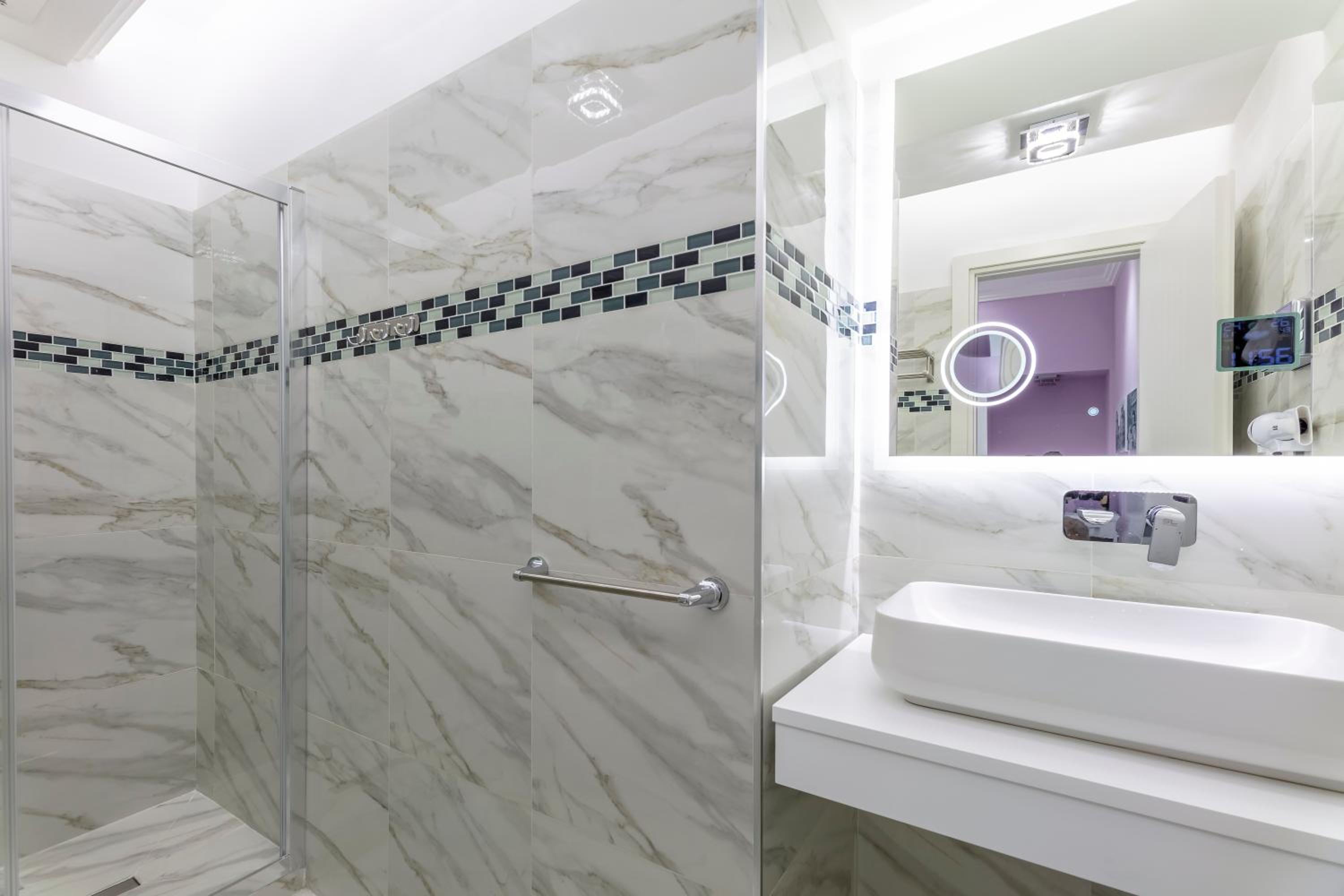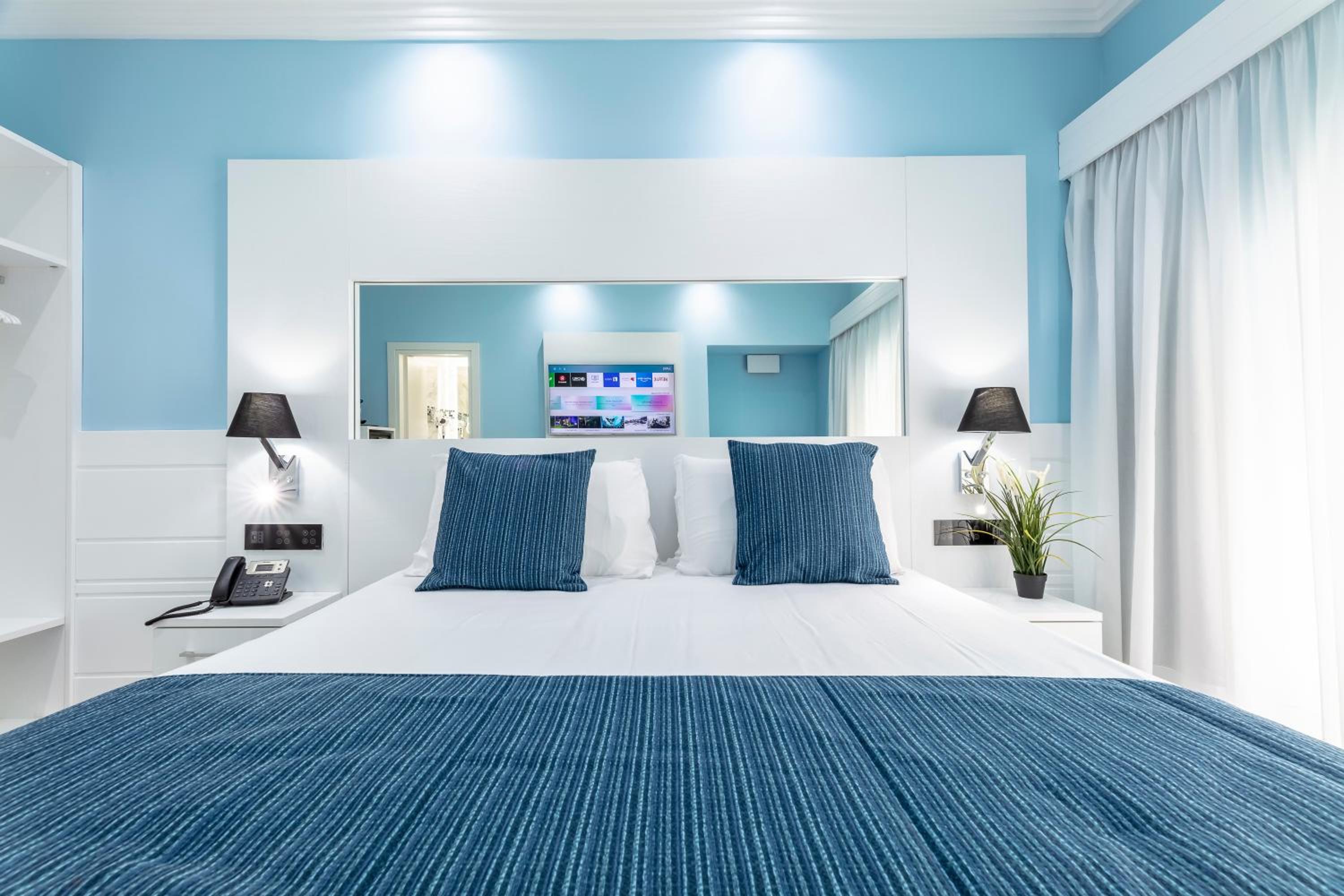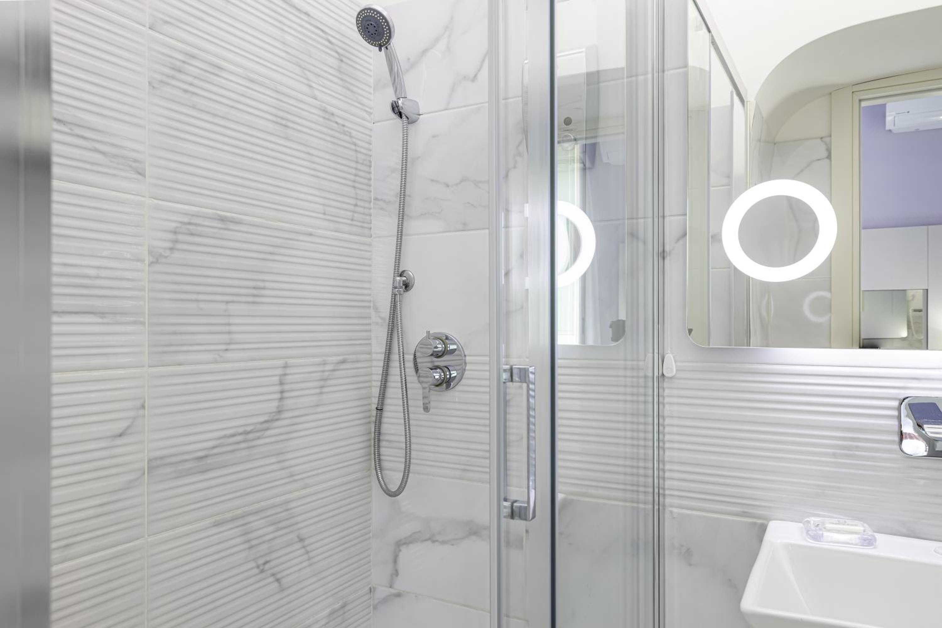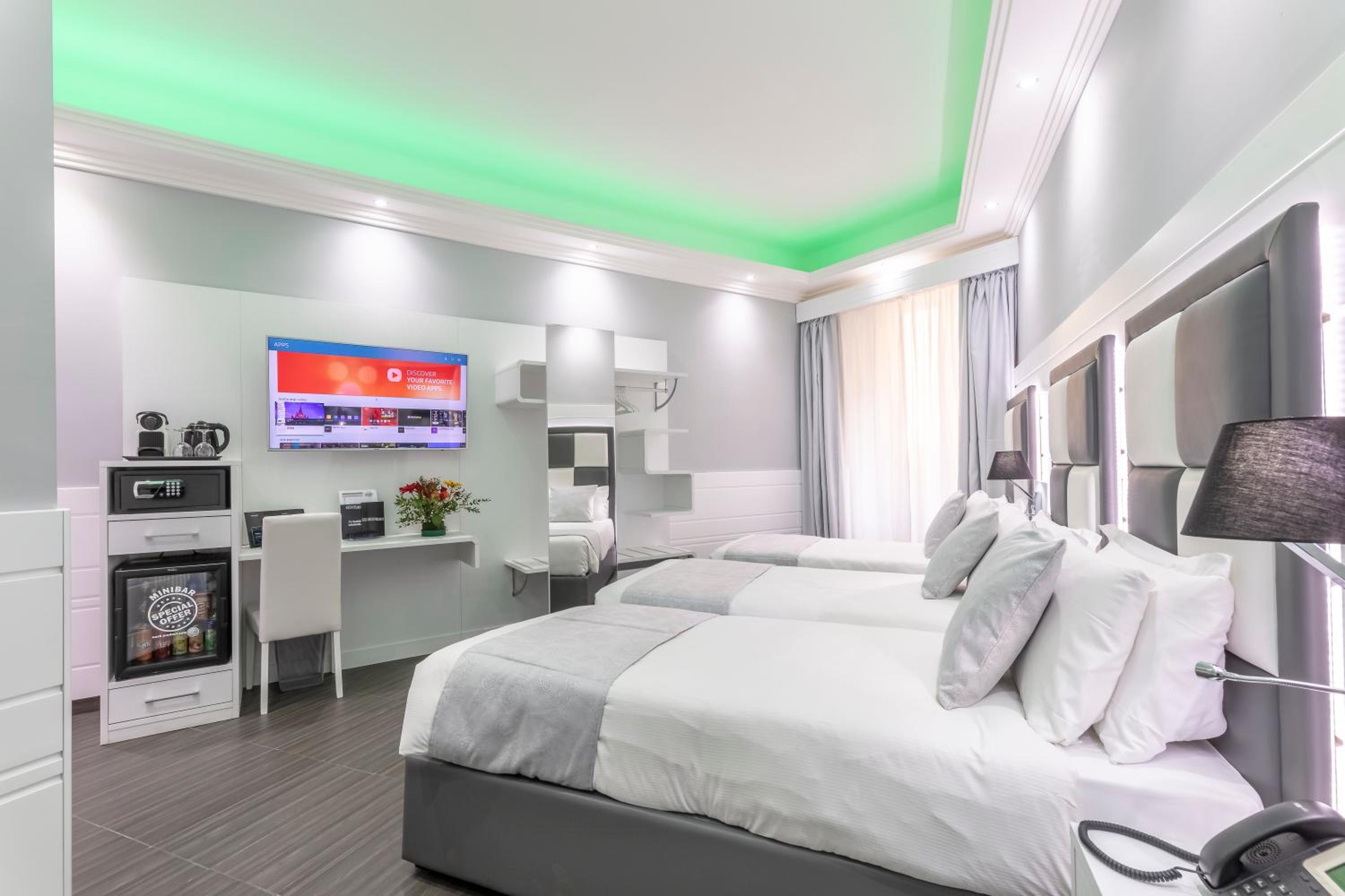 Modern Rooms with Top-notch Amenities: Enjoy a stay in modern-style rooms with design furniture, Smart TV 50", Nespresso® coffee machine, and air conditioning. Some rooms offer city views and all feature a suspended bed and fully equipped private bathroom.