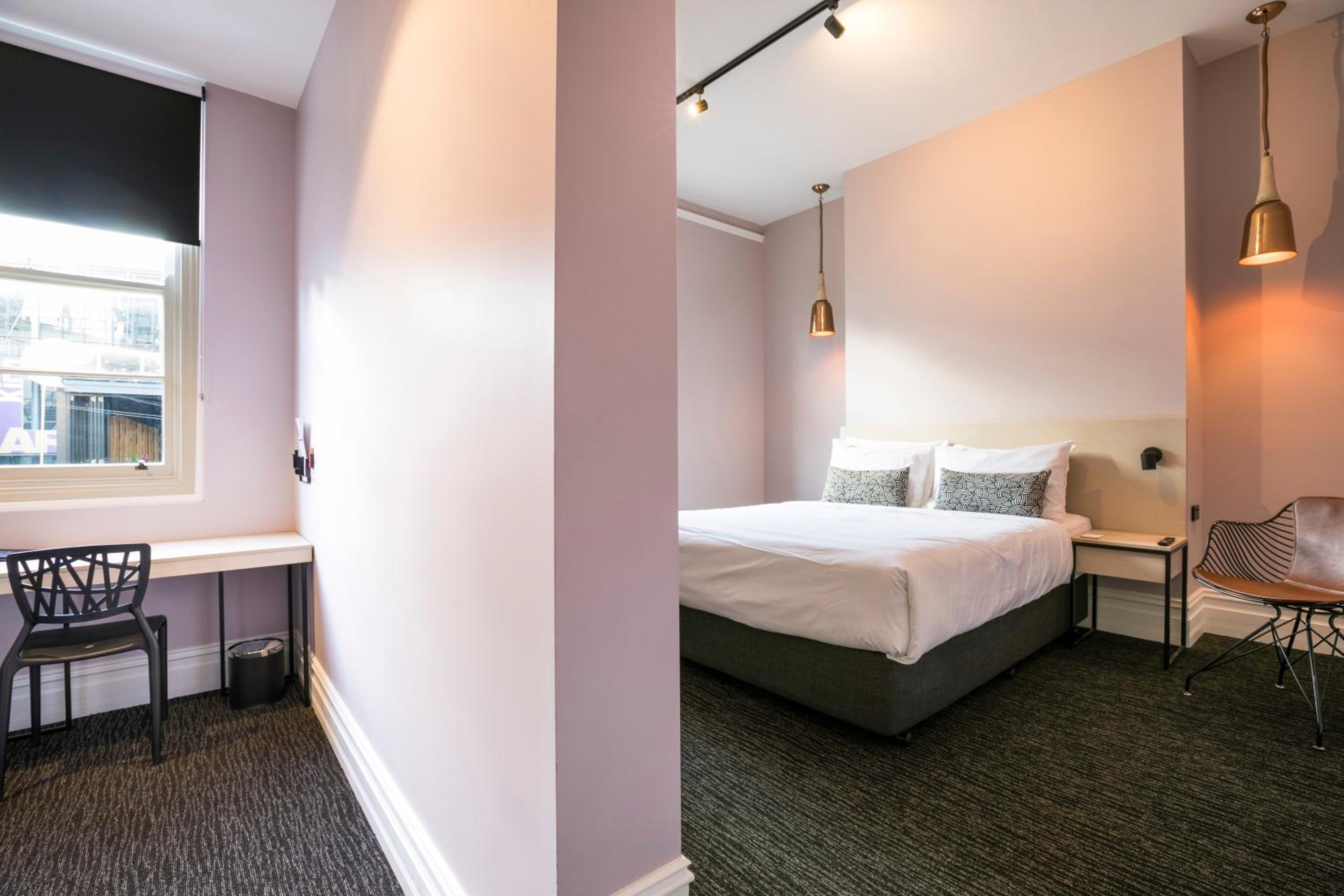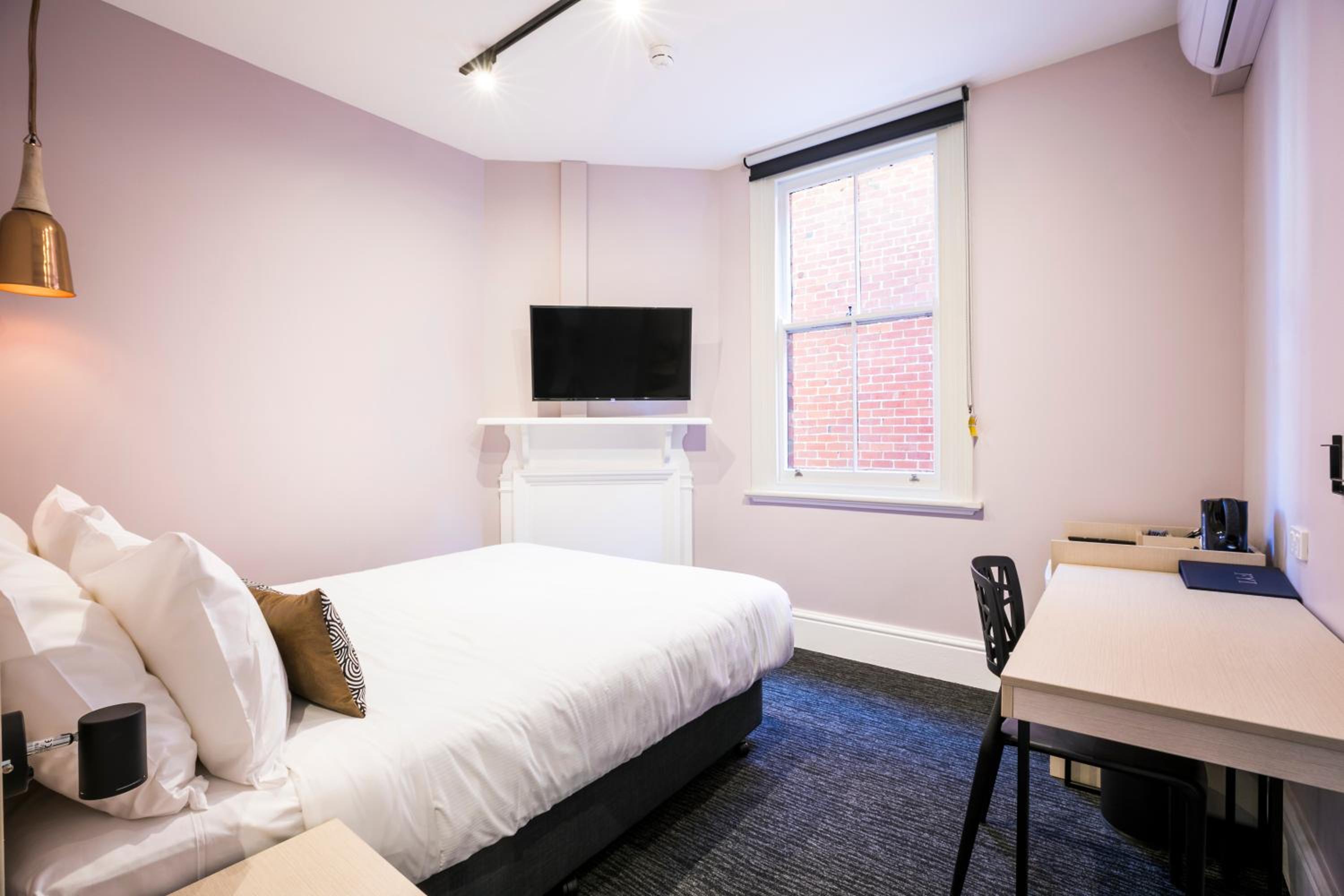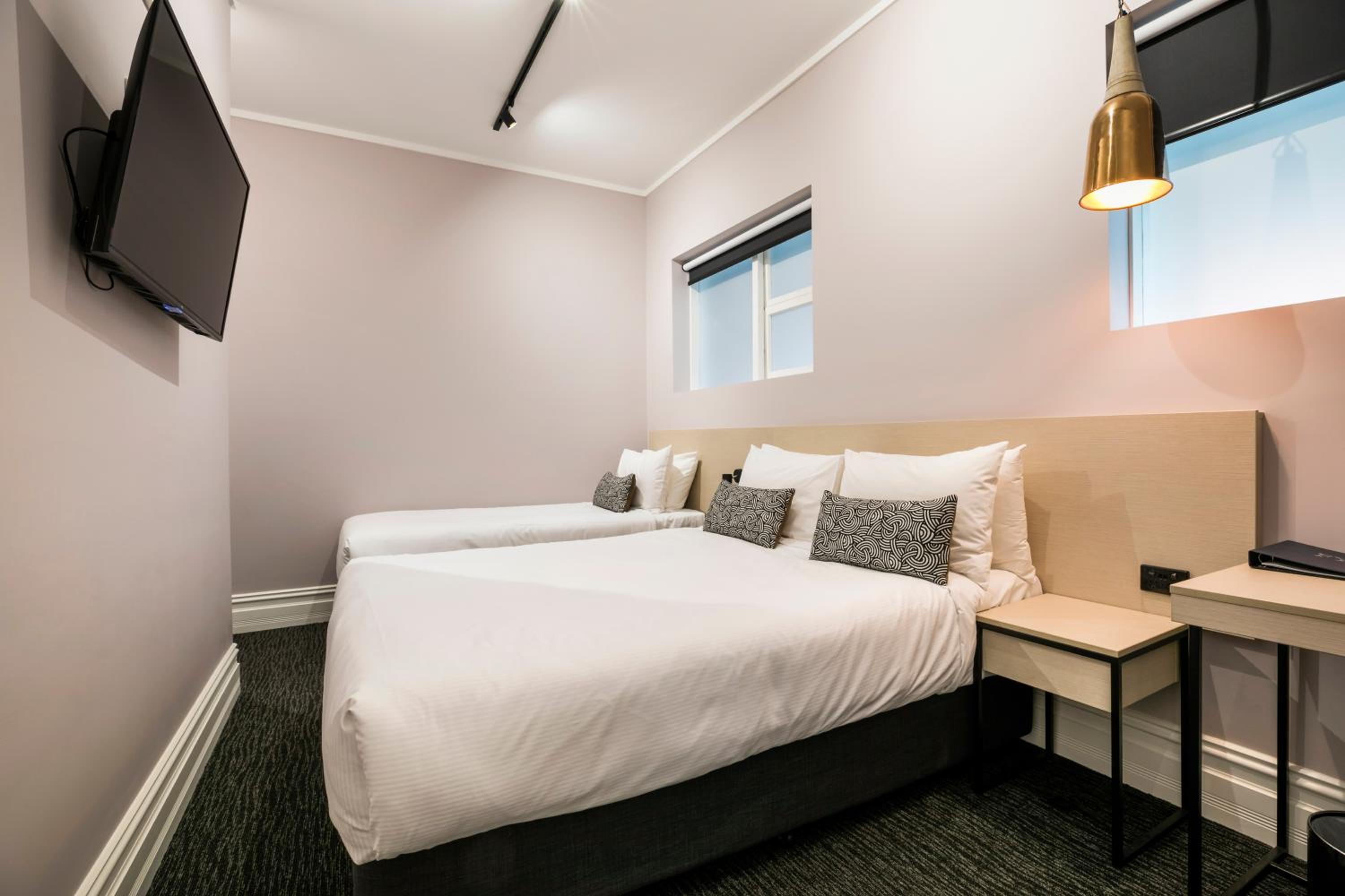 The guest rooms at Nightcap at Belgian Beer Cafe are thoughtfully designed to provide a comfortable stay. With amenities like flat-screen TVs and fridges in every room, guests can relax and unwind in style.