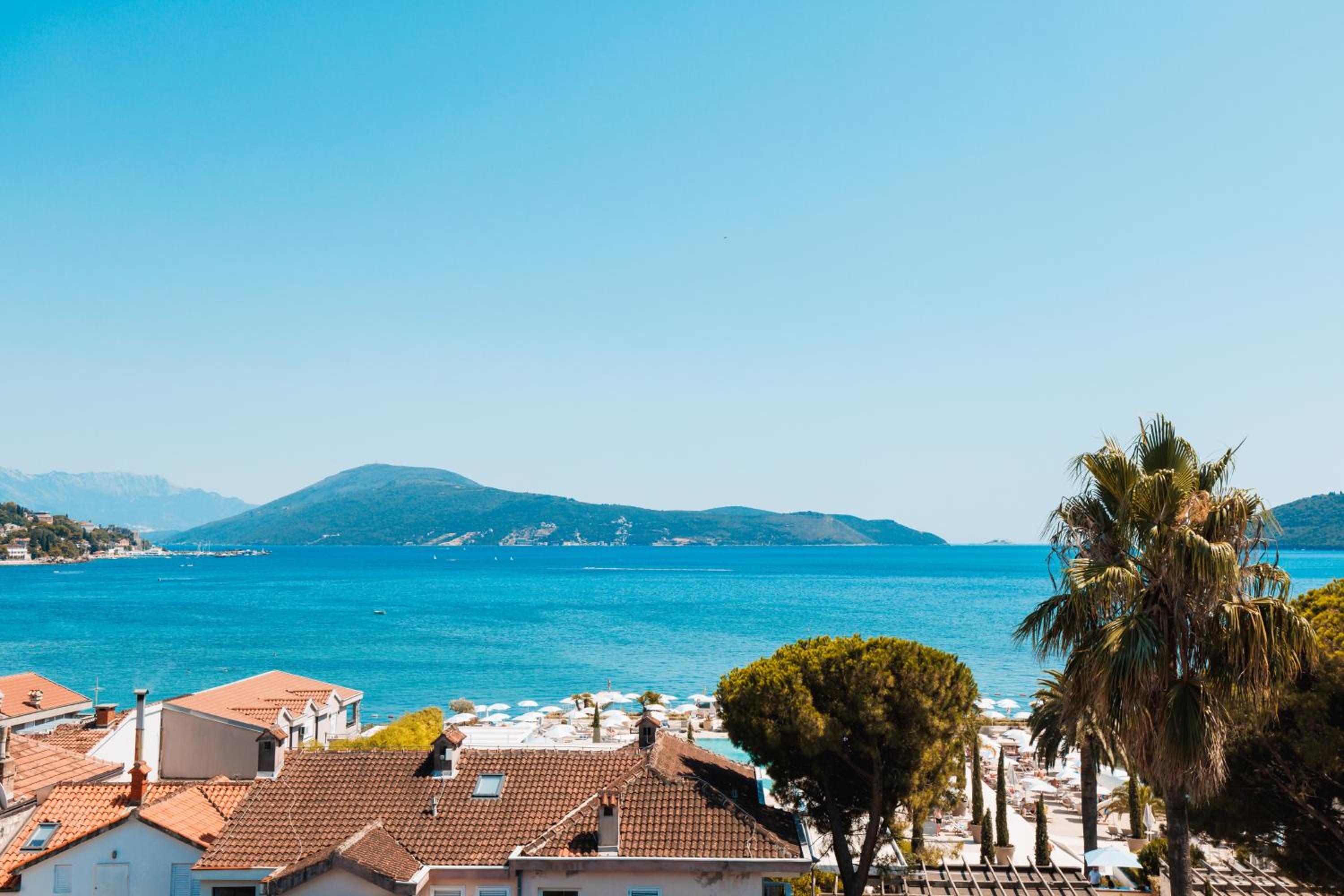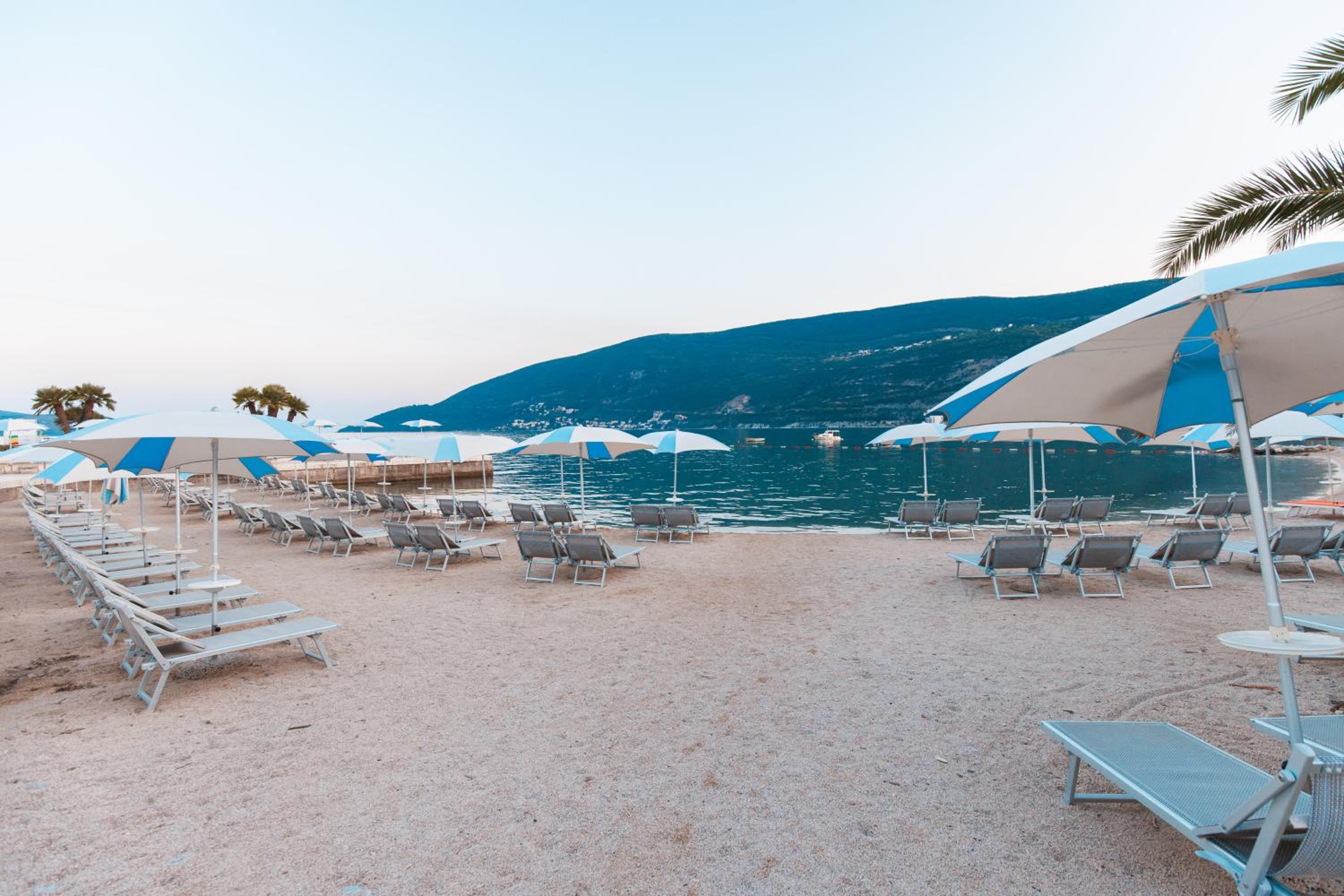 Palmon Bay Hotel & Spa offers a luxurious stay with a swimming pool and breathtaking views of the Adriatic Sea. Each air-conditioned room features a furnished balcony overlooking the Bay of Boka Kotorska, along with modern amenities like a flat-screen TV and a mini bar. The private beach with parasols and sun loungers adds to the charm of this property.
