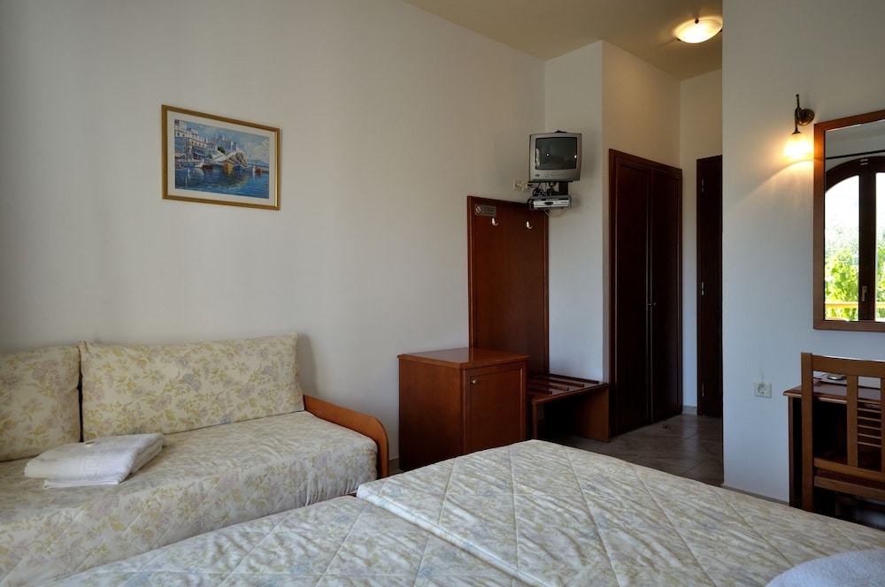 Fint værelse med meget lille køleskab. Morgenmaden spartansk. Poolen kedelig.