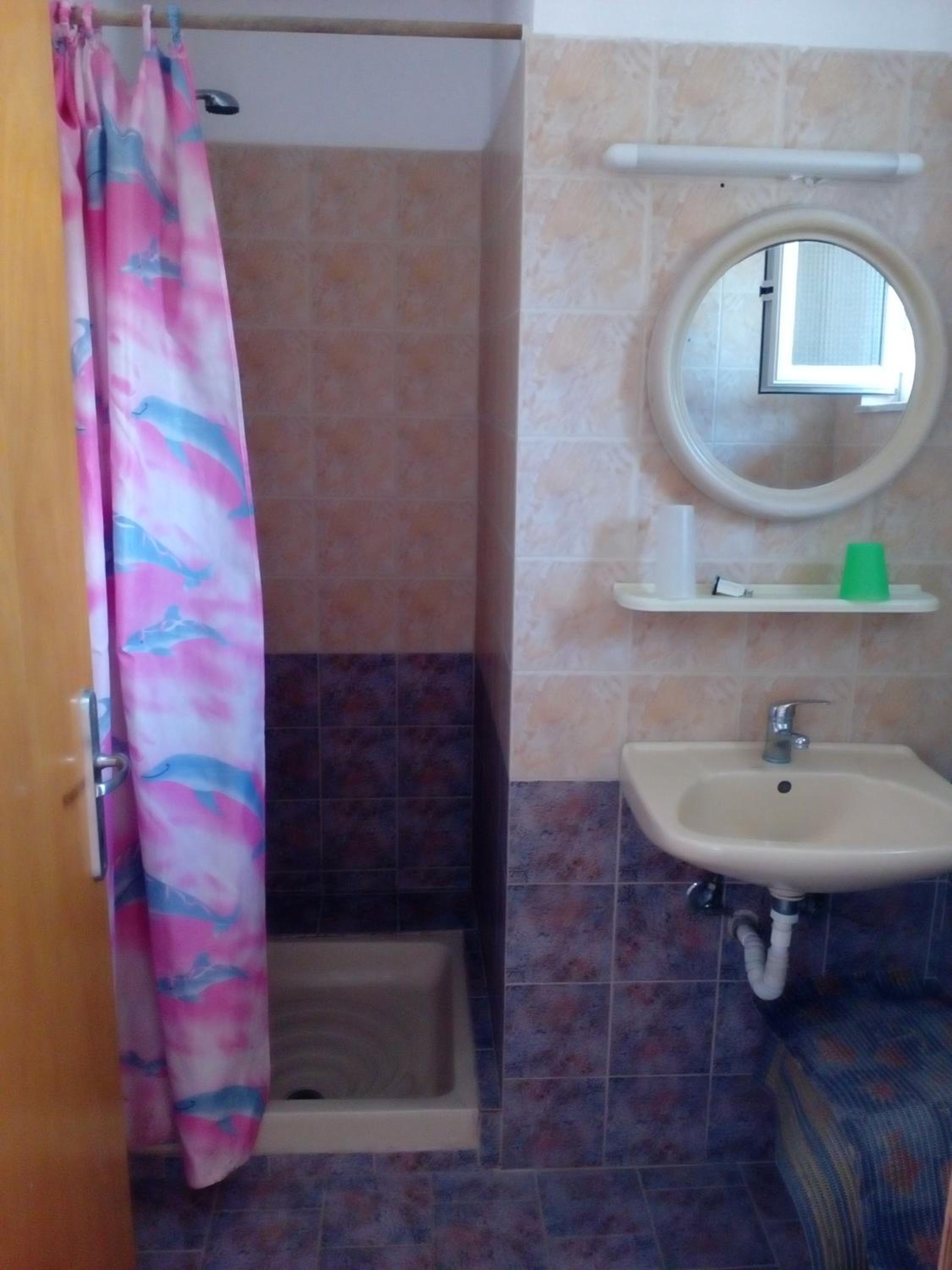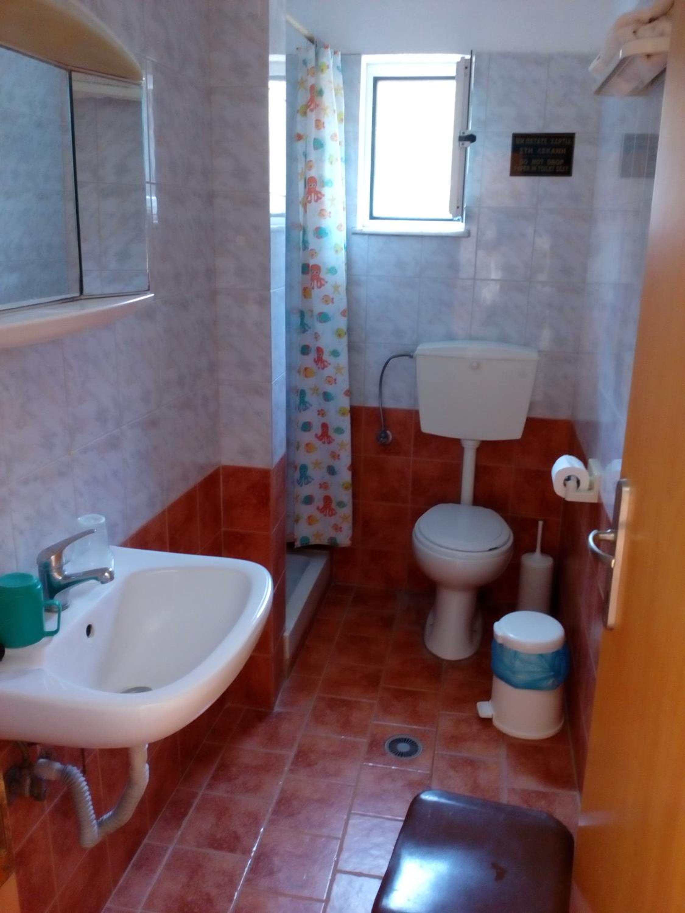 Tuš je bil premajhen, wc pušča. Dodaten jogi je bil trd, bi ga bilo potrebno zamenjati.