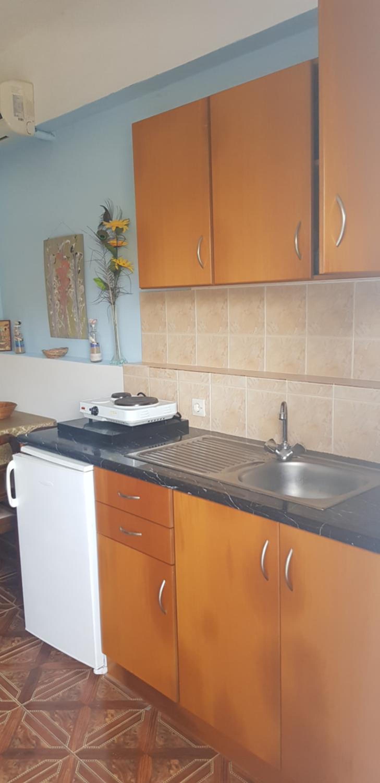 Bliżina morja, vendar je vseeno potreben avto. Lastnica je prijazna, apartma je bil ok.