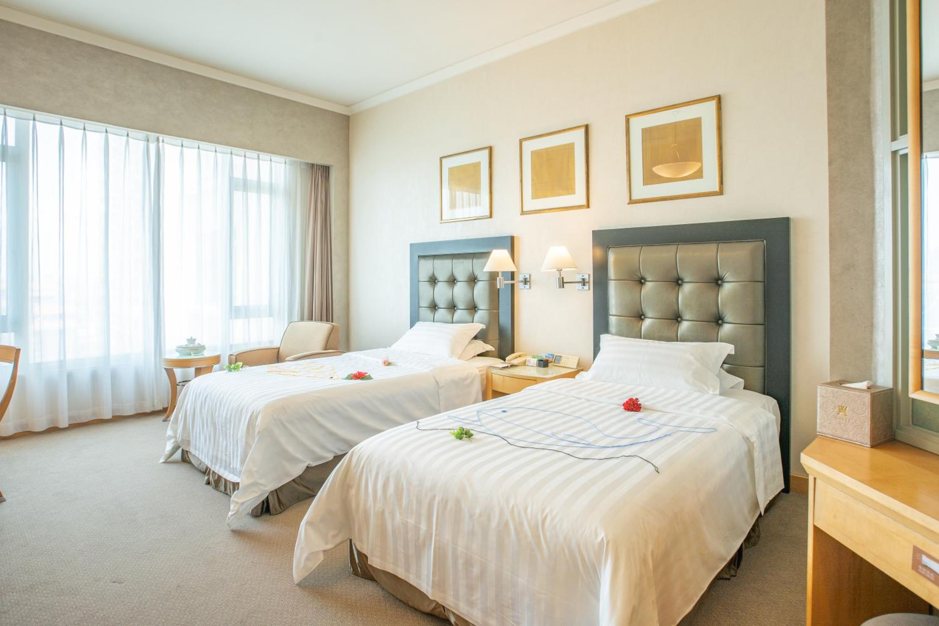 Shantou Junhua Haiyi Hotel offers elegant rooms that seamlessly blend classic elegance with contemporary chic. The neutral shades and large windows create a bright and airy ambiance, complemented by amenities such as a minibar, bathtub, and flat-screen TV.