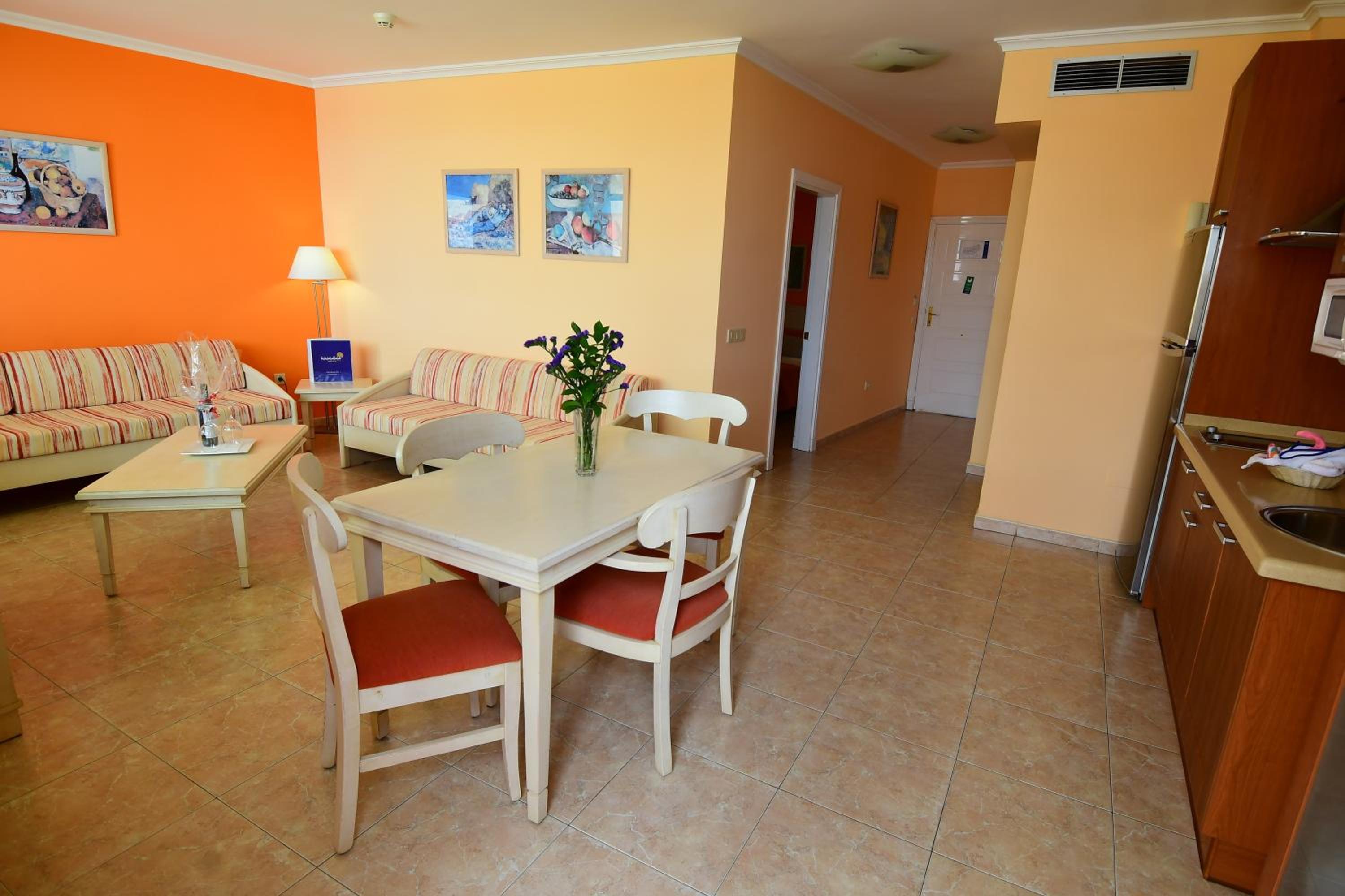 Apartment was a great size, nice balcony overlooking the sea. Great terrace to relax on. All the staff were fantastic, helpful & very friendly.