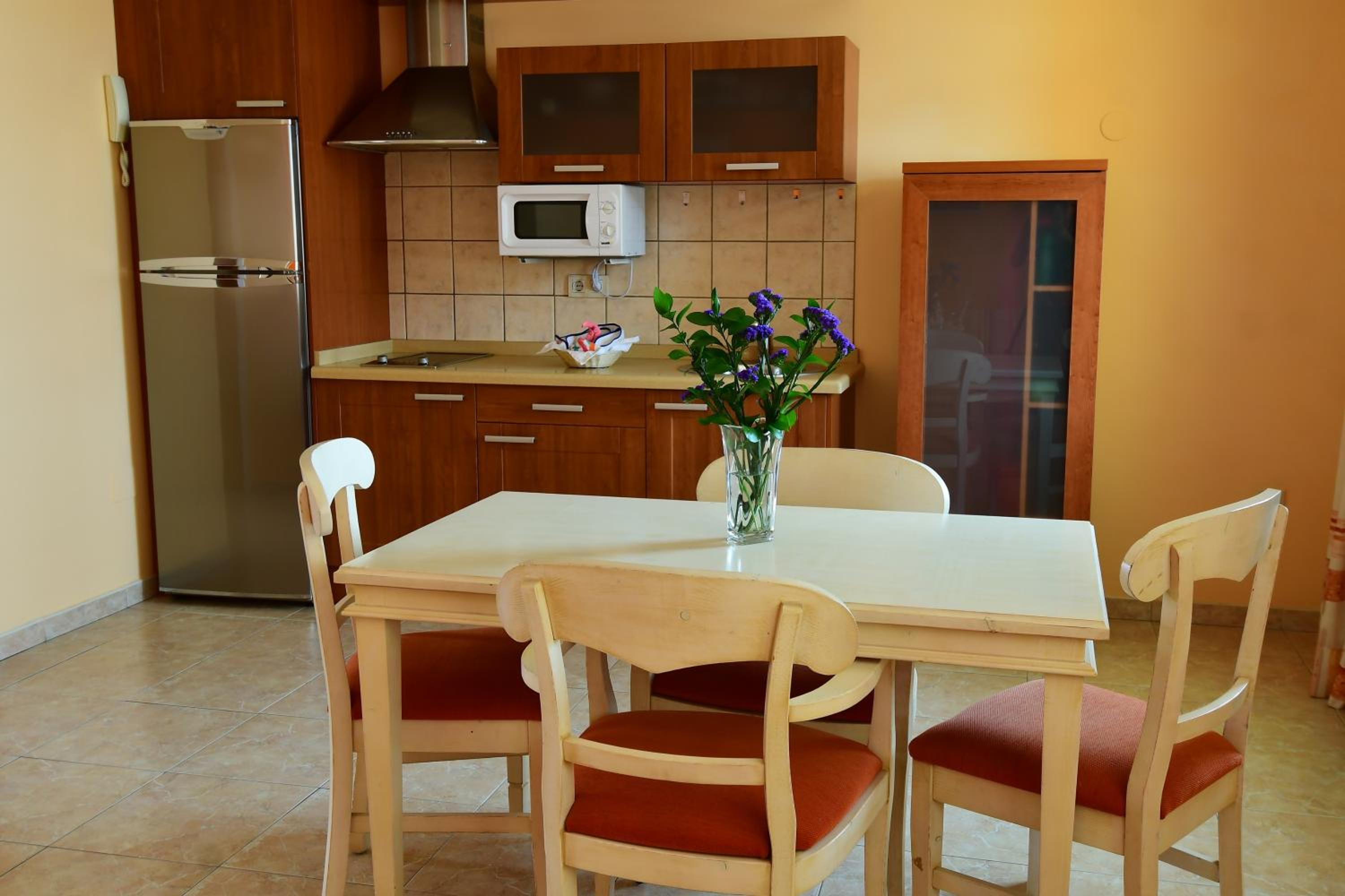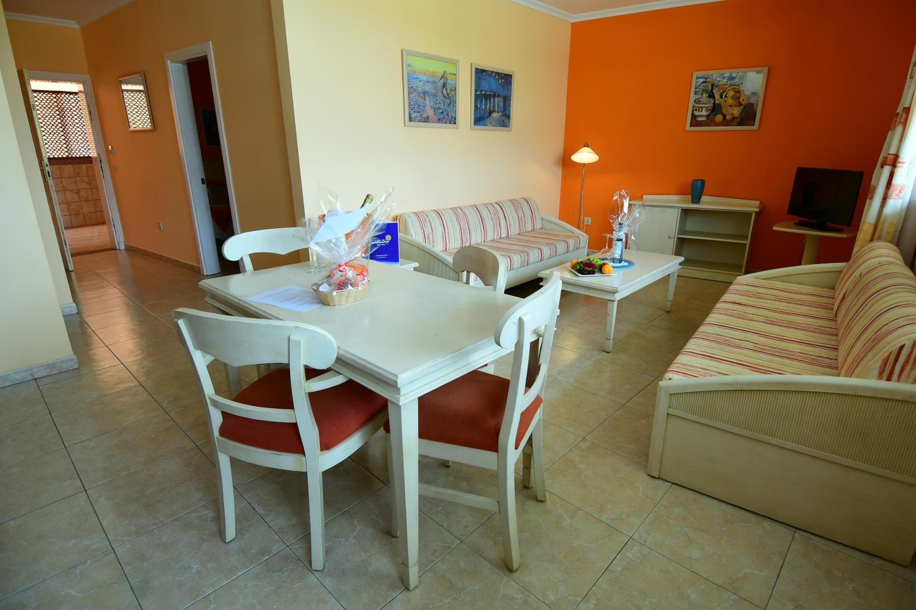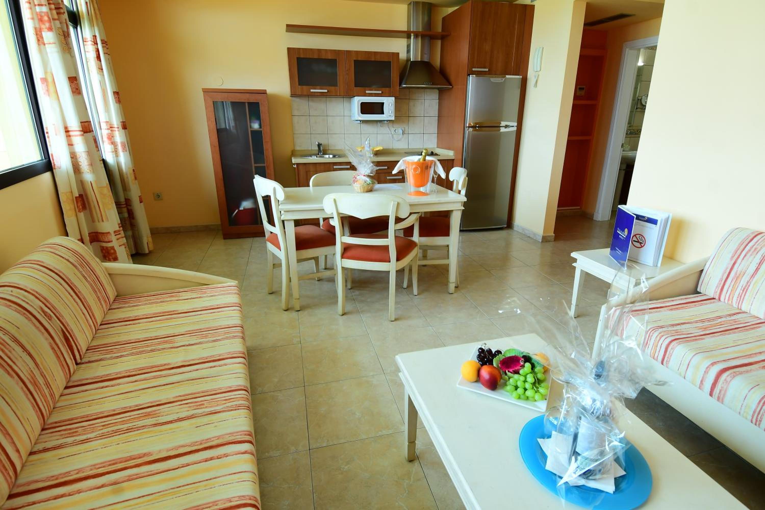Stor och fin lägenhet som innehåller allt du kan behöva för en bra semester. Lite större (Spar) matbutik precis runt hörnet. Faktiskt havsutsikt från balkongen (se bild). Ganska stor väg precis bredvid, men området var mycket lugnt under natten. En flaska rödvin som välkomsgåva uppskattades mycket! Rent och snyggt, tvål vid både handfat och dusch, disk-attiraljer i köket, och tillgång till både gym och en liten jacuzzi. Överlag verkligen precis det som behövs!