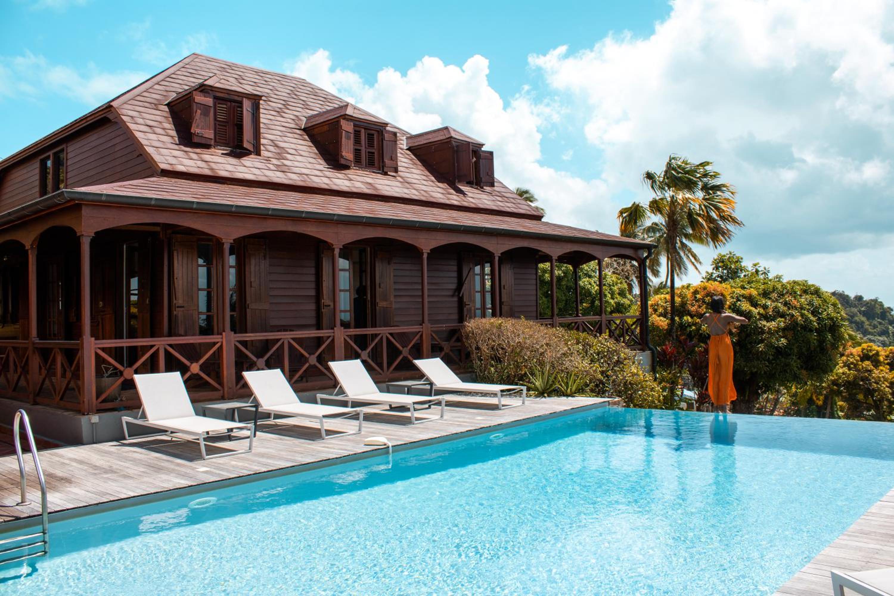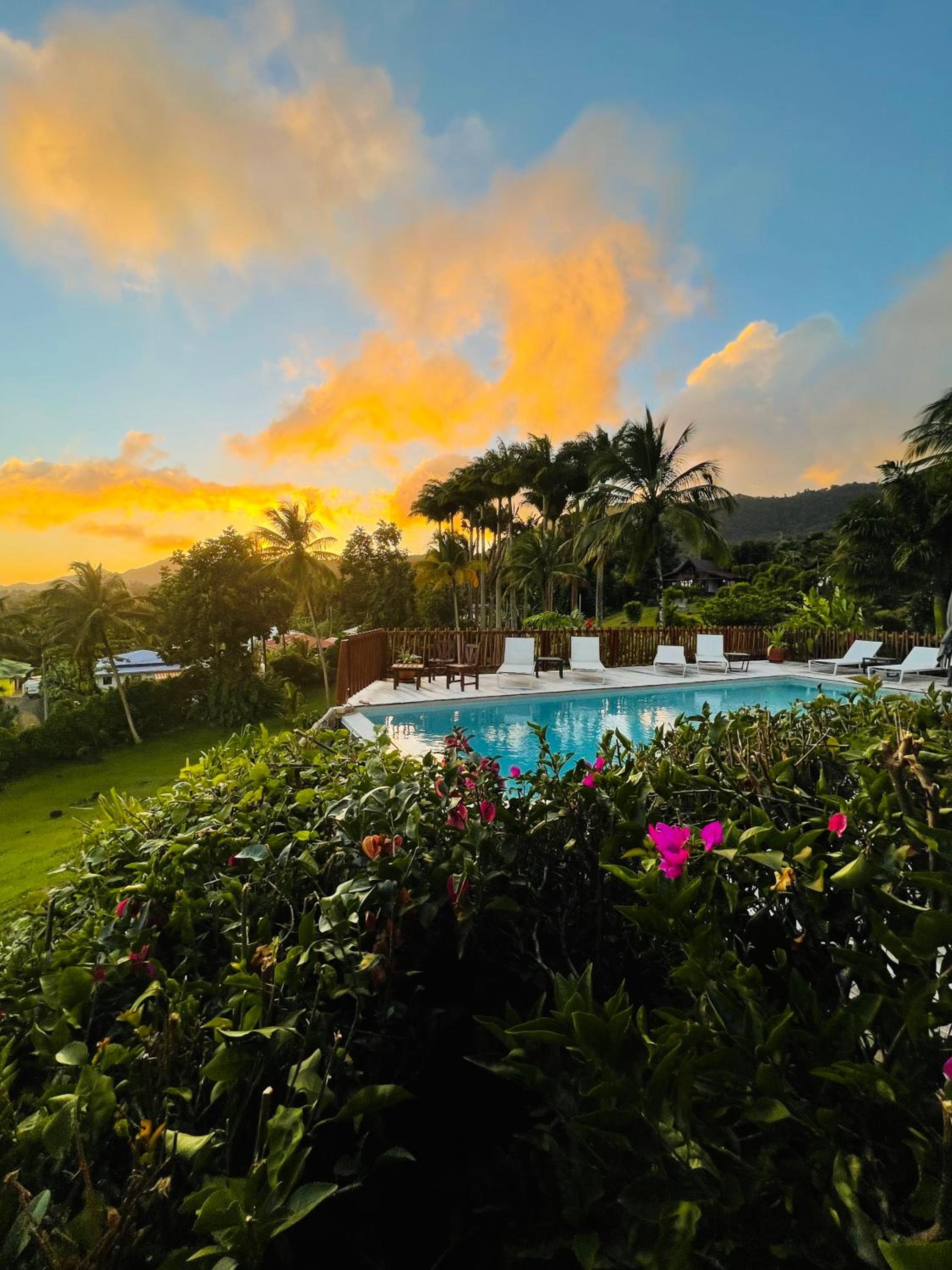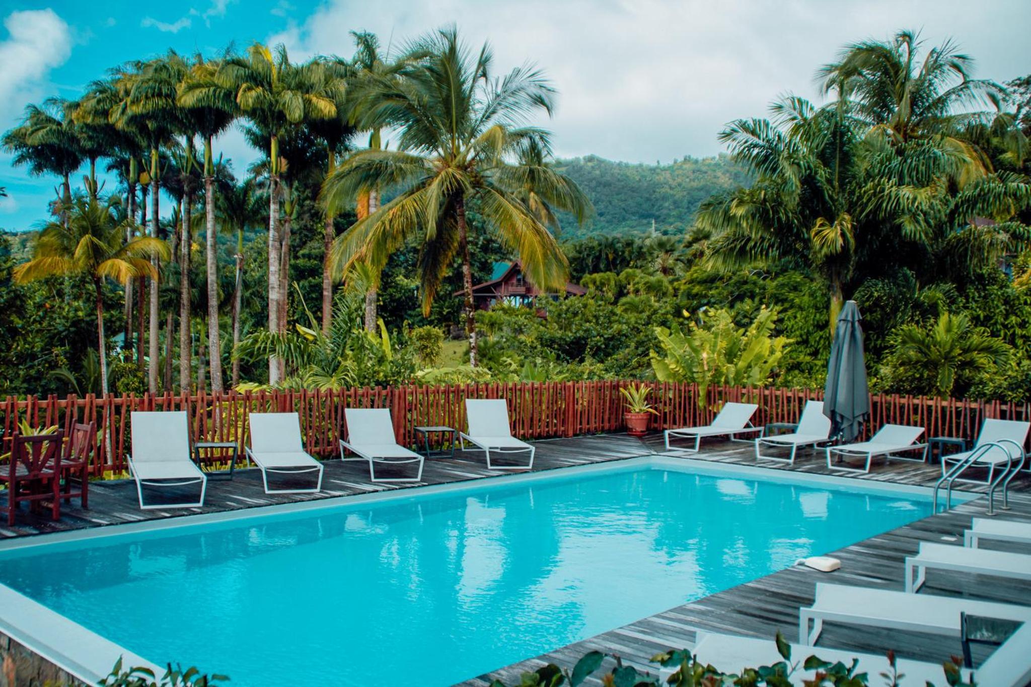 From the moment we arrived, the calm, tranquility and beauty of the garden delighted us. The view from the room was also fantastic with a fantastic view of Les Saintes. The architecture of the colonial house is magnificent. Atypical accommodation in the middle of a large garden. Well placed between Soufrière and the Carbet waterfall. Friendly staff. Calming atmosphere, a beautiful interlude of serenity, the calm and beauty of the garden, the view of Saintes from the room and from the pool.