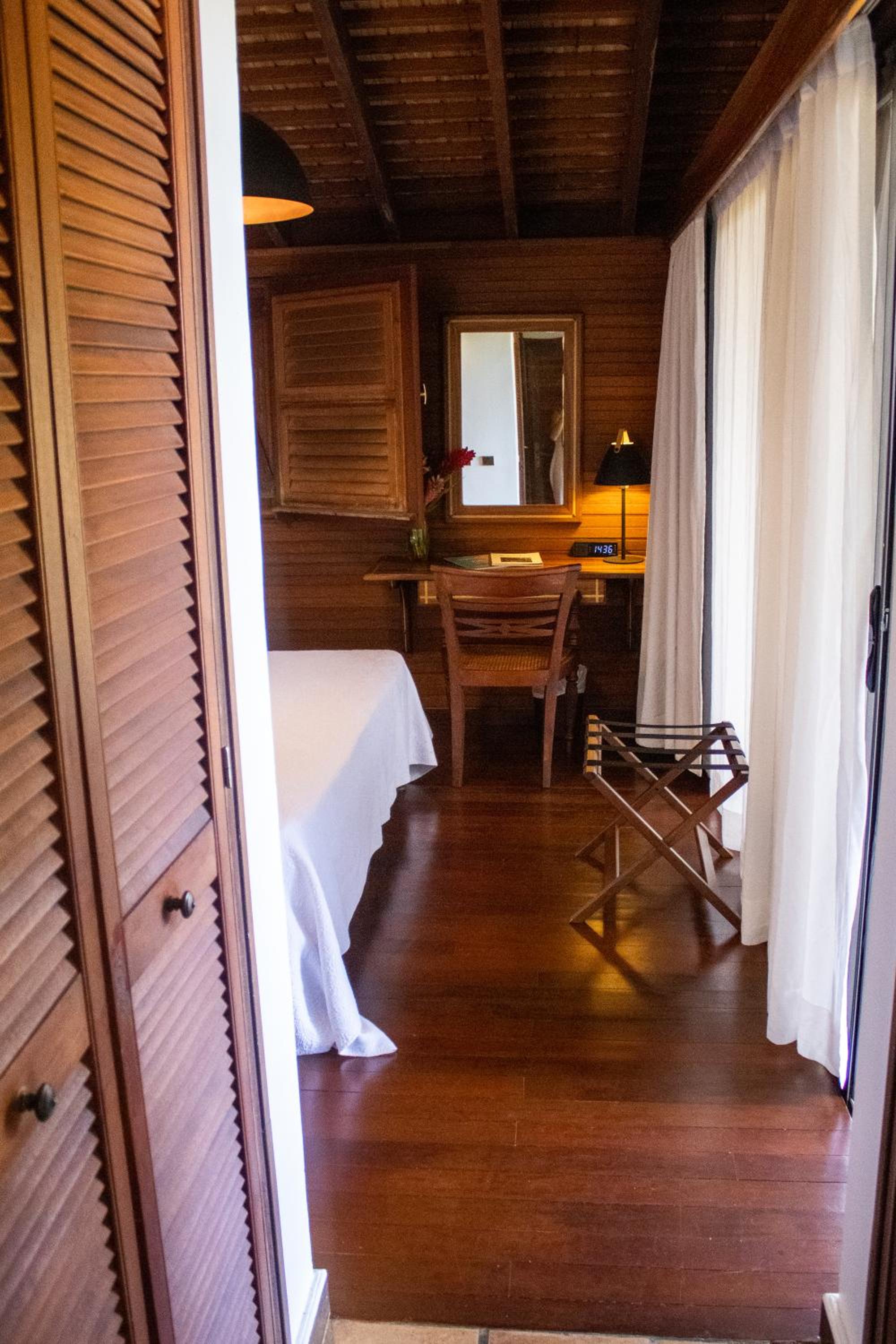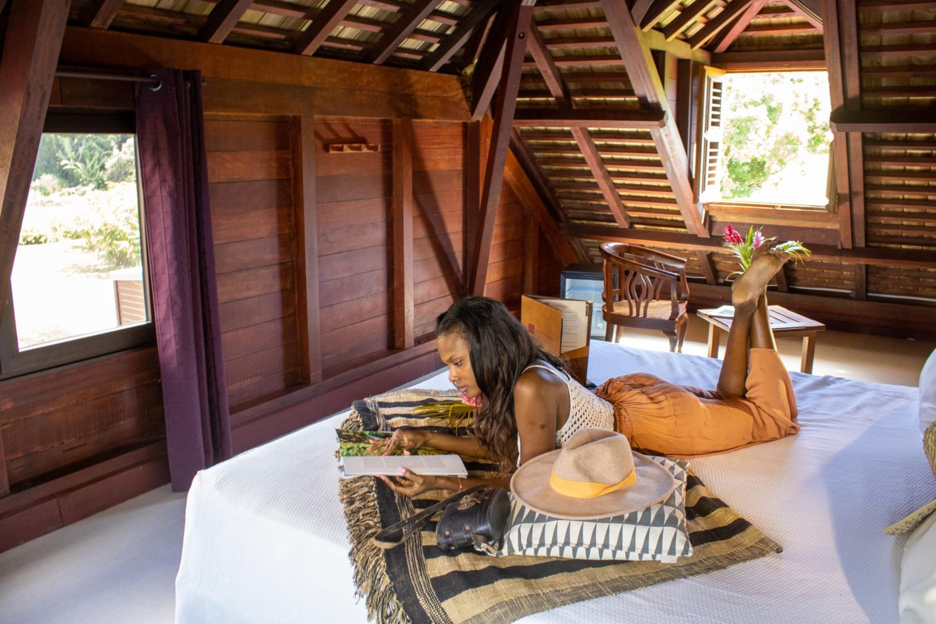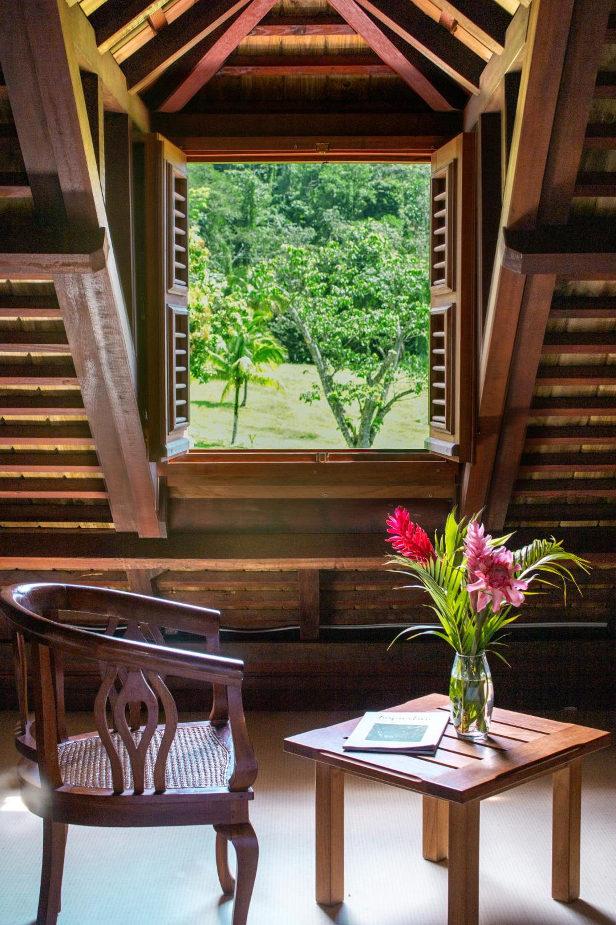 From the moment we arrived, the calm, tranquility and beauty of the garden delighted us. The view from the room was also fantastic with a fantastic view of Les Saintes. The architecture of the colonial house is magnificent. Atypical accommodation in the middle of a large garden. Well placed between Soufrière and the Carbet waterfall. Friendly staff. Calming atmosphere, a beautiful interlude of serenity, the calm and beauty of the garden, the view of Saintes from the room and from the pool.