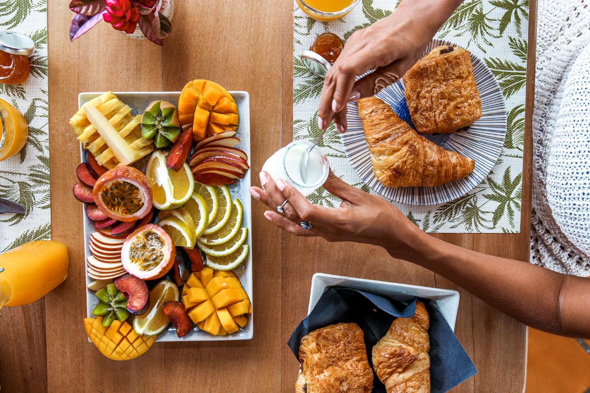 The breakfast is a continental offering and you certainly don't need more. We were offered fresh fruit, deliciously warm pastries and bread, accompanied by cheese, local jams, and either a cold meat or fish depending on the day. Breakfast is served with tasty fresh juice and of course tea and coffee. Each morning the breakfast was slightly different, so it didn't get boring.