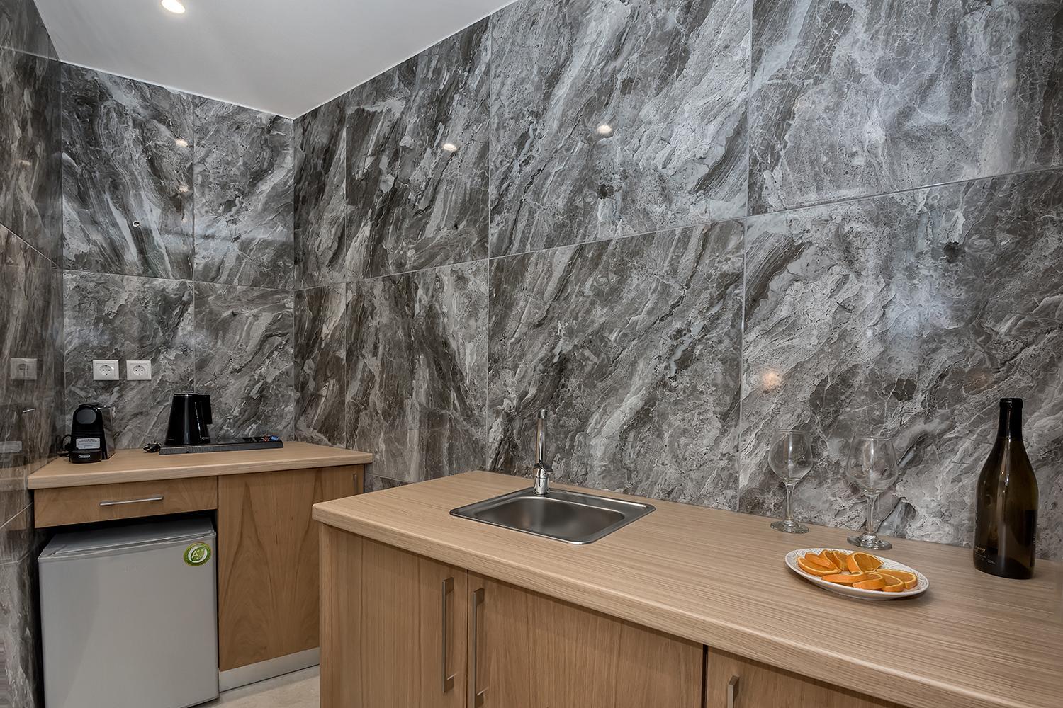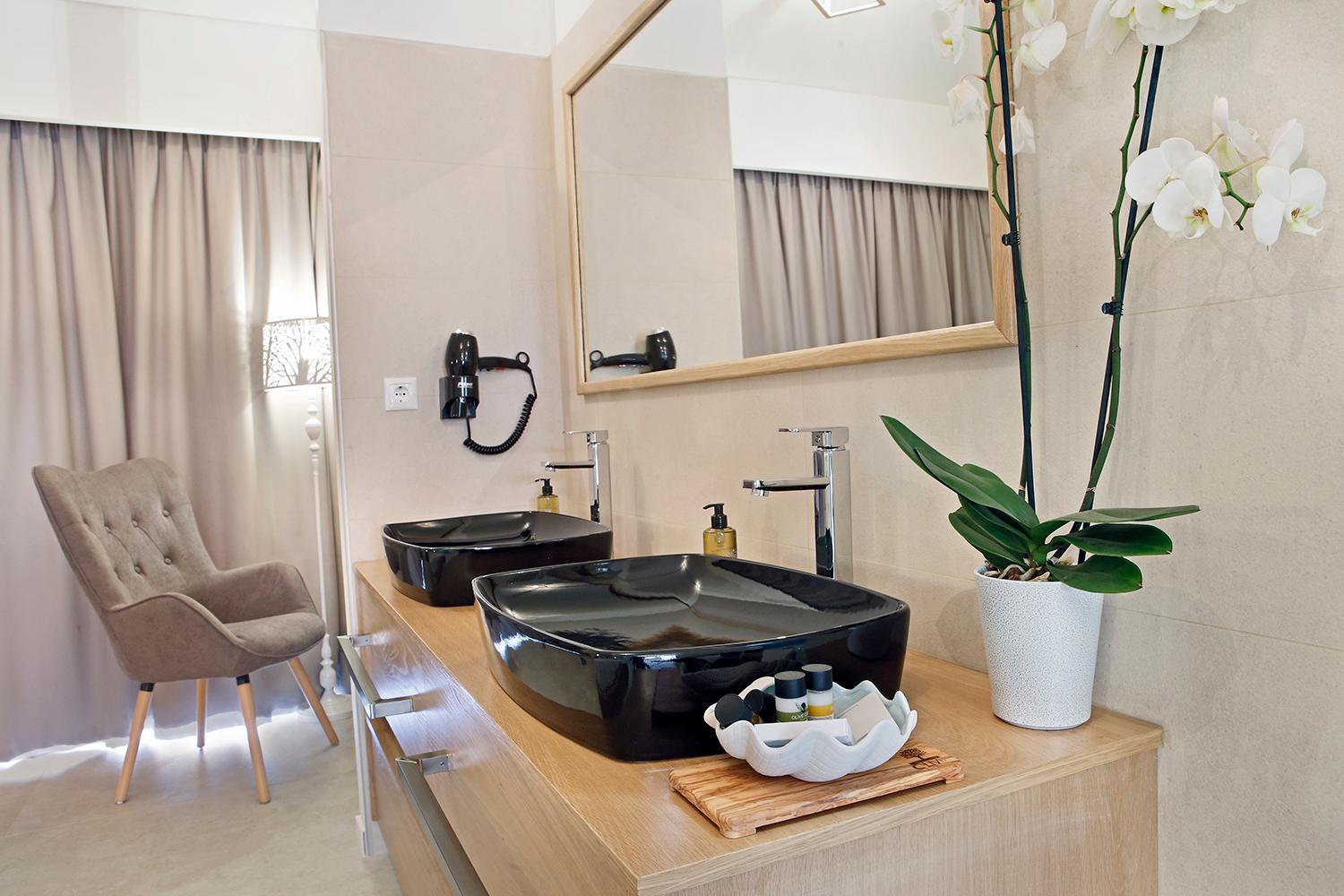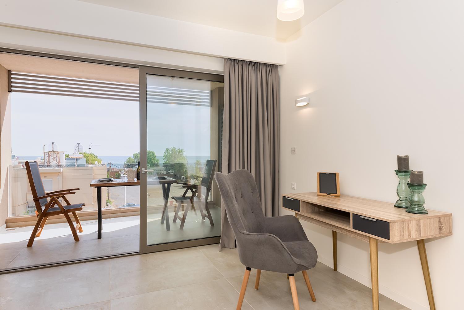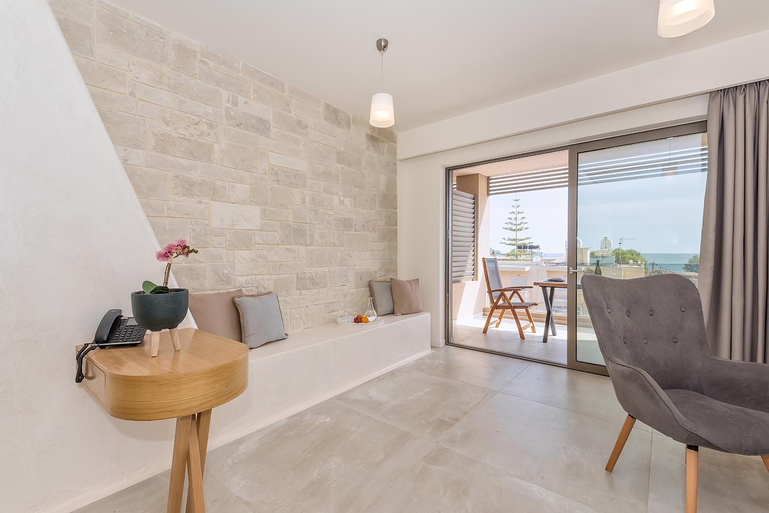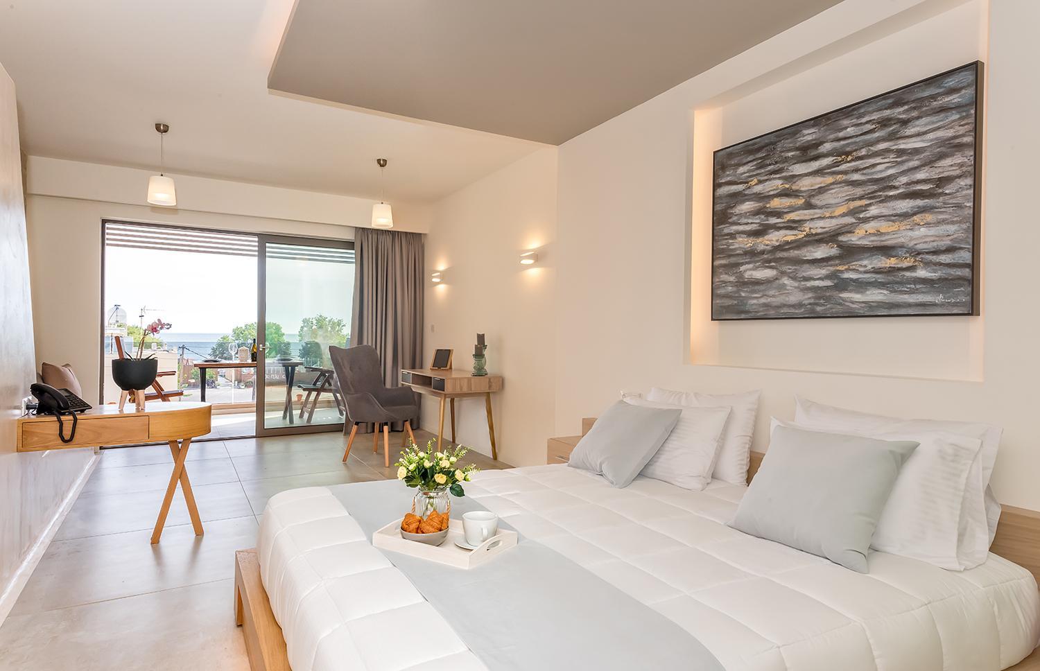 Indulge in the elegant air-conditioned rooms at Lilium Luxury Suites, complete with modern amenities like a coffee machine and flat-screen TV. Some rooms even offer breathtaking sea views from a private balcony.