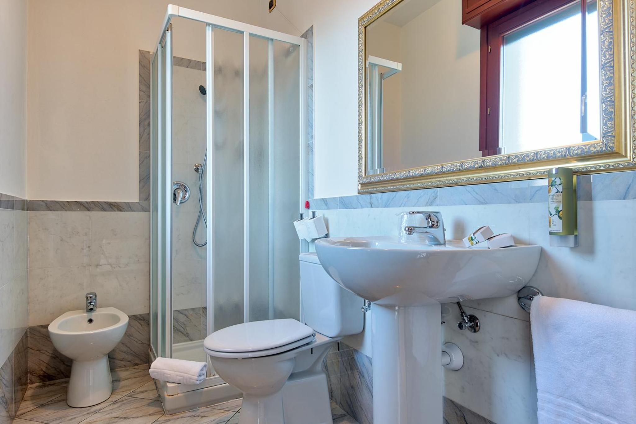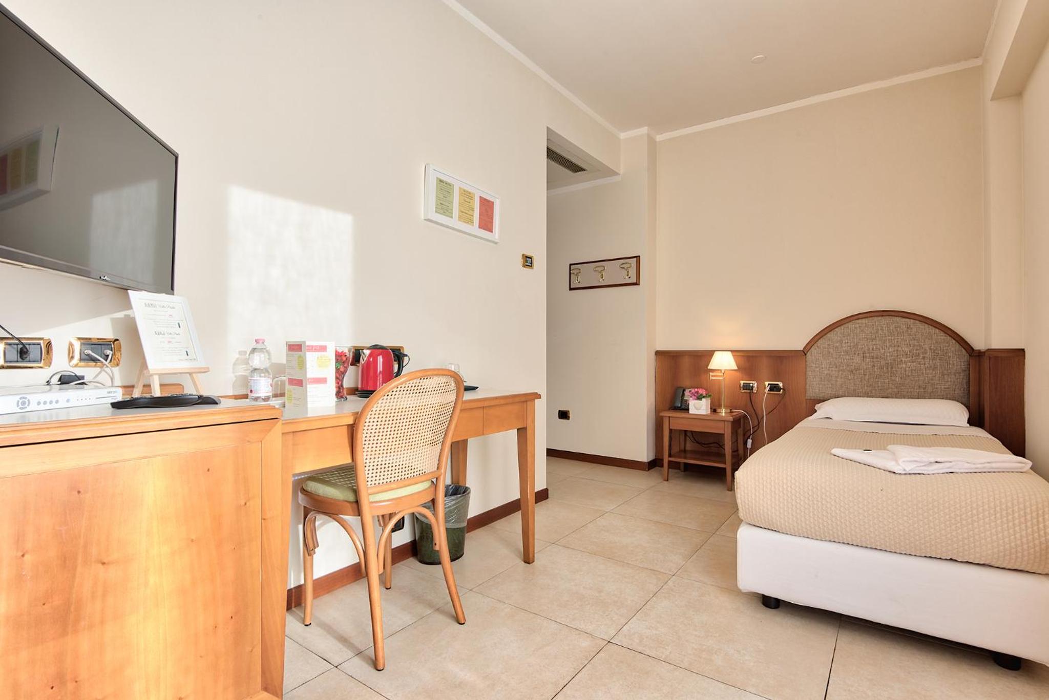 Ci è stata assegnata una camera accessibile a disabili, la doccia si allagava nonostante abbiamo cercato di stare attenti , stanza per nulla insonorizzata dalle scale , il pomeriggio volevamo fare un riposo , non è stato possibile e la mattina volevamo dormire , ma la reception a ridosso delle scale ha fatto da cassa di risonanza , al mattino alle 7 eravamo svegli "grazie" al tono di voce poco pacato di chi era di turno, la colazione molto scarsa di prodotti , anche se cappuccino torta è brioches erano buoni , alla richiesta se si potesse avere qualche fetta di salame , ahimè responso negativo ,