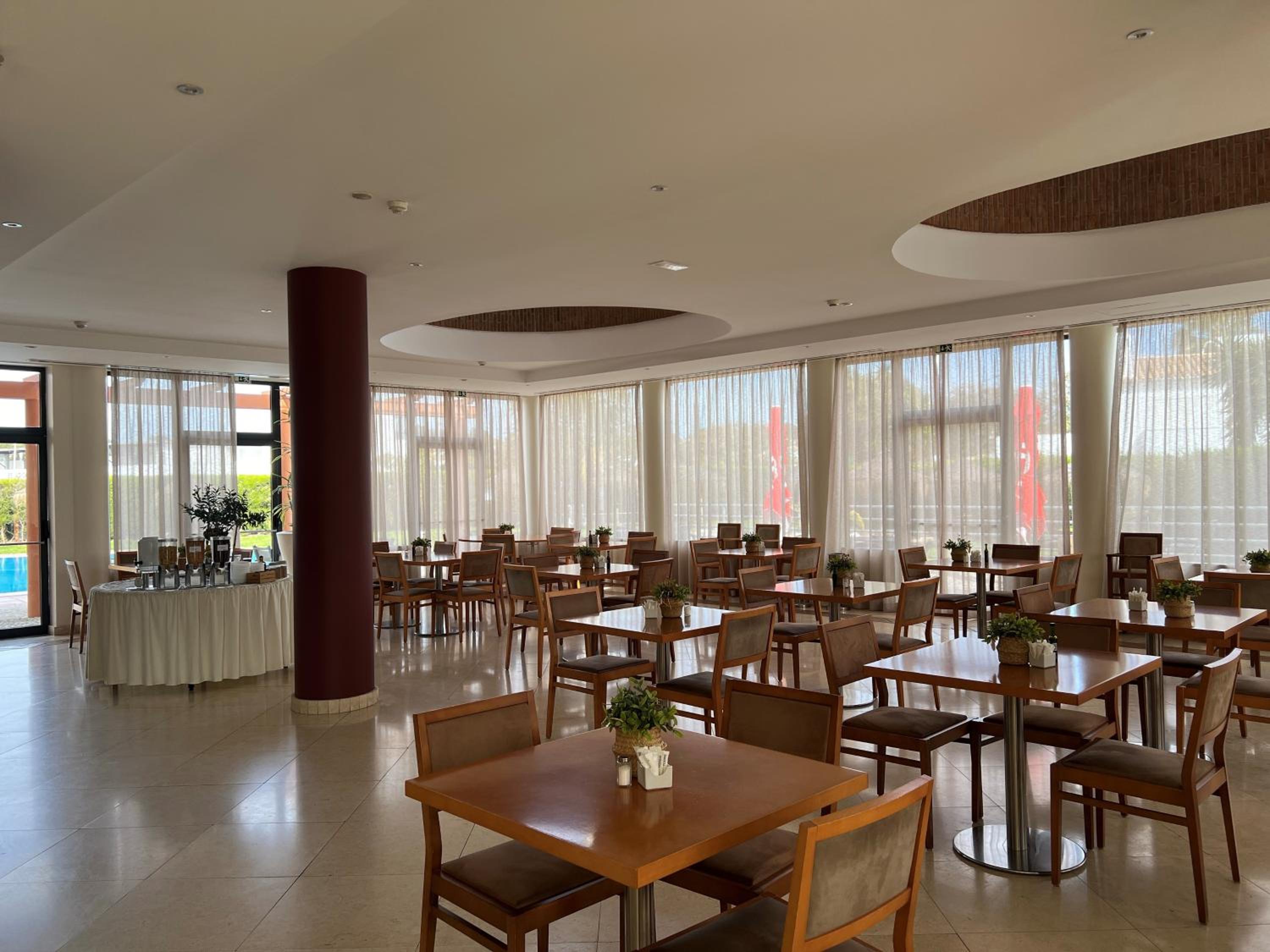 Da vista para a piscina, quarto grande, cama muito confortável e boa disposição e simpatia dos funcionários