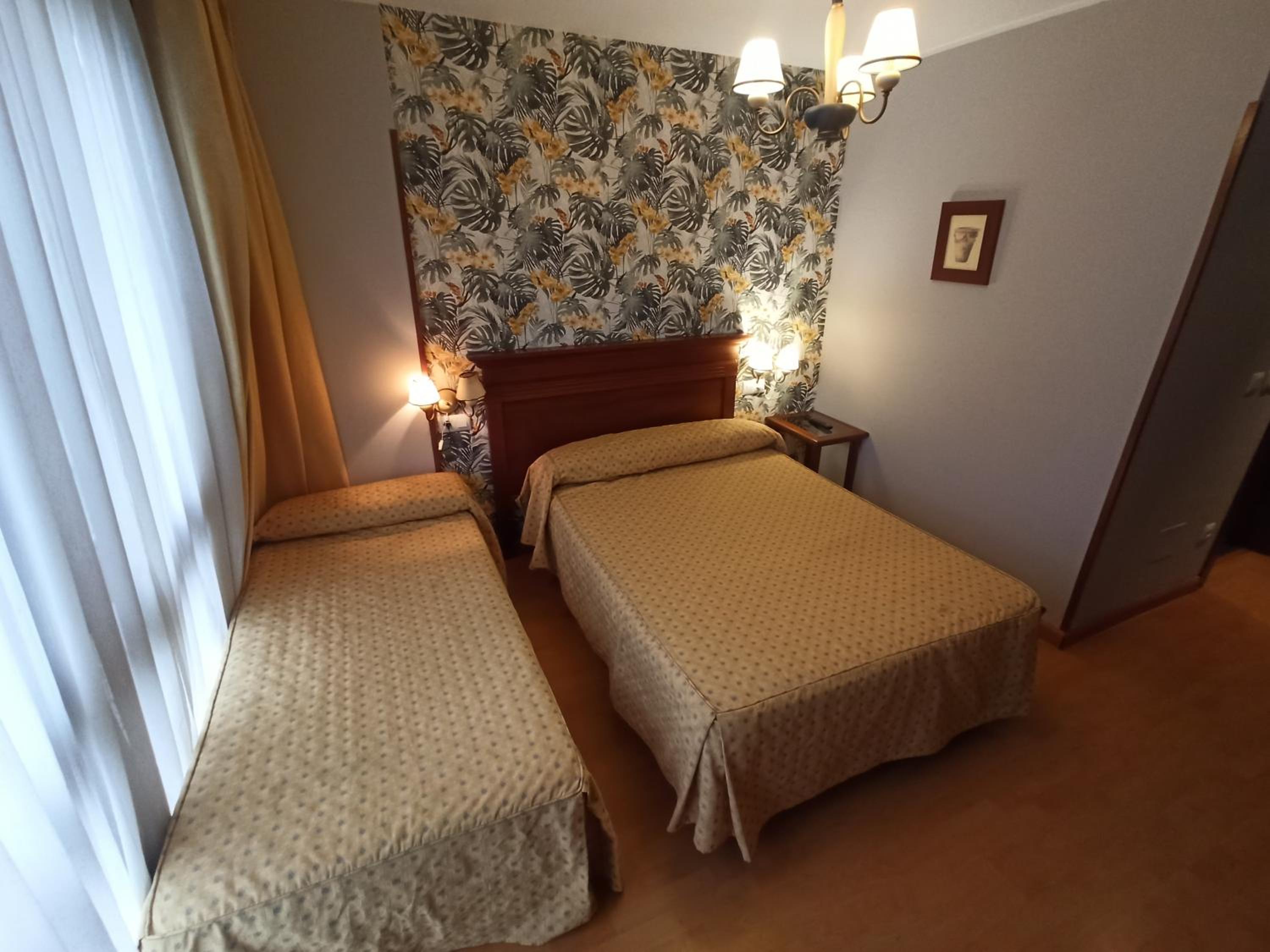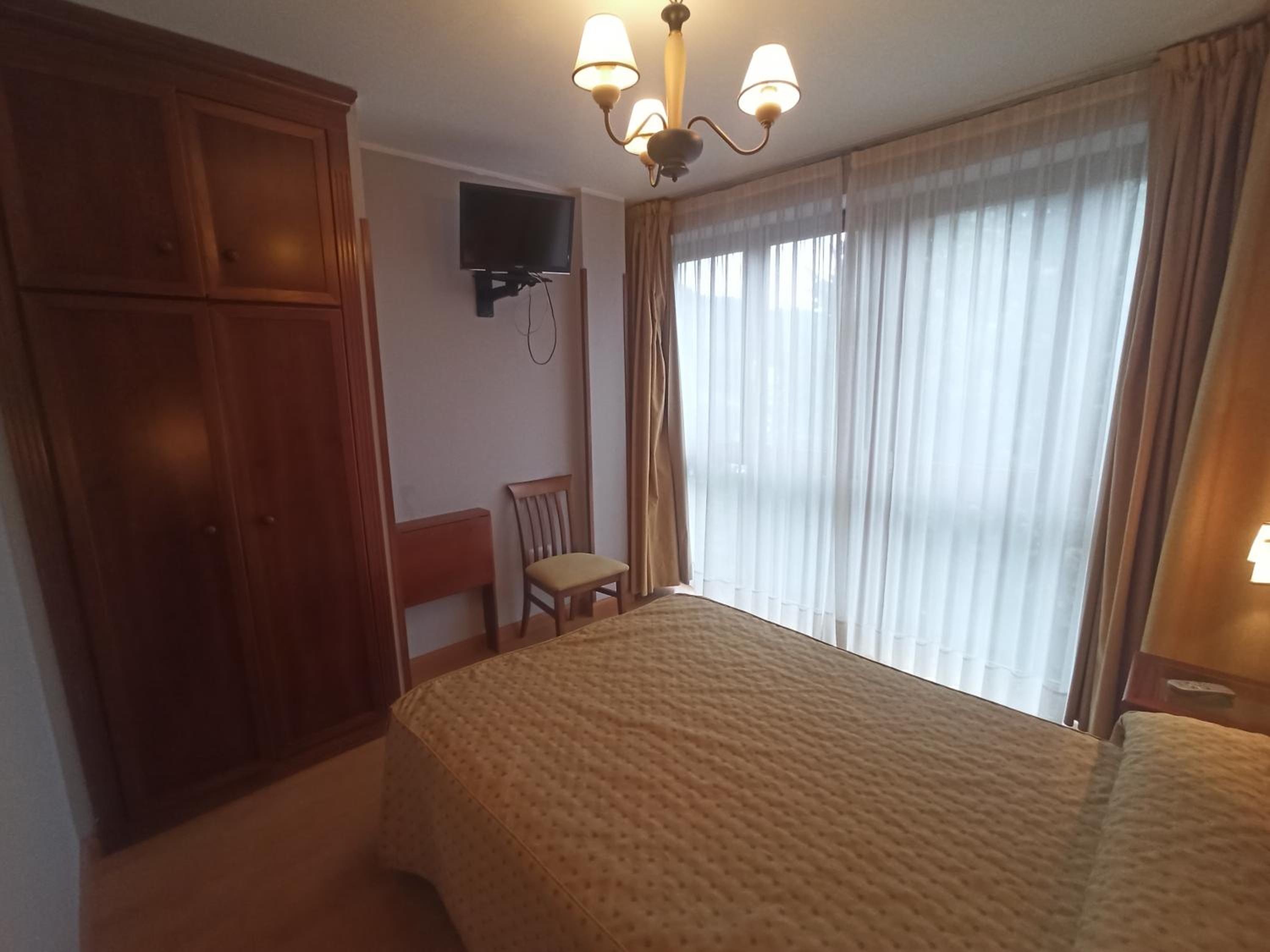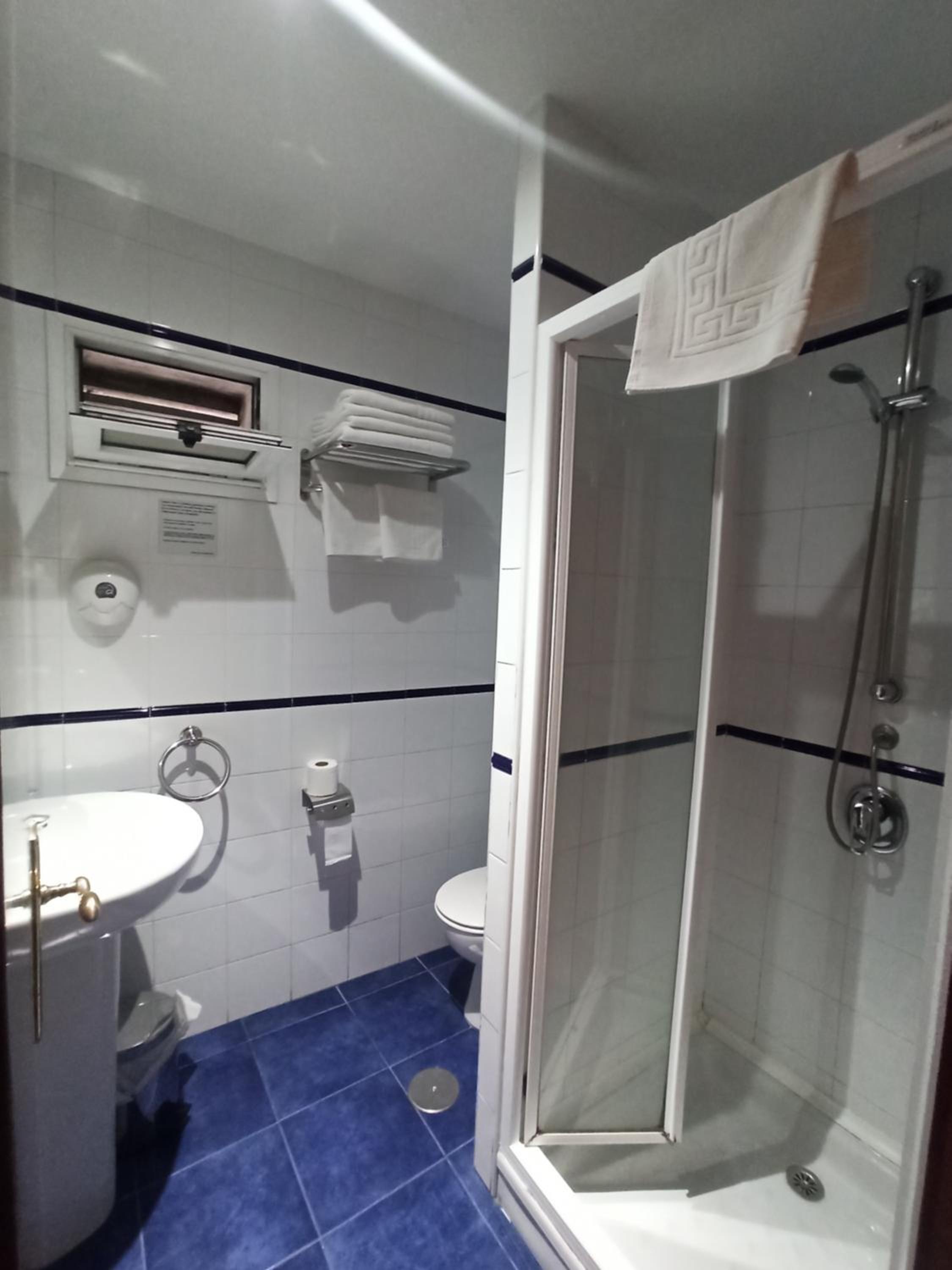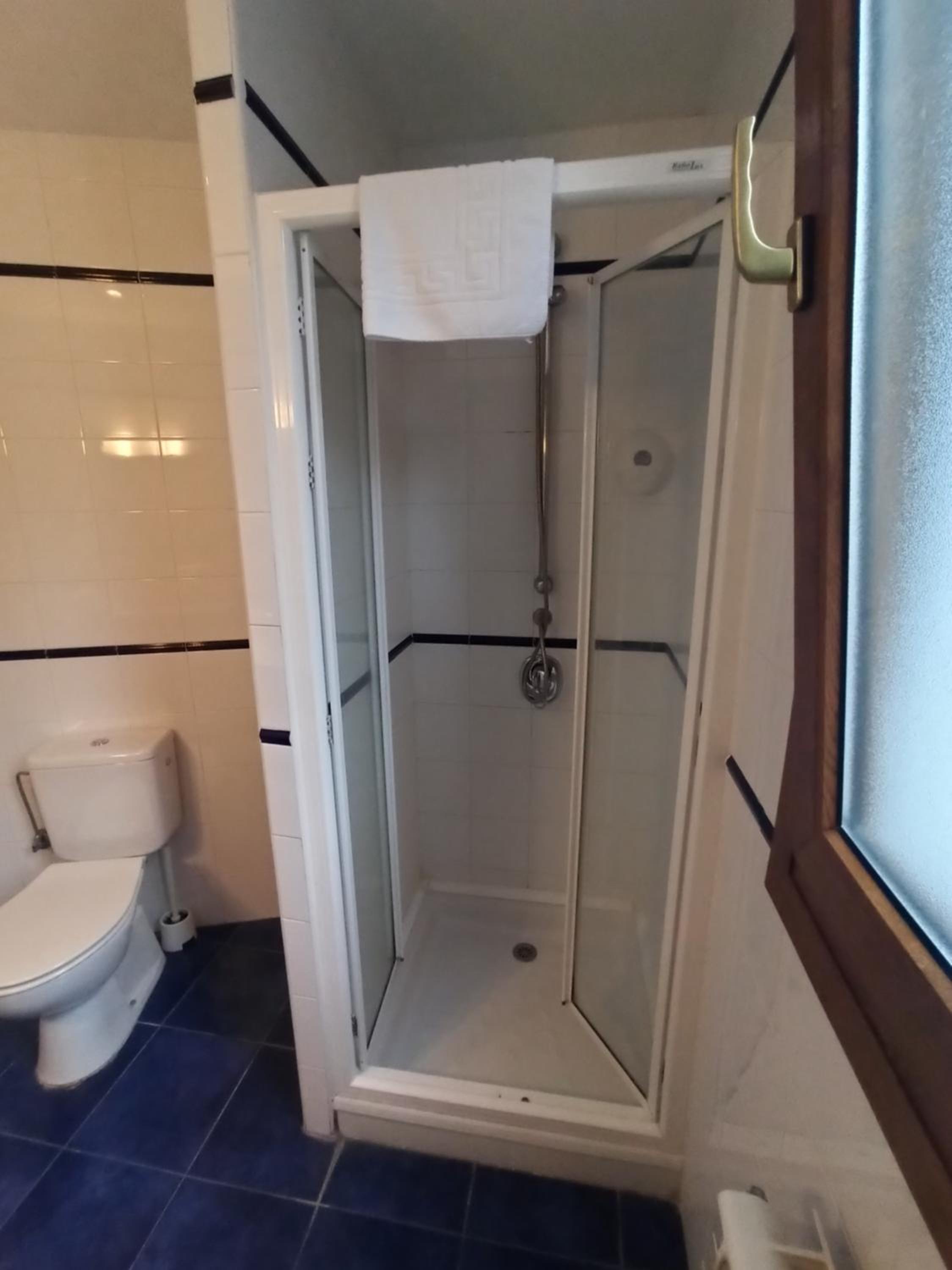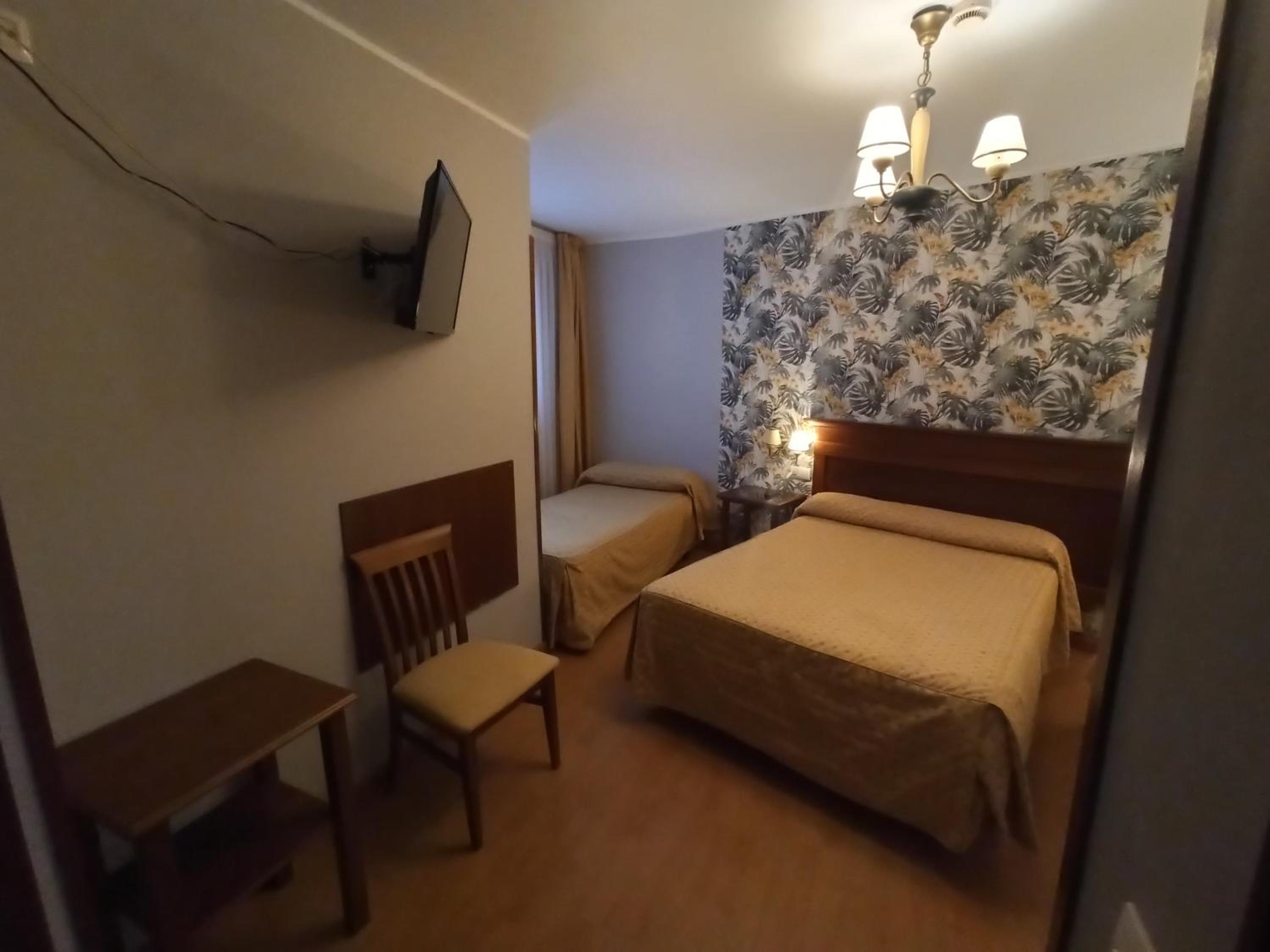 la habitación doble un poco pequeña y el baño minúsculo, excesivamente sobrio y un poco cutre, el hotel no tiene nada más que las habitaciones y una recepción con un sofá y un televisor. Me resultó un poco caro para lo que ofrece, pero para pernoctar tampoco hace falta más