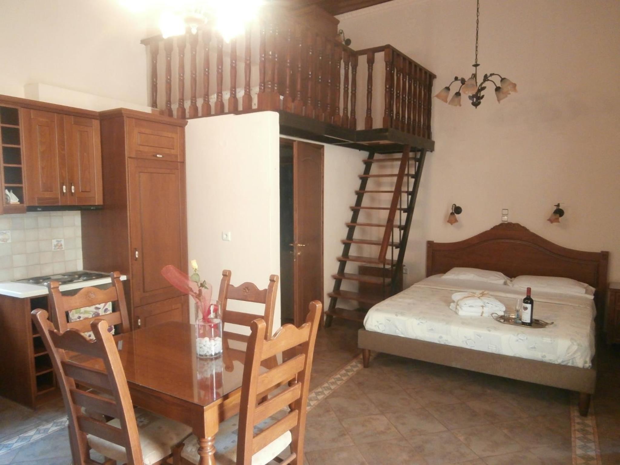 Housed in a former French Embassy, Afroditi Hotel combines history with modern comfort, offering free WiFi and traditionally decorated rooms with fully equipped kitchens.