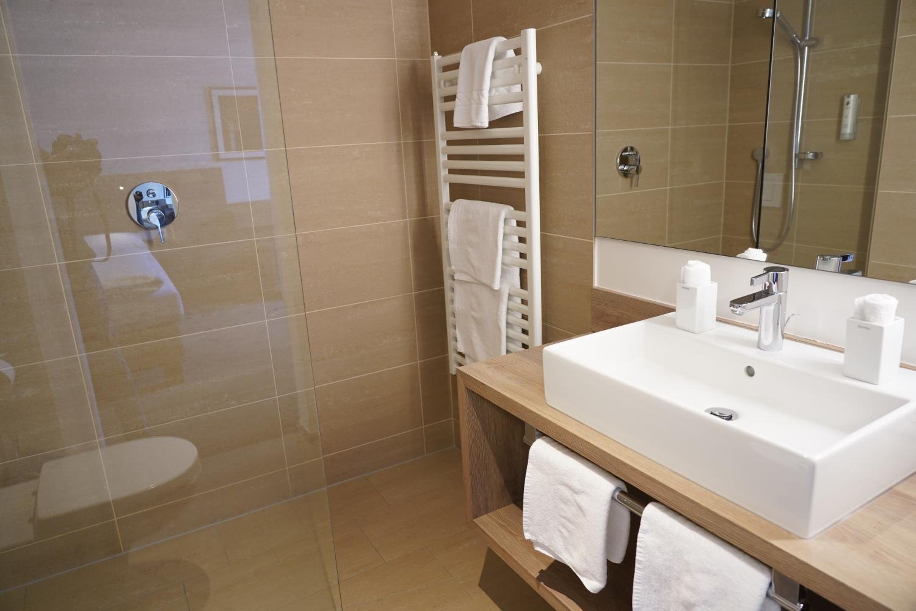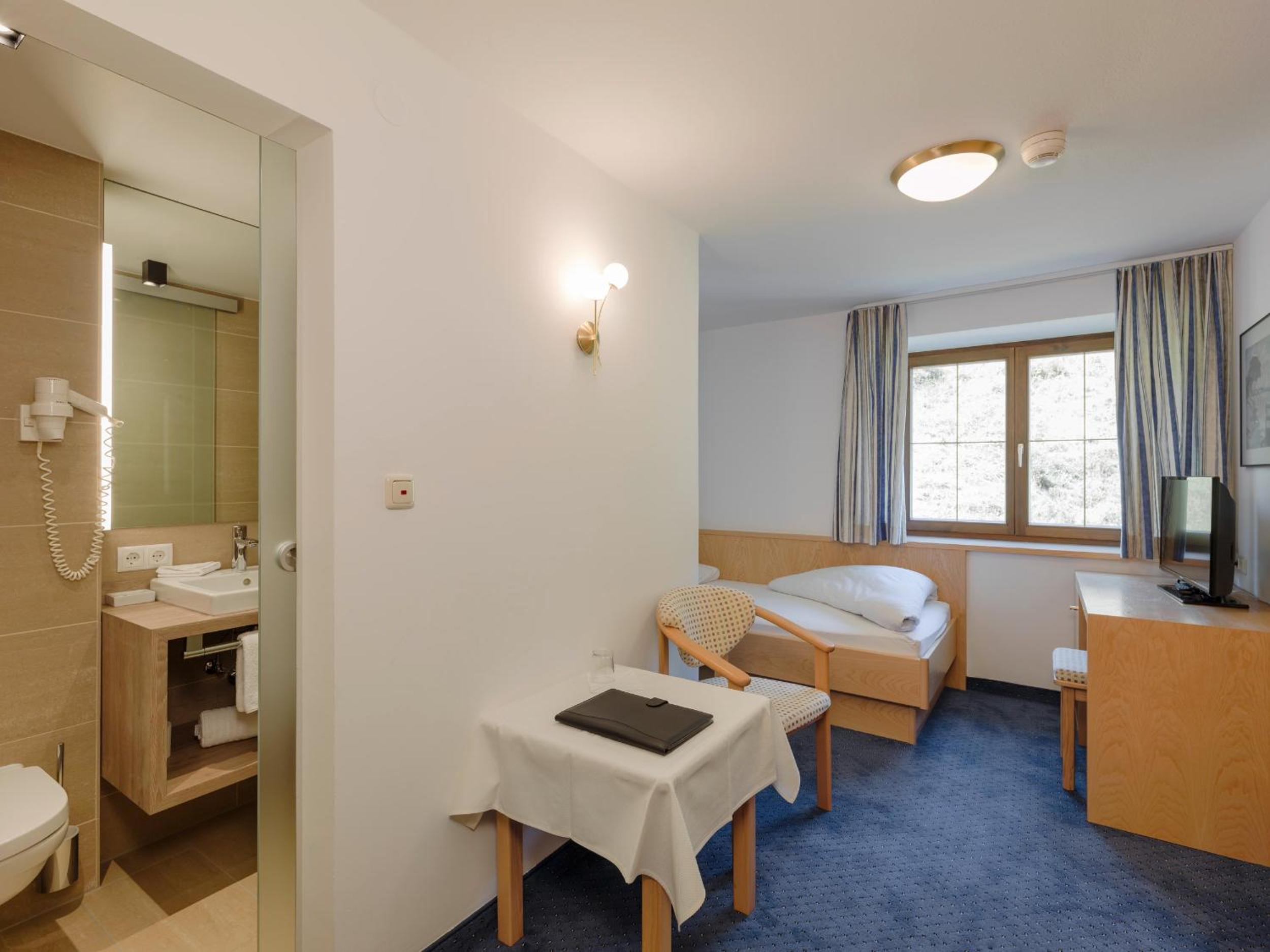 Very short walk to a major ski lift, brief walk to town and all the amenities, breakfast buffet just right with healthy options and friendly staff who were helpful throughout. Ski/boot room easy to use. Comfortable bed and nice bathroom. Overall, an excellent stay which really added to our ski holiday.