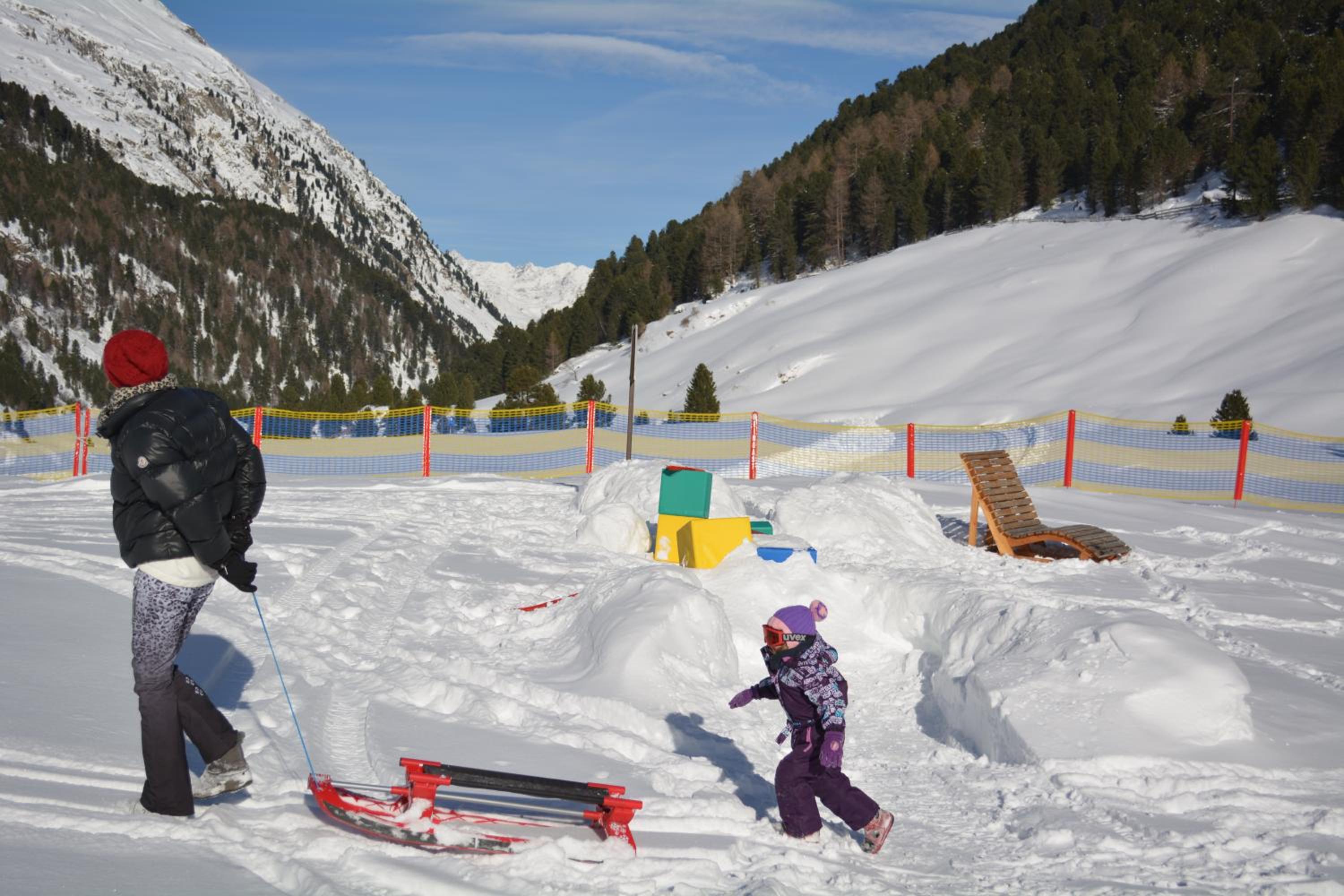 During the snowy season, guests can enjoy a winter playground on-site with snow slides and igloos, perfect for children to have fun in the snow.