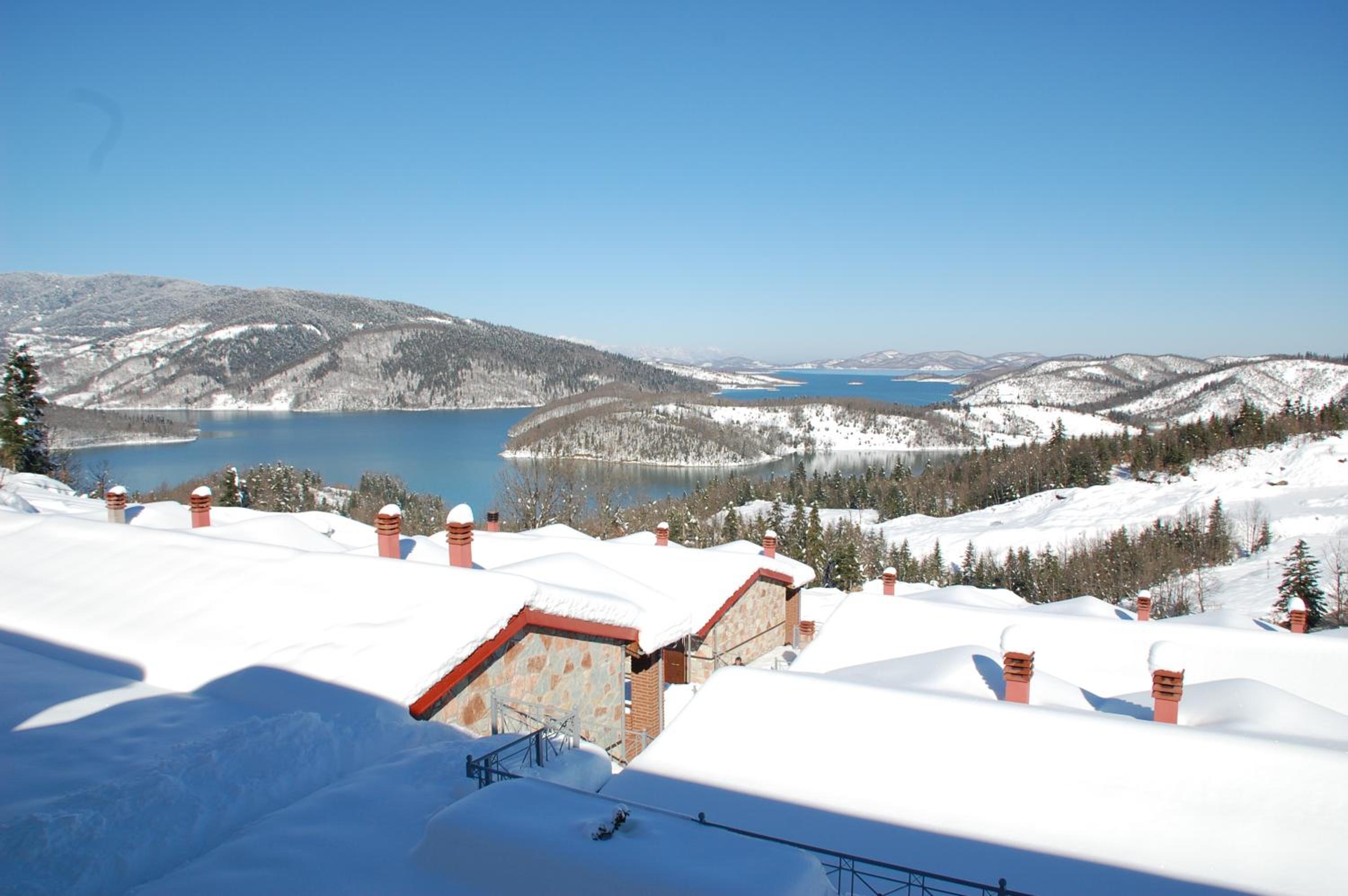 The Ypsivaton Mountain Resort offers luxurious rooms with modern amenities and stunning views of Lake Plastira. Upgrade to a room with a fireplace for added comfort and coziness.