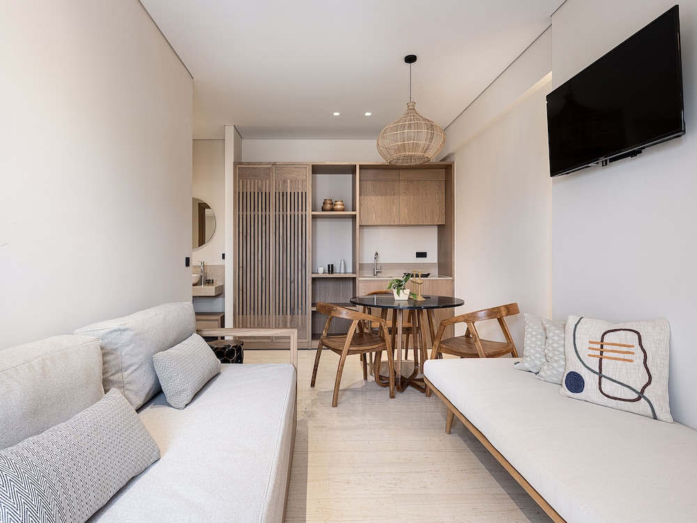 Amazing value for the money, beach, pool, confortable room and a great restaurant. The location is convinient for traveling to Chania by bus (direct bus!, not visible on Google Maps). The staff was overly friendly to my family with very small children. The room was newly renovated and nice.