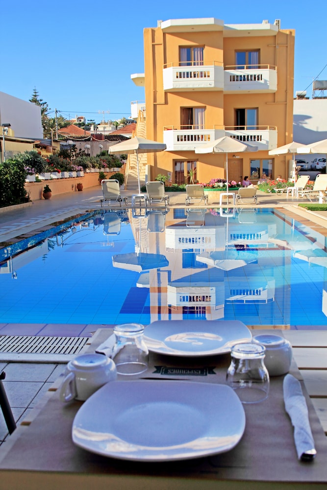 Sehr netter Besitzer Pool-Bar personal ist sehr freundlich. Die Apartments sind geräumig und sauber. Der Pool ist sehr schön und das Hotel liegt an einem angenehmen Sandstrand, an dem man ohne Schuhe zu brauchen ins Meer laufen kann. Chania, eine wirklich wunderschöne Stadt, liegt nur ca. 10 Autominuten entfernt. Hier kann man sich wirklich wohlfühlen.