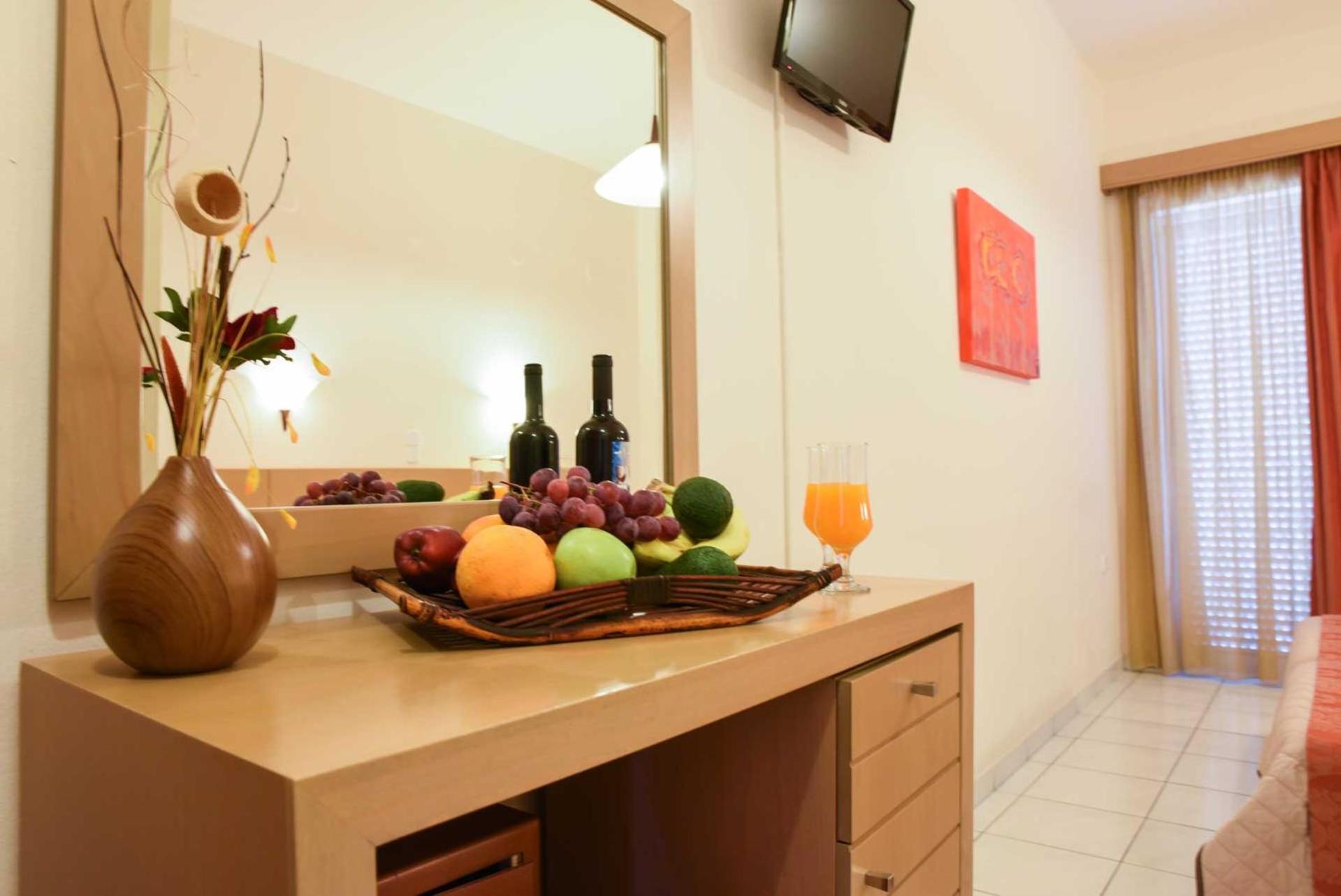We had an amazing 2 weeks holiday staying at Theo Hotel. We had breakfast included, the choice, quality, quantity and service were superb. We had a Seaview room which was very comfortable, spotlessly clean and had the most amazing views. The grounds and gardens were beautiful, pretty palm trees and flowers all well groomed. The pool area was really attractive and the loungers are so comfortable with music playing made it a very relaxing space. The staff work really hard to keep the hotel spotless. It is in he best location for a superb relaxing stress free holiday. It was just a 2 minute walk to the beautiful sandy family friendly beach. The sea is shallow and calm which isgood for children and adults to have fun. There are hundreds of bars and tavernas to choose from along the road to Platanias and the public buses run regularly to Chania (€2 each way) which has a fantastic venetian harbour, shops and restaurants. We would like to say Thank you to all the staff. We will definitely return, superb holiday.
