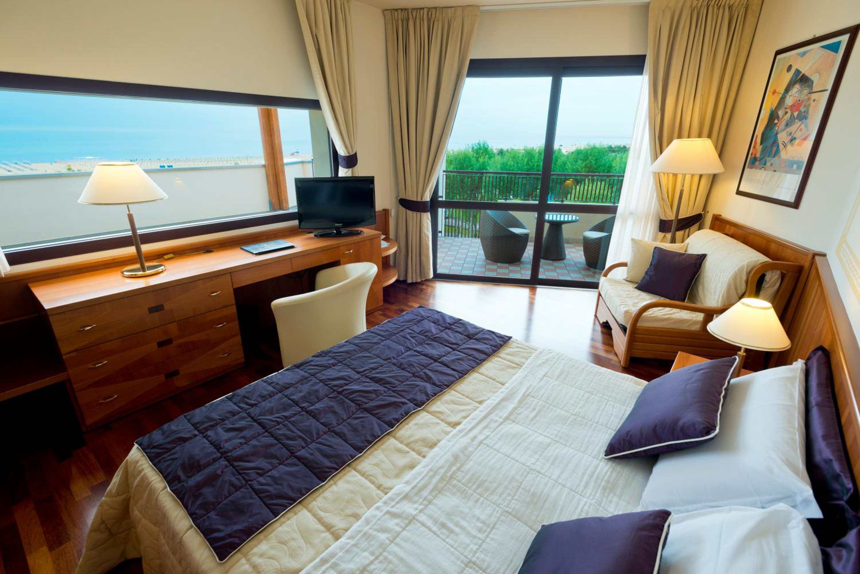 Experience comfort and elegance at Savoy Beach Hotel & Thermal Spa in Bibione. Each air-conditioned room is equipped with a flat-screen TV and a private bathroom. Enjoy complimentary WiFi and deluxe amenities like slippers and free toiletries.
