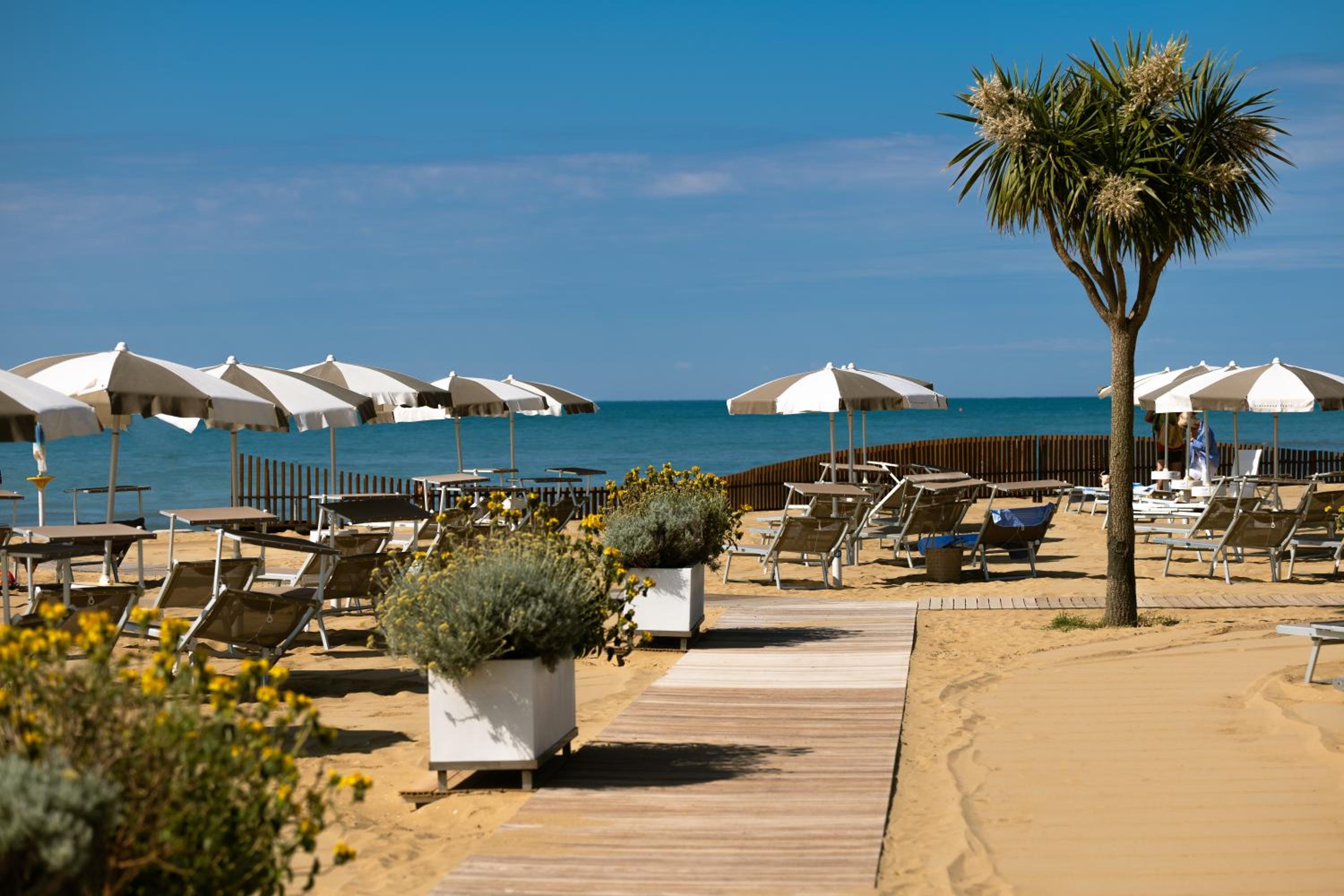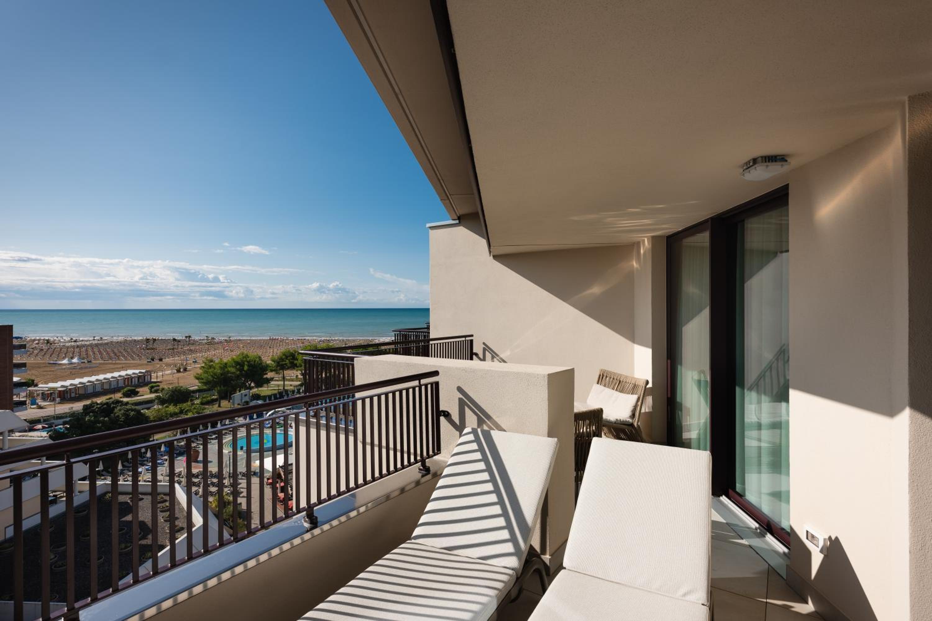 Unwind by the private beach or outdoor pool area, or indulge in a rejuvenating spa treatment at the on-site Spa centre. Take a dip in the indoor pool at Bibione Thermae, conveniently connected to the hotel via an underground passage.