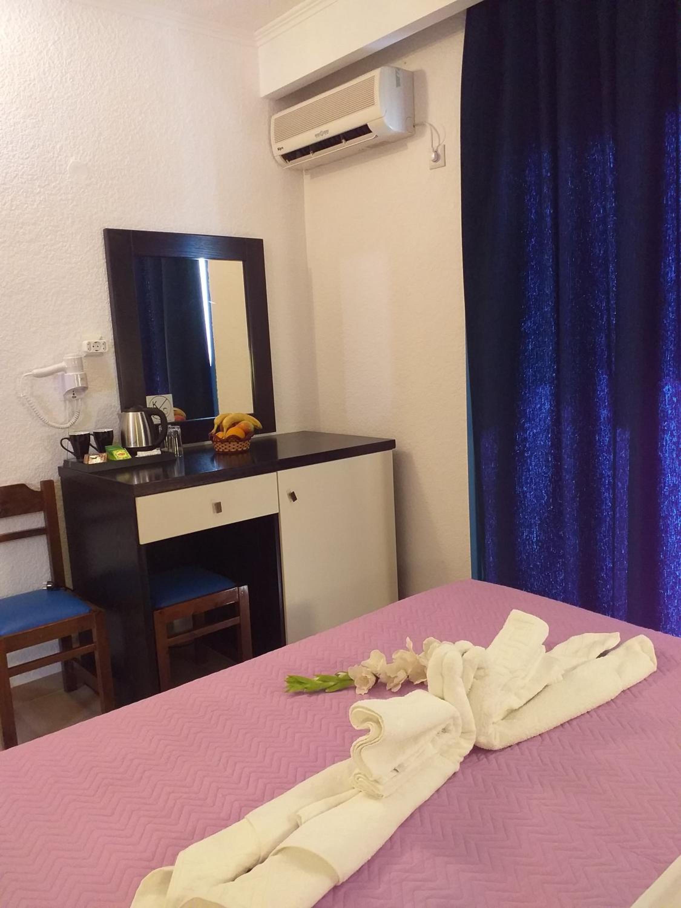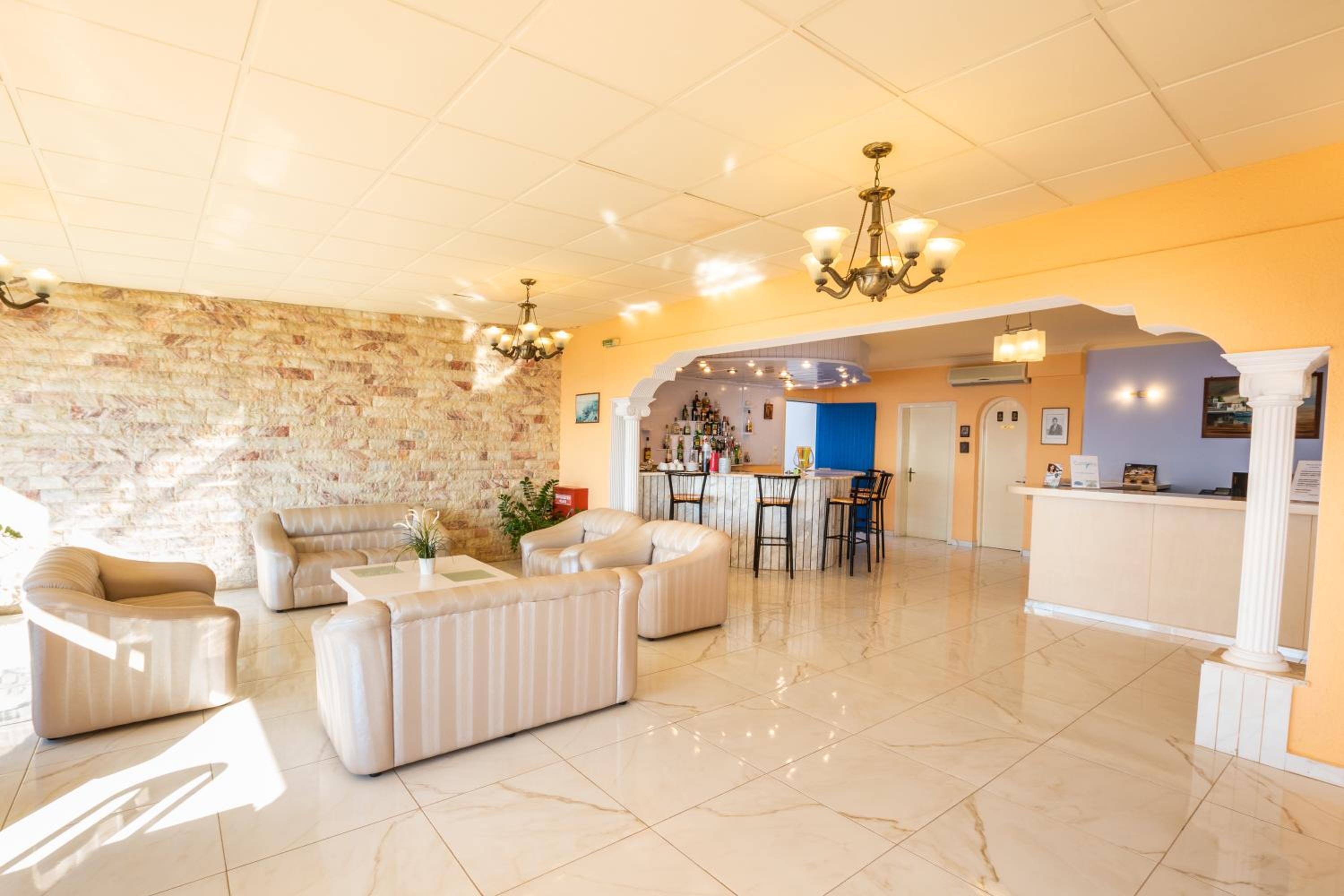 Guests can enjoy the hotel's bar and snack bar, perfect for unwinding after a day at the nearby Maounas Beach, Crystal Calma Beach, or Kastellia Beach. With air conditioning and a safety deposit box in every room, comfort and security are ensured.