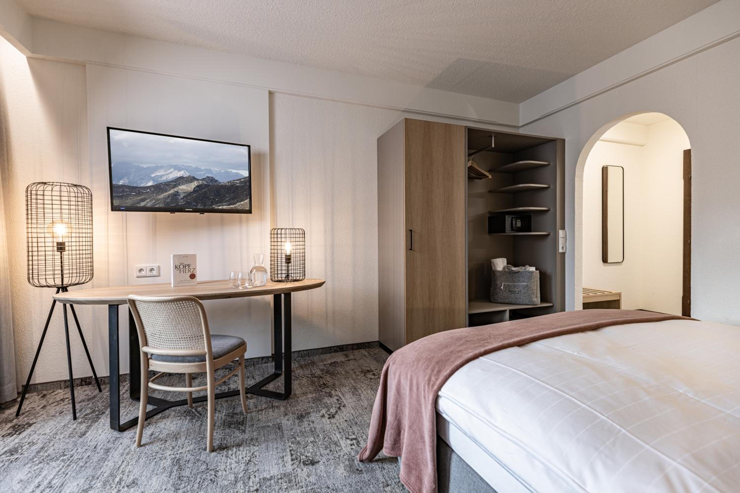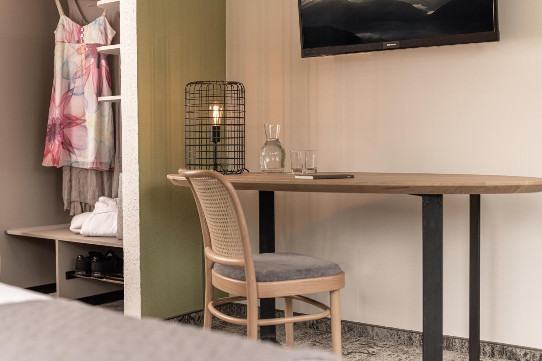 This hotel is a true four star experience. Food-wise, half the menu is plant based so we were very happy to not have to worry about our choices. Very delicious too. Plant yoghurt and plant milk with oats, seeds, fruit for breakfast was perfect. Staff are incredibly welcoming and helpful. Sauna is luxury (go naked) and indoor/outdoor pool arrangement is very clever, allowing me my traditional birthday cold water immersion (a bit of the outdoor pool is accessible from indoors and water is outside temp - this was Jan). Ski bus stops outside but only a couple of times in the morning and afternoon, otherwise it’s a 10-15 min walk into town. We would definitely visit again as it’s such a great hotel.