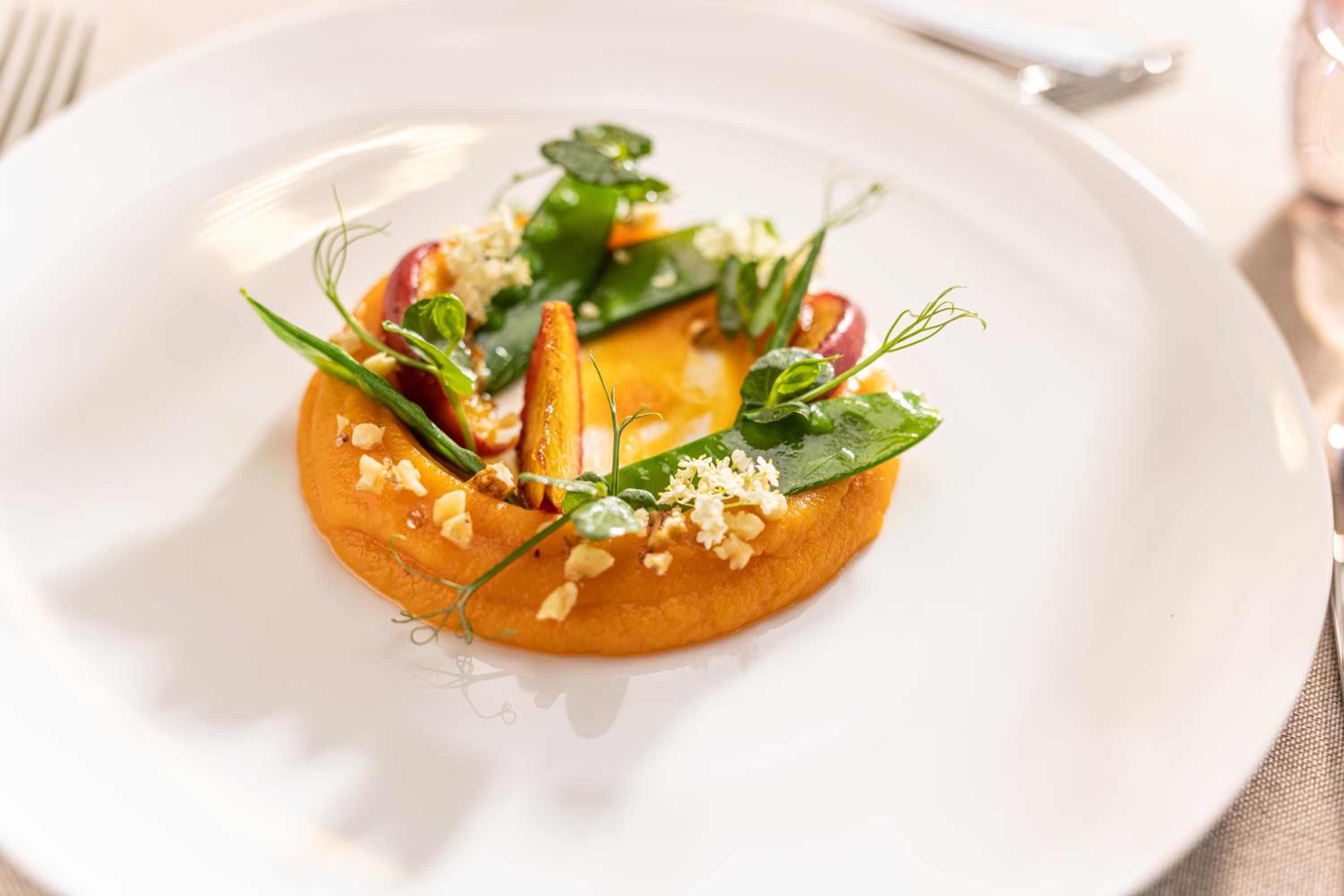 A relaxing and pampering hotel. We were served wine on the terrace even before checking into our room. We received comfortable rooms with a connecting door. It was very convenient that the toilet was separate from the bathroom. The breakfast was very nice, and the six-course dinner was an amazing expeirence — some dishes suited our taste more than others. The staff was kind and helpful.