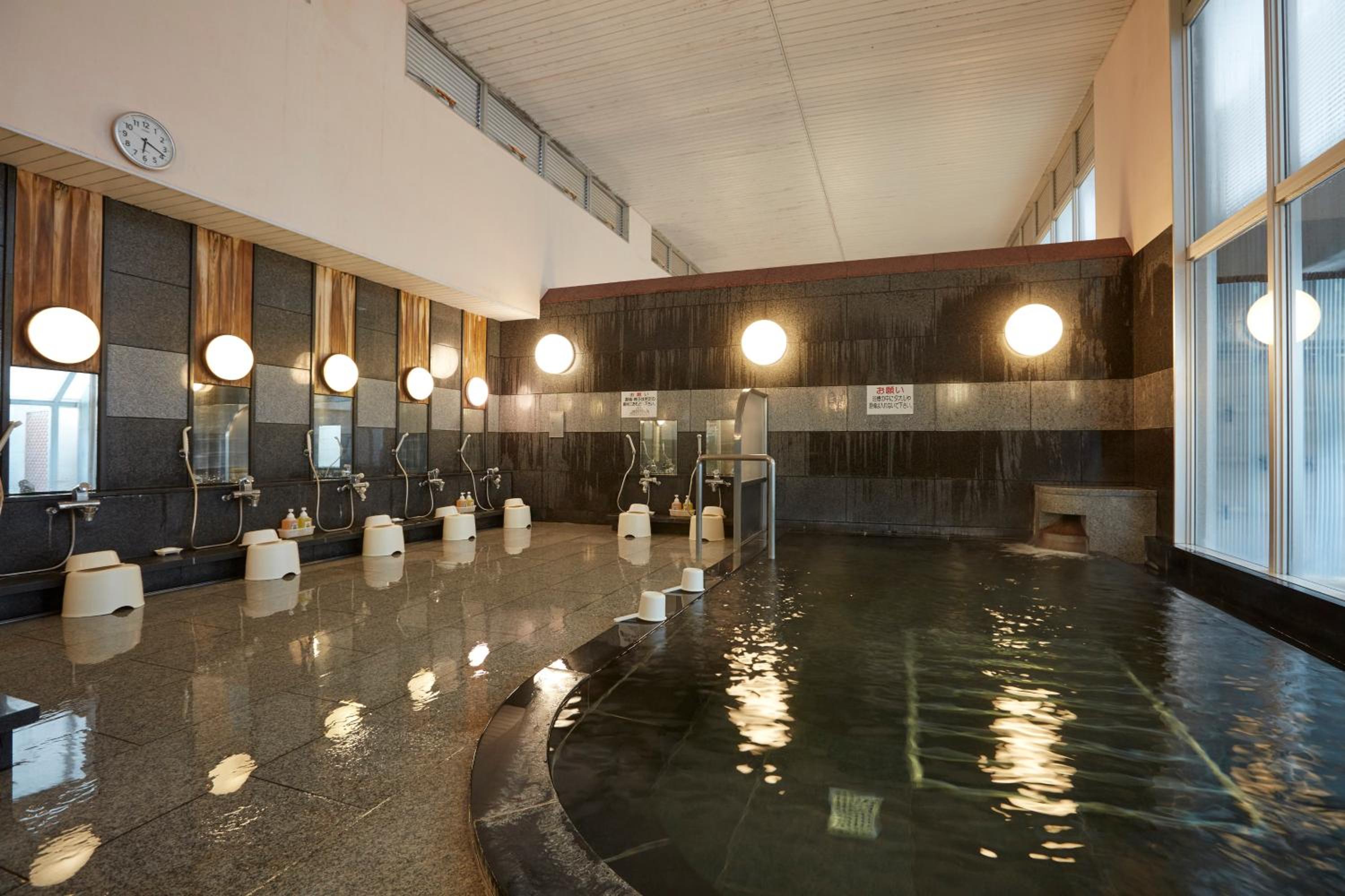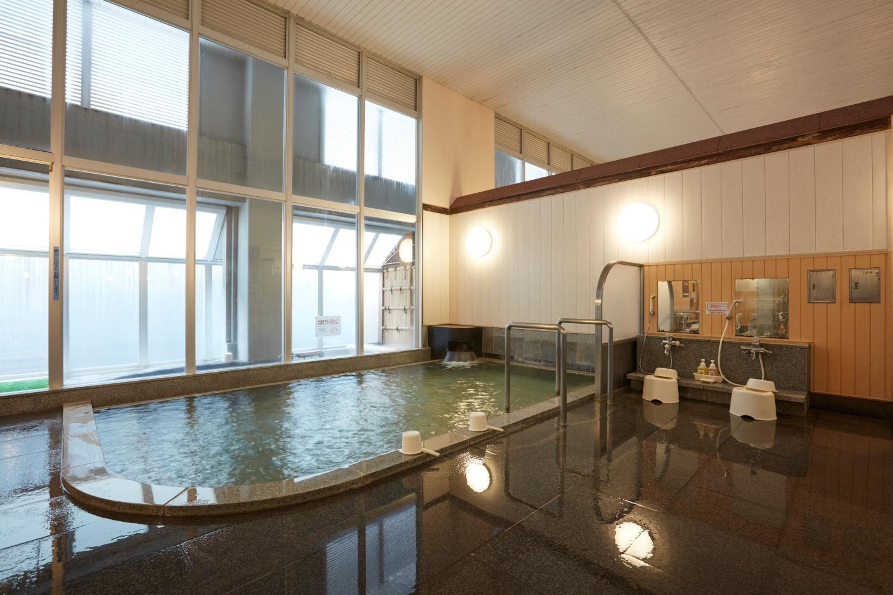 Hotel Folkloro Takahata offers a rejuvenating experience with its hot spring bath, perfect for unwinding after a day of exploration.
