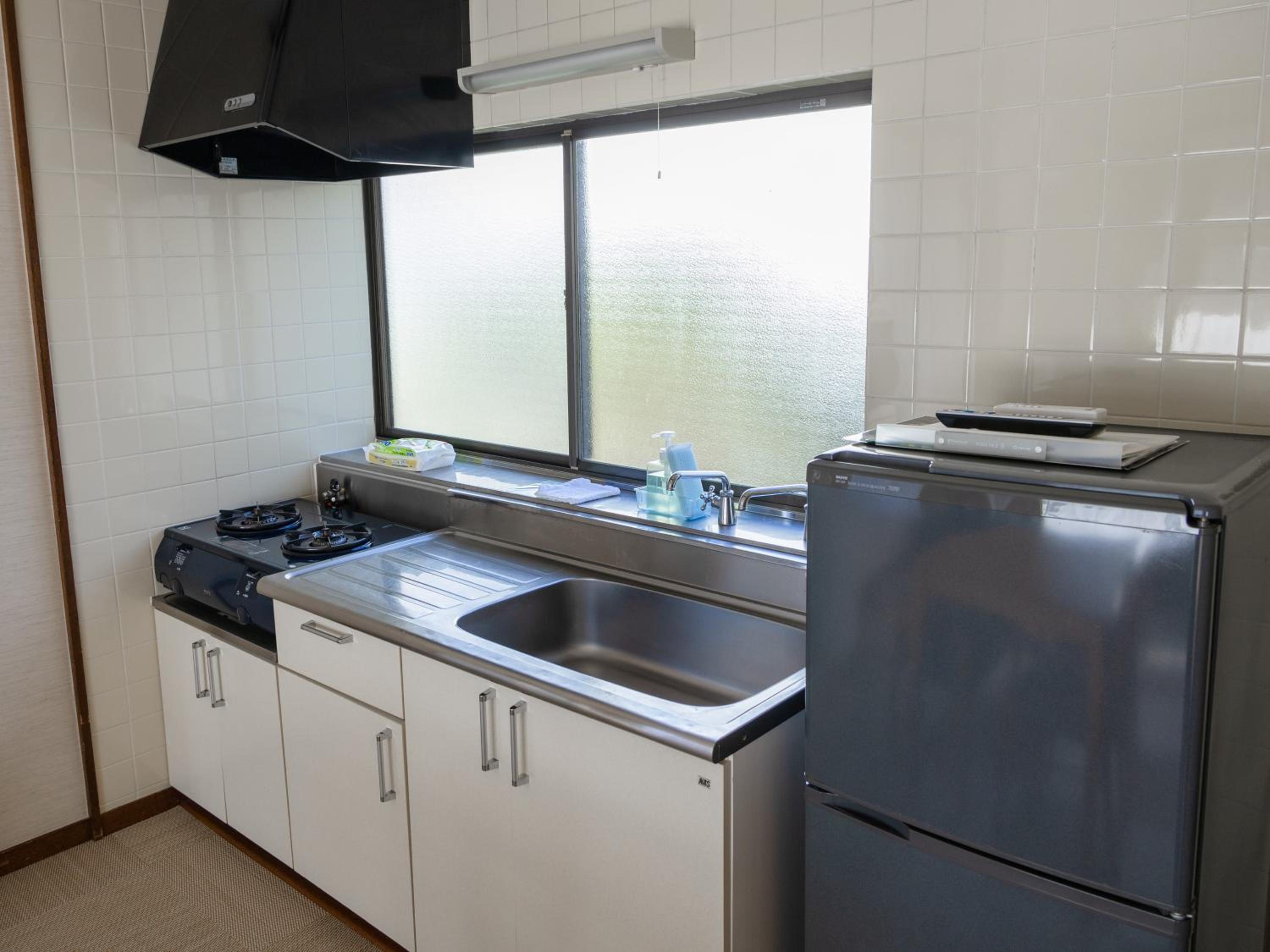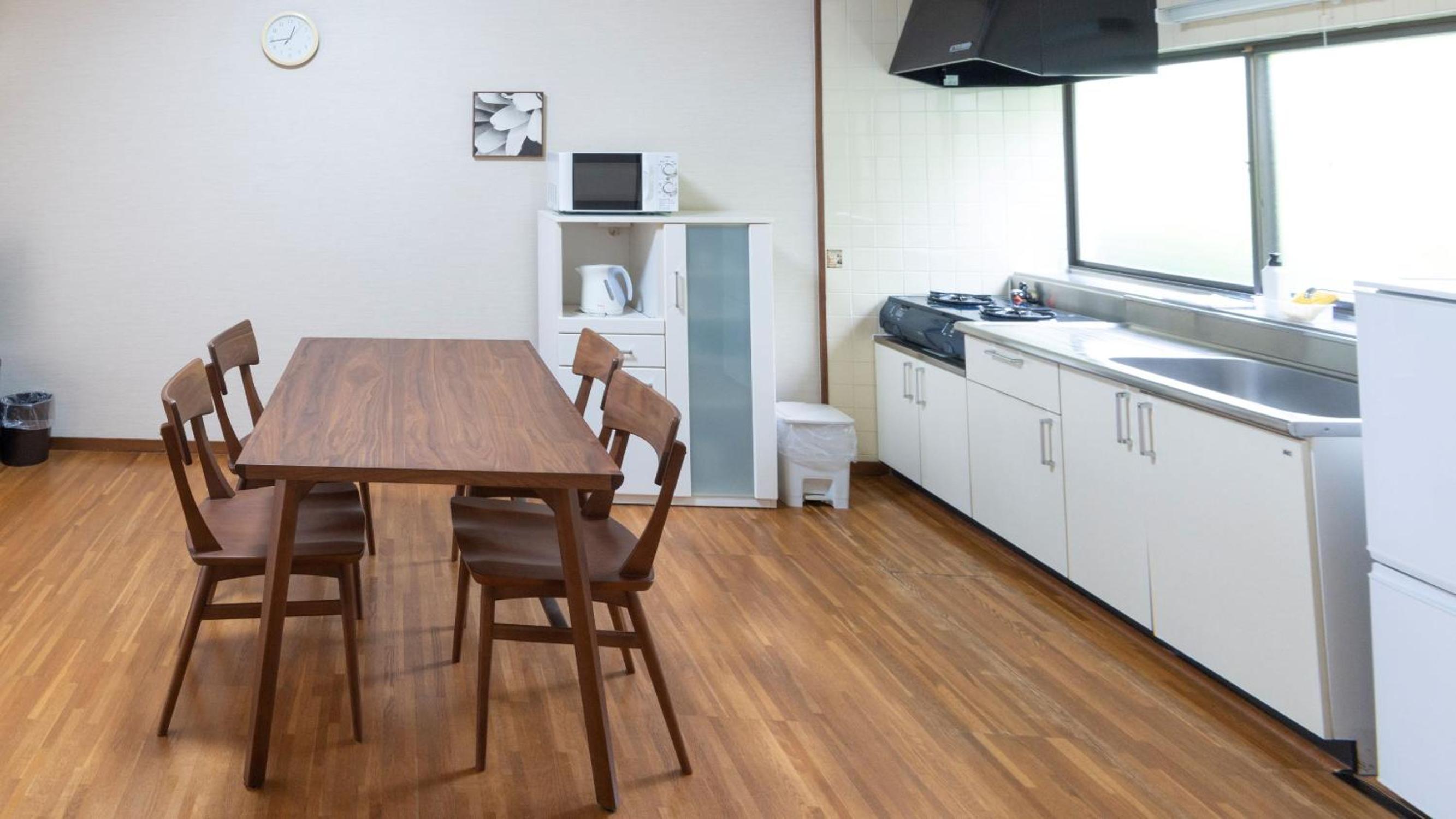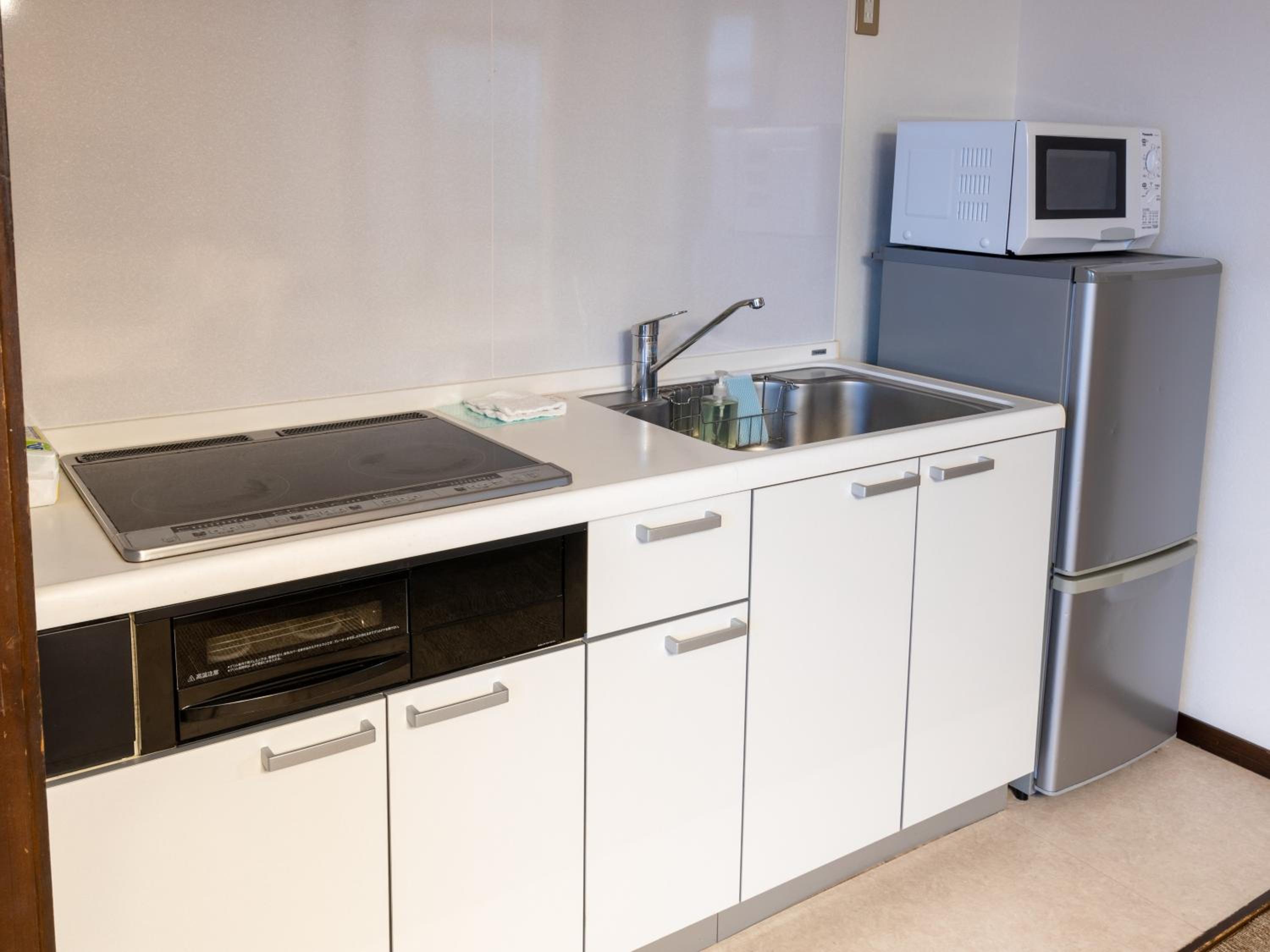 据付のキッチンには、統一感のある食器類も一通り用意してありとても良かったです。