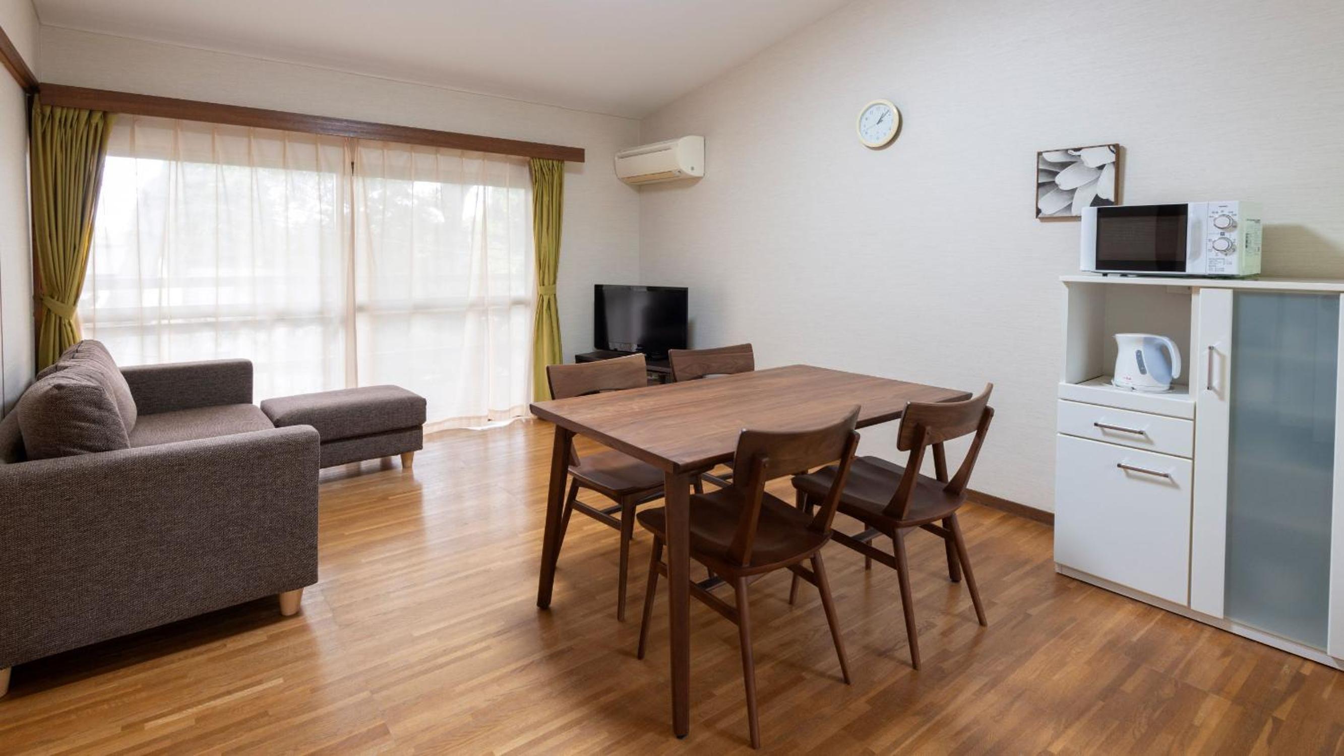 メゾネットの部屋でしたが、大変広く、掃除もいきとどいており、また、静かで快適でした。スタッフの方たちも皆さん感じがよく親切でした。駅への送迎も、定時発着ではなく、随時対応なので、大変助かりました。