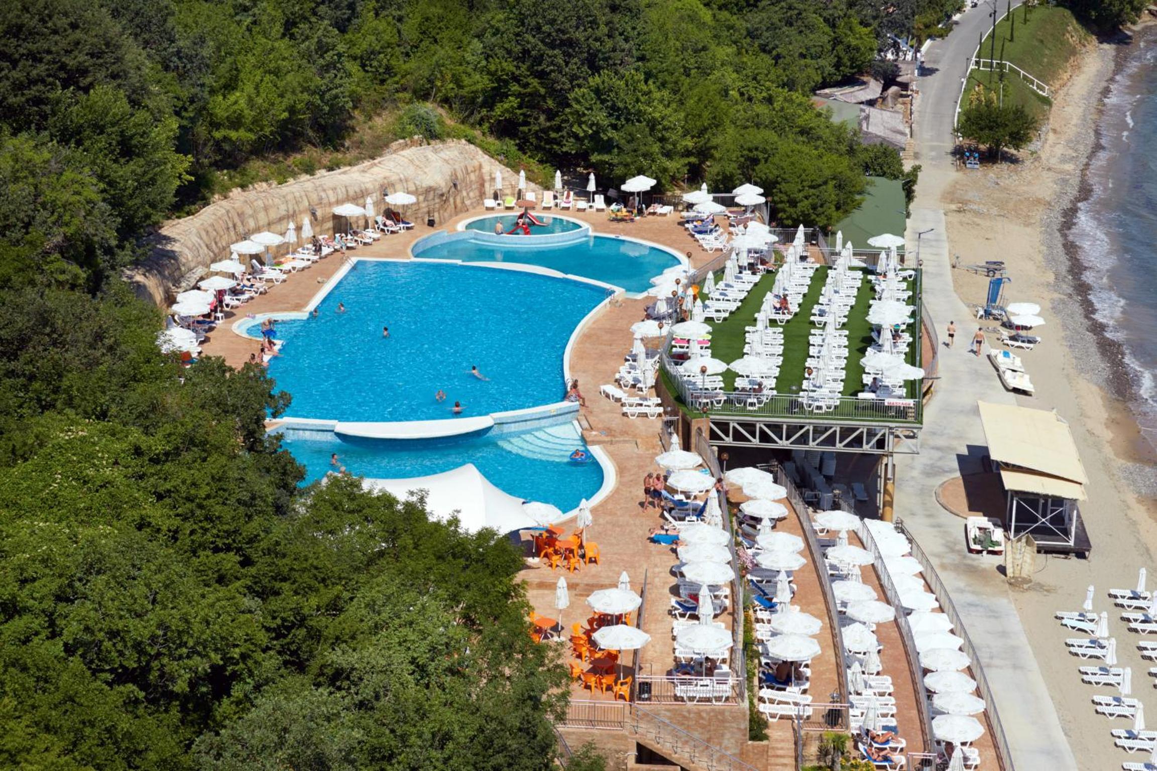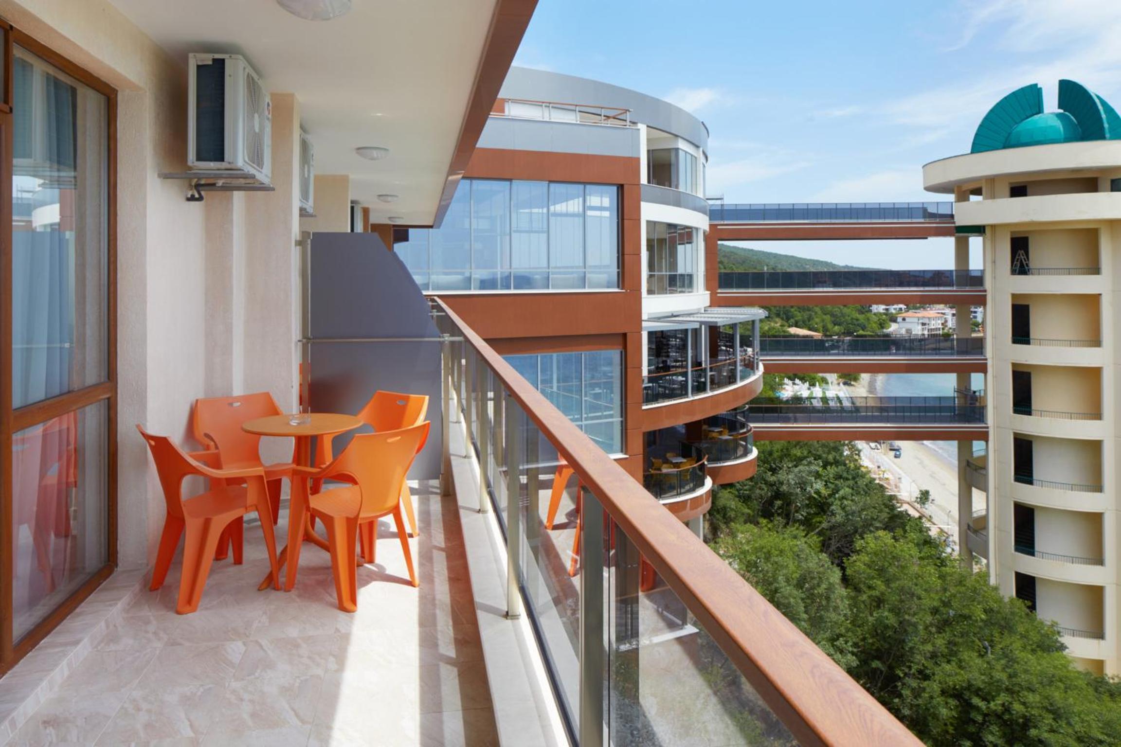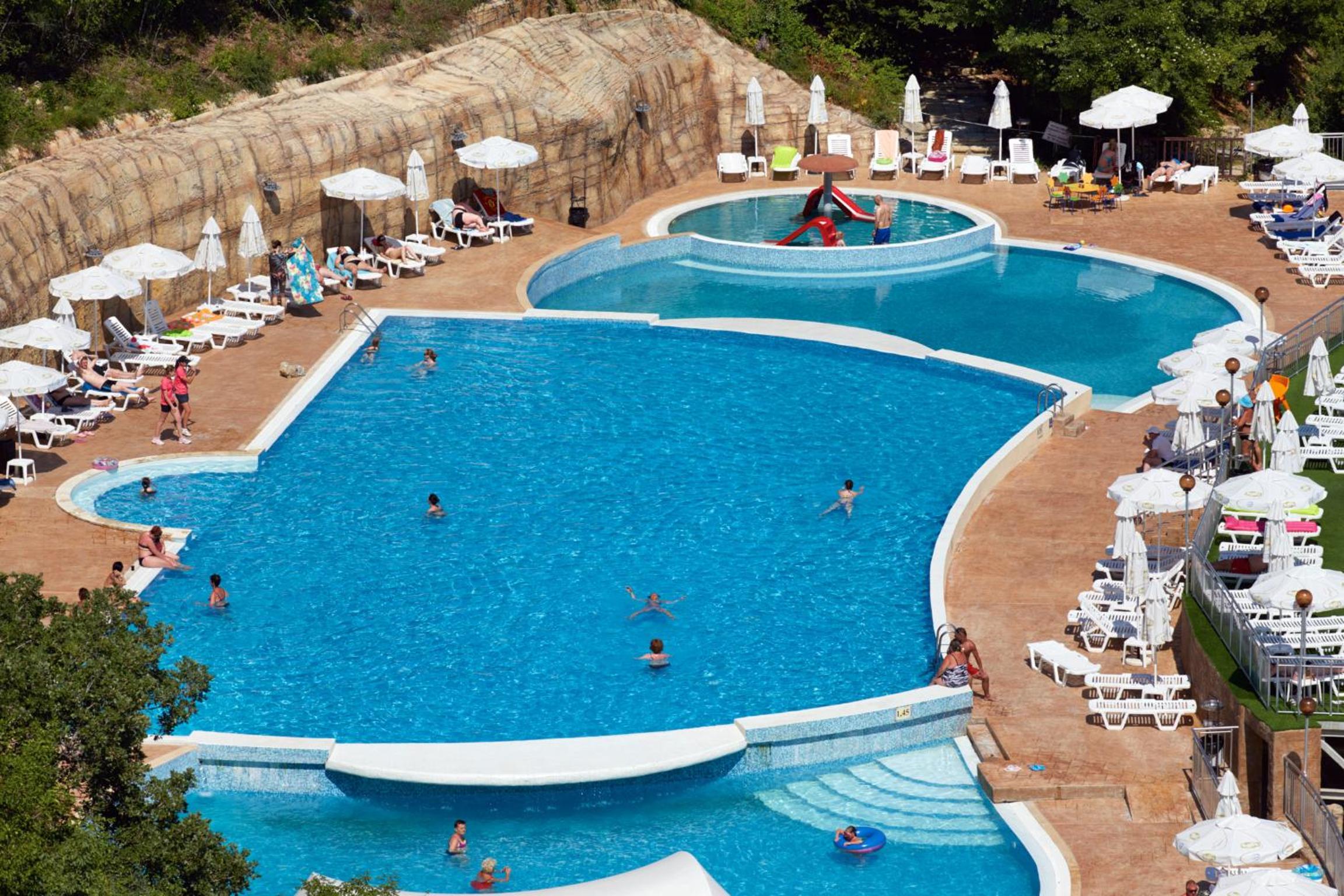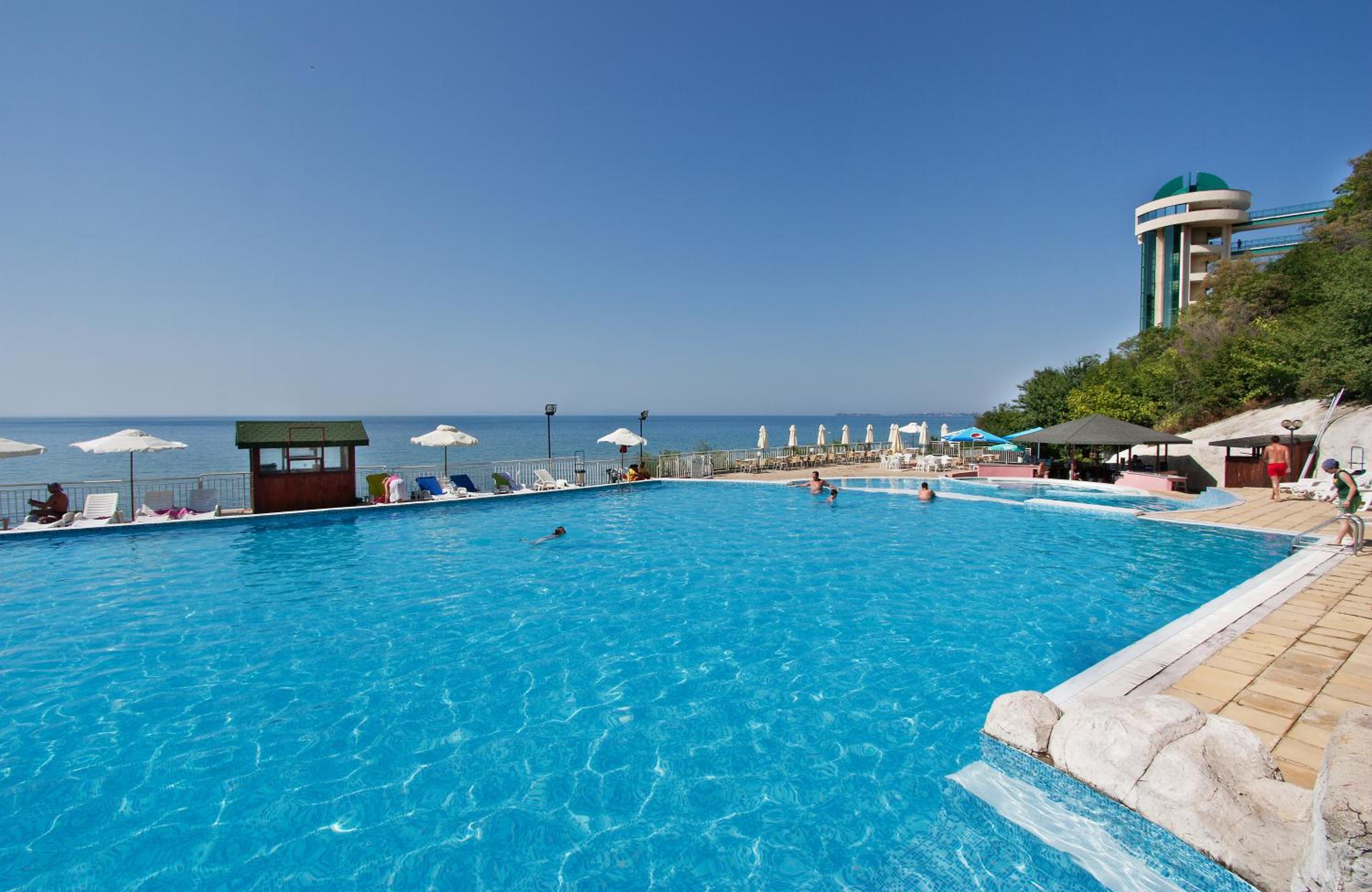 Situated on a beautiful sandy bay, 6 km north of the Sunny Beach resort, the hotel provides a picturesque setting for a relaxing vacation. Guests can enjoy stunning views of the sea or the lush park from their room balconies.