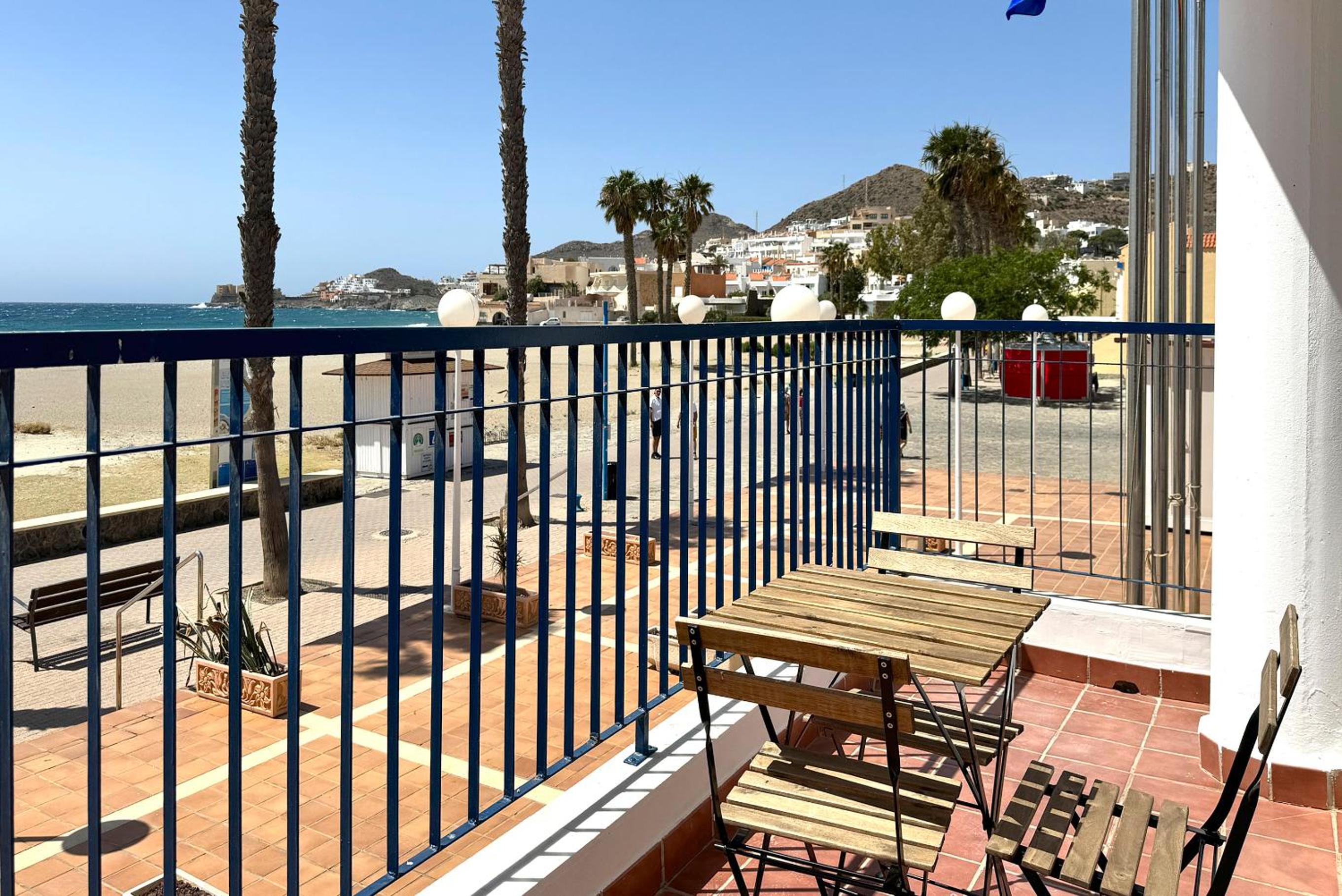 A pie de playa. Personal agradable. El balcón.