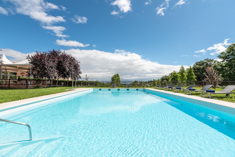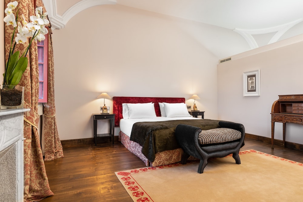 Astonishingly beautiful renovated palace with stunningly kept gardens and fountains. Fruit trees and flowers abound. The rooms are tastefully furnished with antiques and are spacious and light filled. The restaurant is closed on Monday so it’s a challenge to get food as it’s a long drive from town. The breakfast buffet is excellent especially the seating area. I would return here just to stay here again!