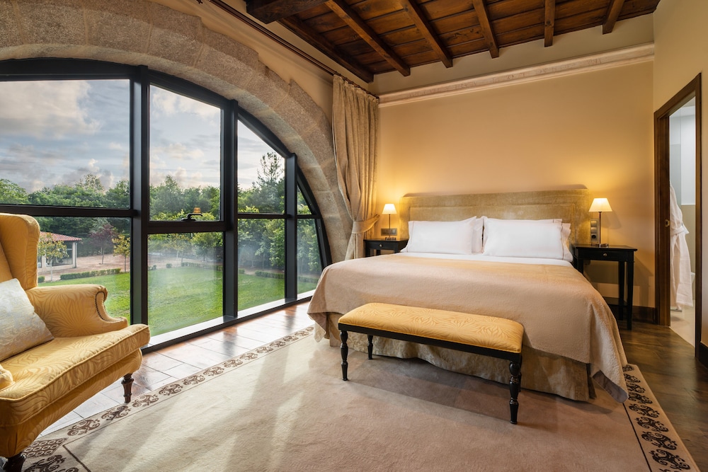 Está situado en una zona aislada, pero ideal para visitar las bodegas de la Ribeira Sacra. El edificio es muy curioso y la habitación era grande y cómoda. Buena piscina, si el tiempo permite usarla. Desayuno correcto y muy buena opción para cenar, con comida gallega, pero no muy tradicional.