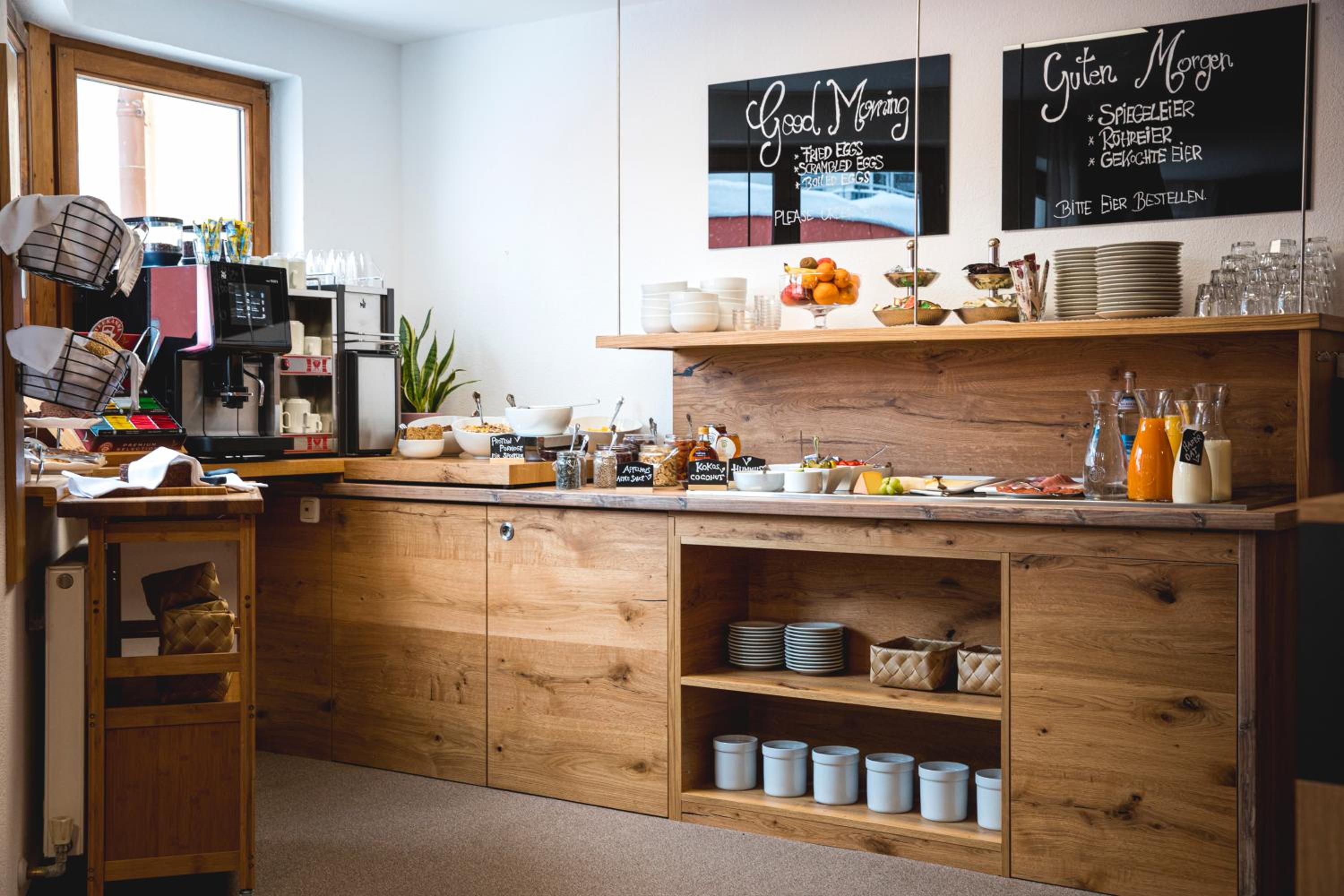 Good buffet breakfast with some local products and freshly prepared eggs, comfortable lounge room on the ground floor with free coffee/tea all day long, relaxing sauna with quiet room in the basement available to guests in the afternoons and evenings, free parking in the back of the house, excellent location near the town center within walking distance from the ski lifts, fast and easy check-in and check-out, discrete and friendly but efficient staff who made it a very relaxing and enjoyable stay.
