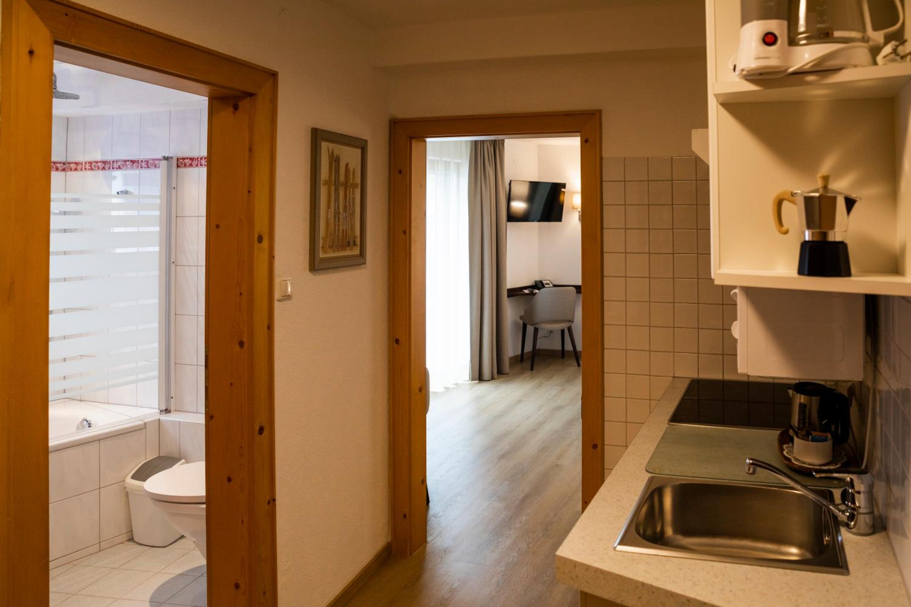 This is a small family hotel, very clean and cozy. It is located on the main street but not in an area with a lot of noise. There is parking next to the hotel. Nice breakfast. On the entrance floor there is a room where you can sit on comfortable sofas and armchairs, drink tea or coffee from a well-stocked coffee machine. In the same building there is a very good restaurant with Austrian cuisine, recommended. We really enjoyed the spa, it was really nice to rest there after a day of intense skiing. The owners are generous and caring people. Our check-out was very early and they made sure to organize a breakfast for us .We will definitely be back.