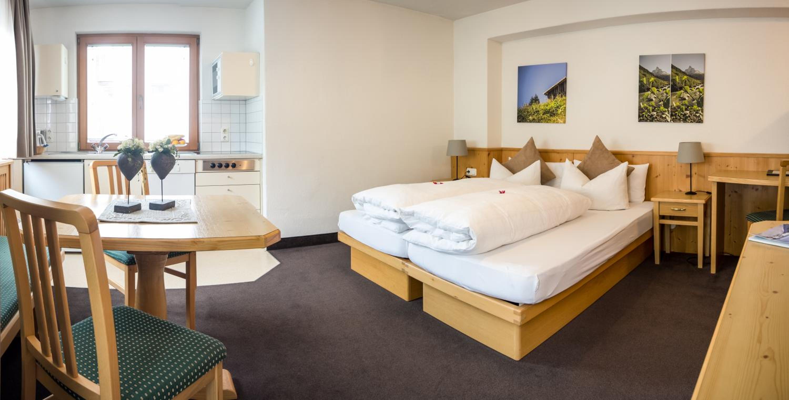 Läget är mycket bra, mitt i byn. Omtänksam, trevlig och omhändertagande personal. Supersköna sängar och kuddar.