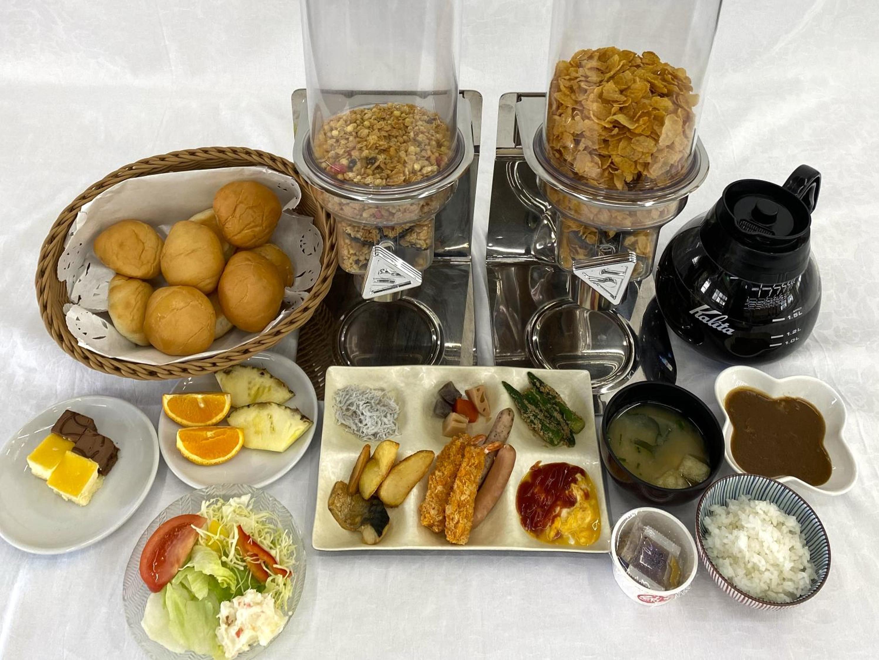 Guests can enjoy a buffet breakfast, access to a hot spring bath, and the convenience of English and Japanese-speaking staff at the 24-hour front desk.