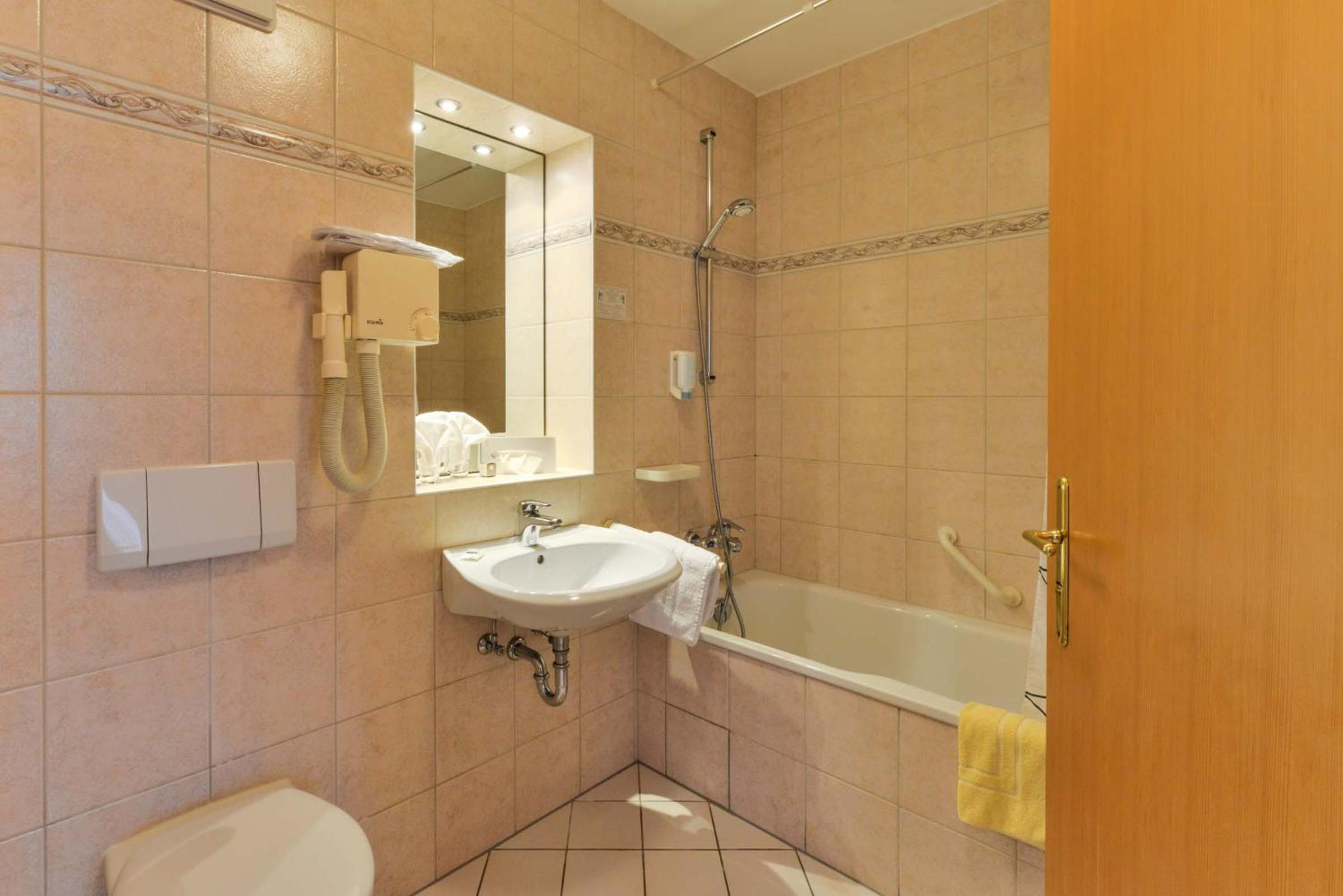 Unwind in the sauna or solarium, indulge in rejuvenating massages and beauty treatments, and savor delectable Bavarian and French cuisine at the on-site restaurant or beer garden.