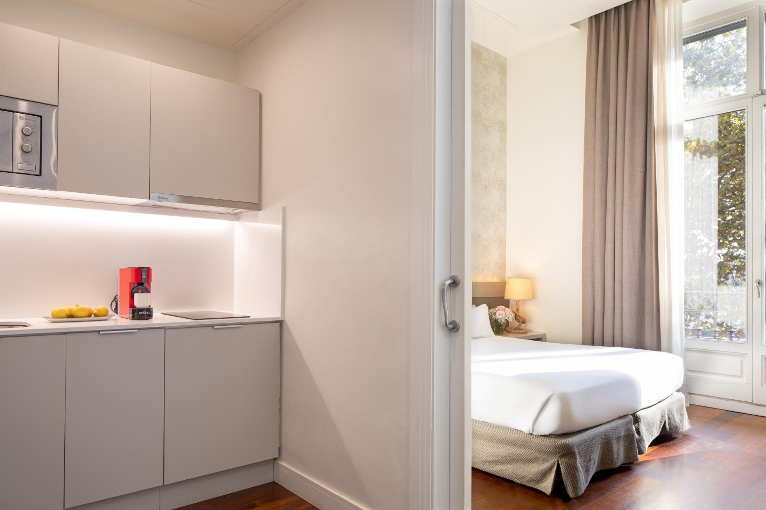 Experience the perfect blend of history and luxury at Duquesa Suites Barcelona. Set in an 18th-century building with Speciality Monument status, our hotel offers elegantly designed rooms featuring modern amenities such as air conditioning, flat-screen TVs, and capsule coffee machines.