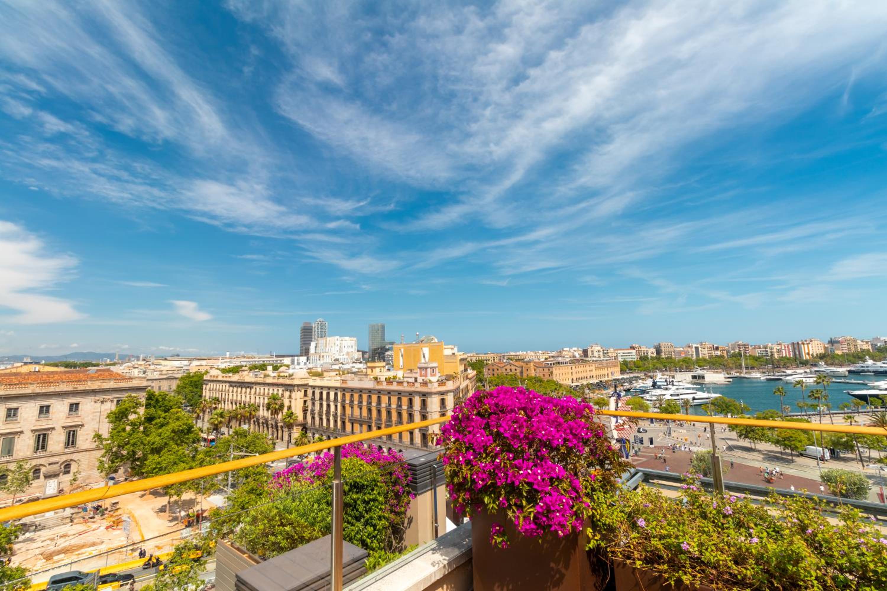酒店的顶层风景很好,可以看到巴塞罗那的旧港海港,在那看日落超级棒!早餐非常好,房间干净,床很舒服,前台服务很耐心和热情,洗漱品很好,还具备有一次性的拖鞋和牙刷和牙膏,这是欧洲很多酒店没有的,还有地理位置特别好,酒店前右边步行几分钟就有城市观光巴士站,酒店楼下还有小超市和好多餐馆,特别是华人开的西班牙餐馆,超级方便!!!特别谢谢酒店的服务是:给我们送来结婚周年纪念日祝福的香槟和巧克力和离开酒店前一个晚上的欢送红酒,还有酒店还带有飞机场接机的免费服务!