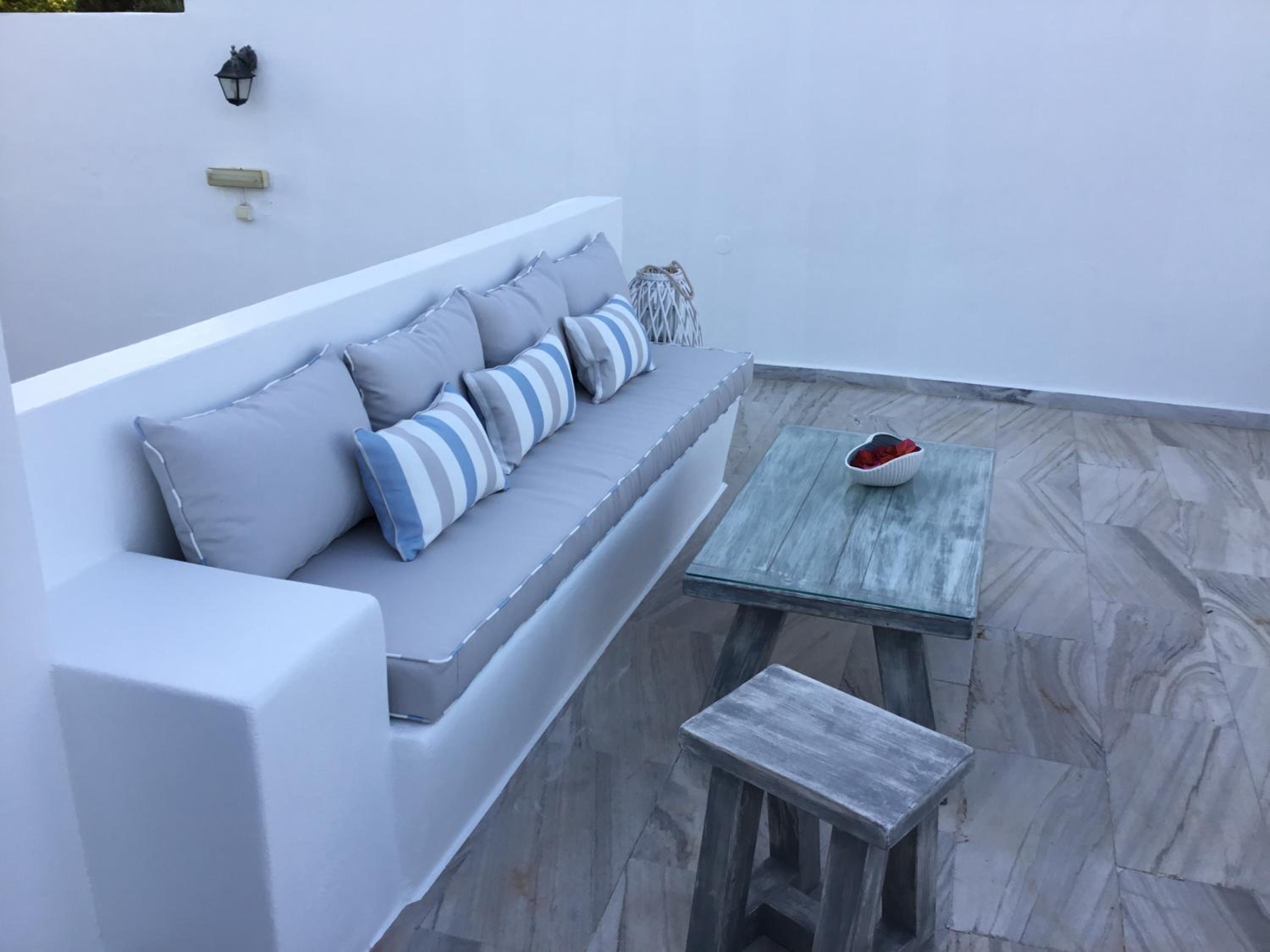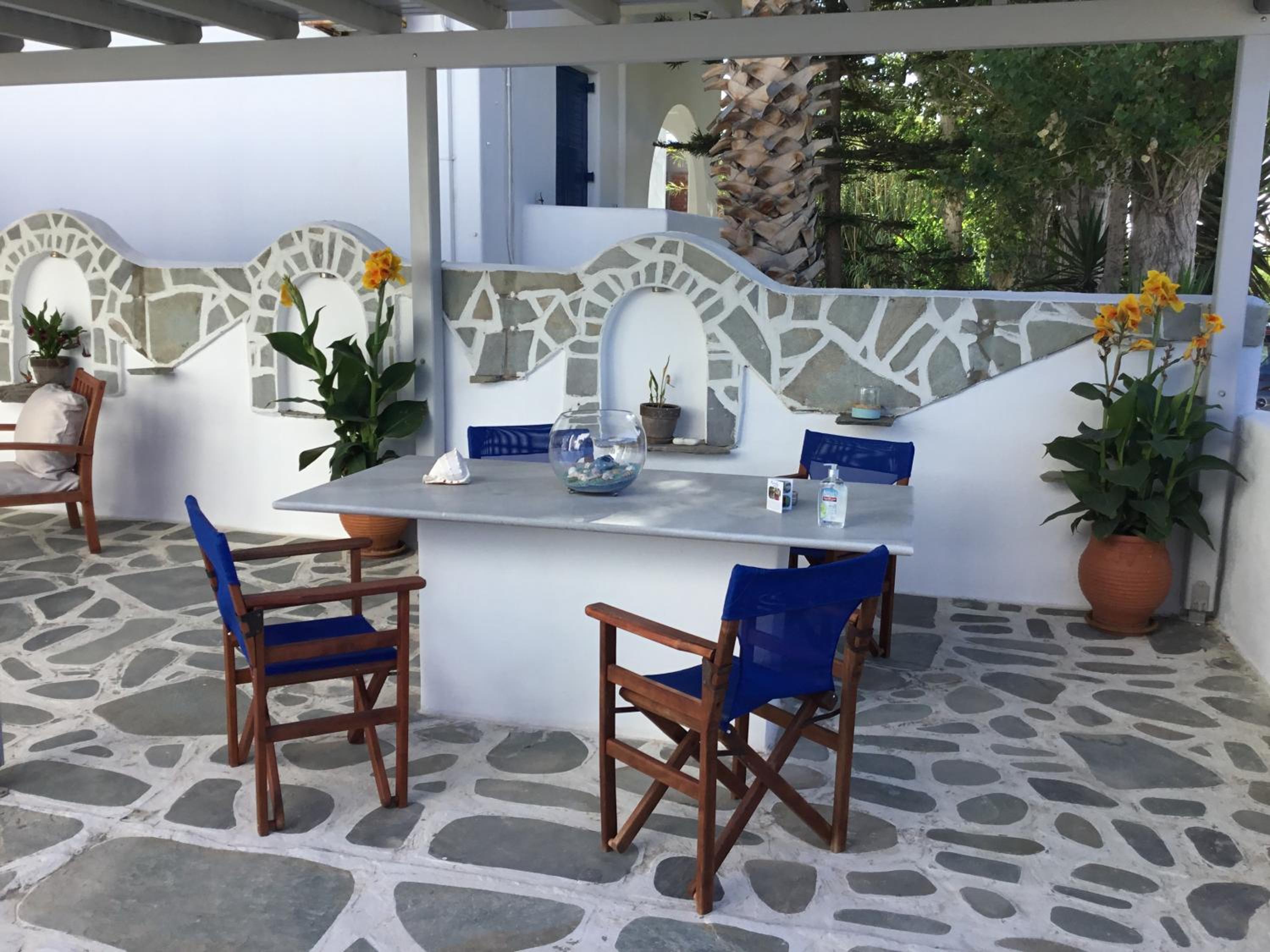 Loved the little balcony to have dinner, close to the main part of Paros and port. Was cleaned everyday and the host gave us a bottle of wine to have with our dinner one night. She was so so lovely!