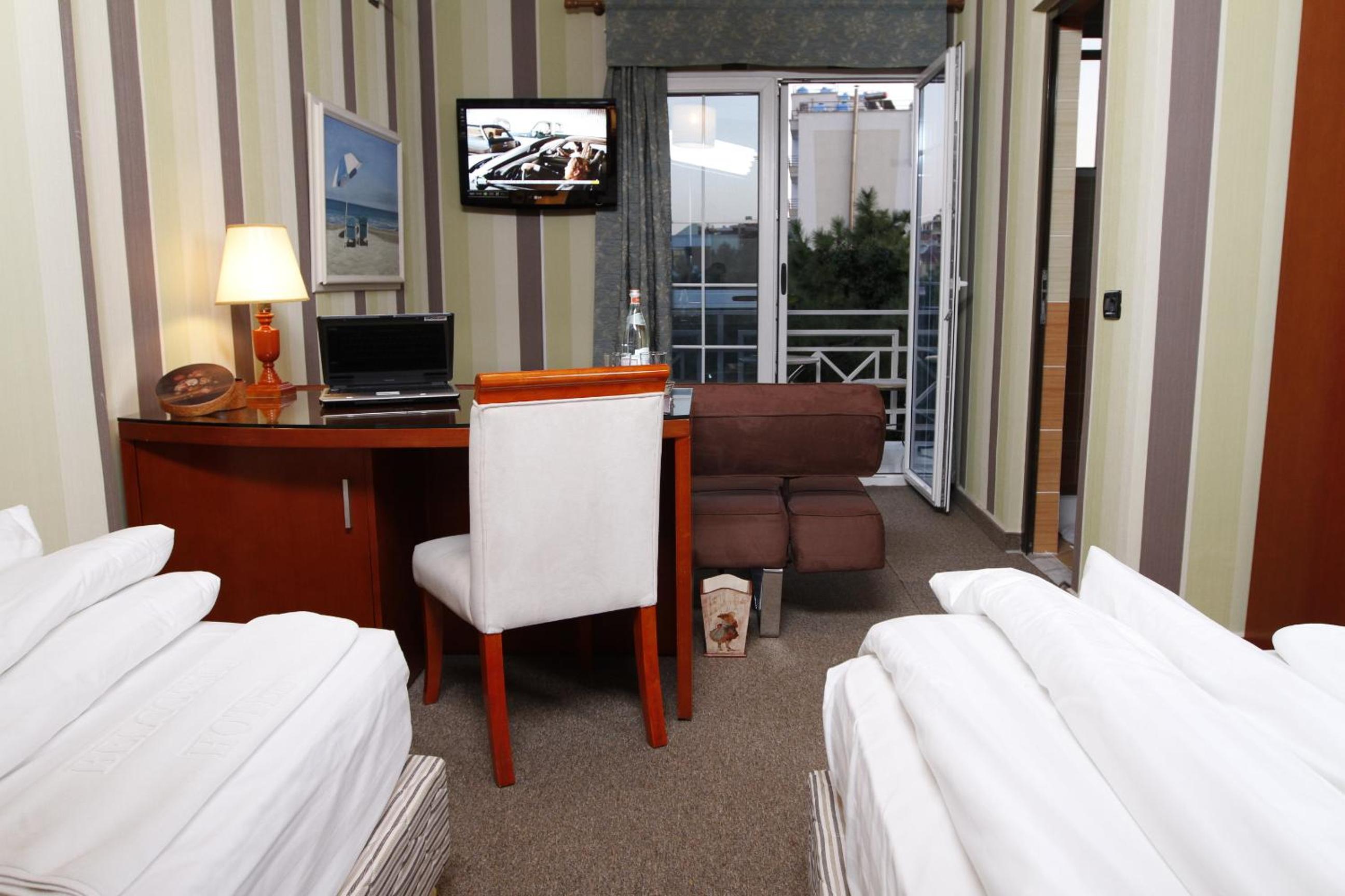 Bel Conti Hotel in Durrës provides a luxurious escape just steps away from a private sandy beach. Enjoy the sun and sea breeze from the comfort of elegantly decorated rooms with balconies.