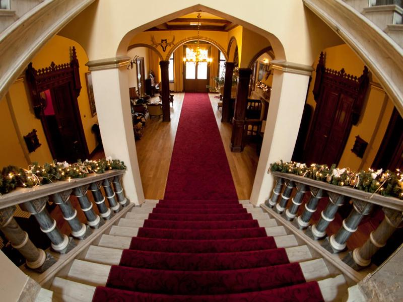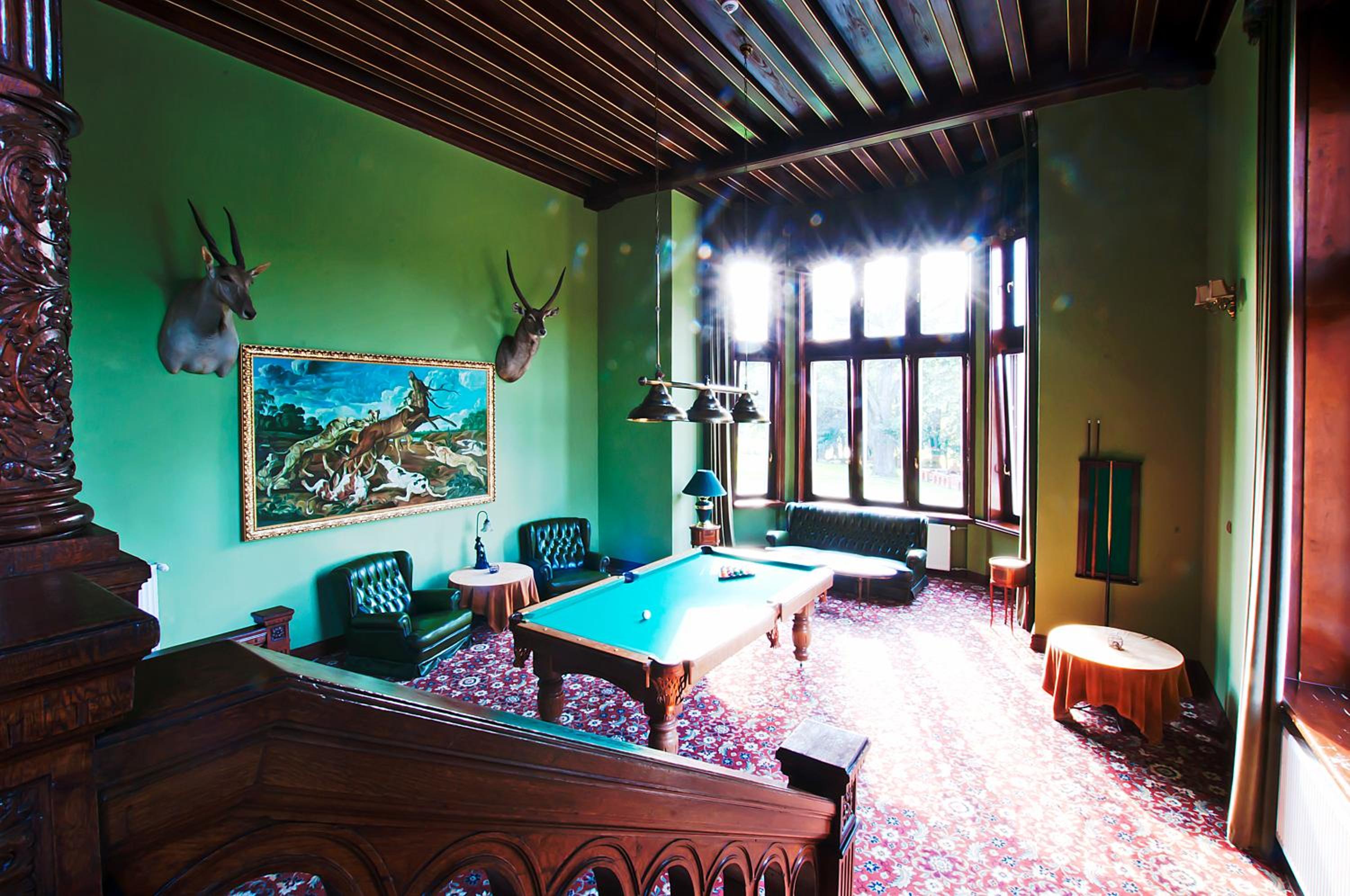 Sam pałac i klimatyczna jadalnia.