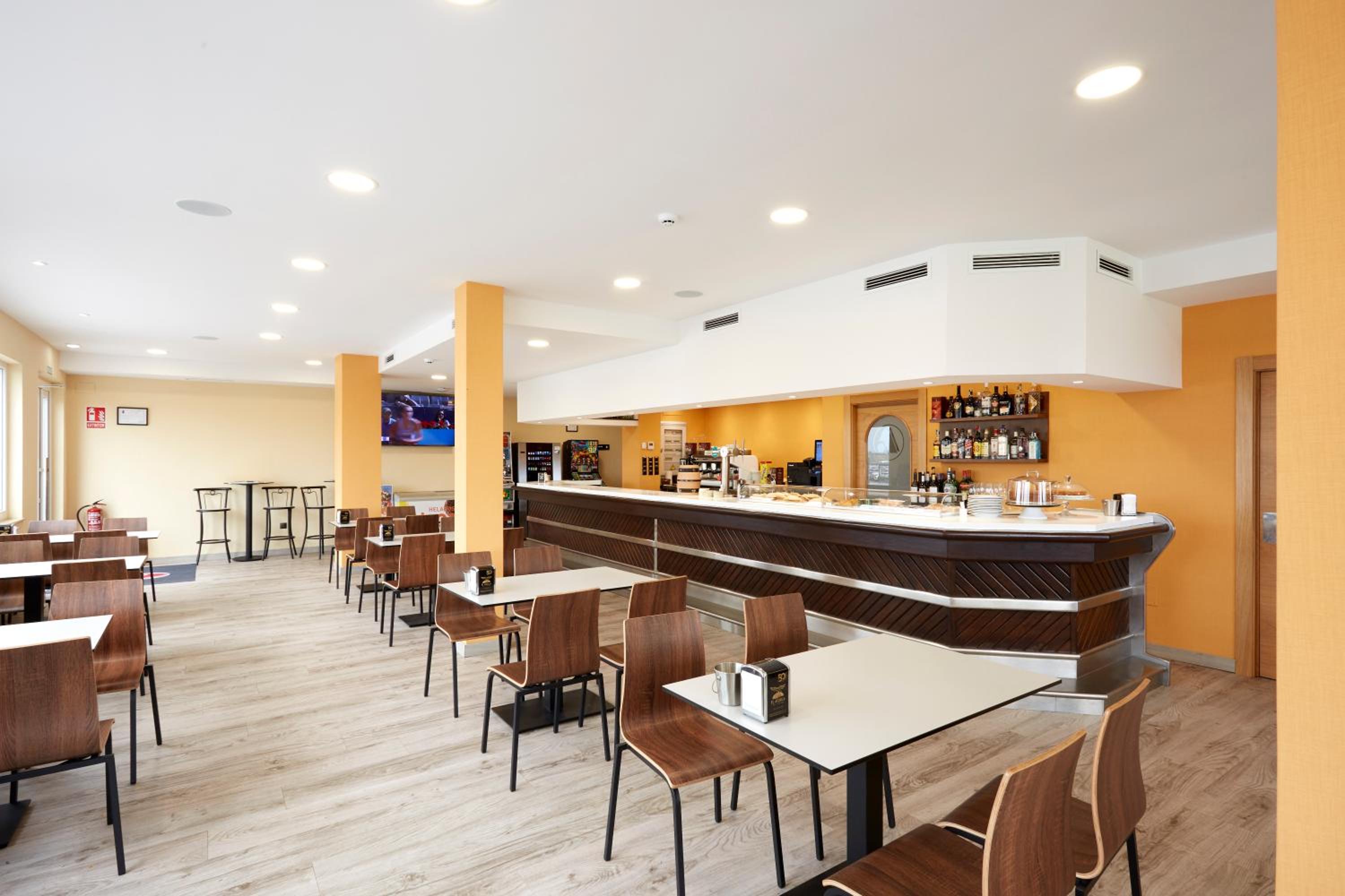 Siempre que volamos desde Asturias nos alojamos en este hotel para poder ir andando al aeropuerto. Tiene parking propio y más barato que el del aeropuerto. Se puede comer en la cafetería. El personal siempre muy atento.