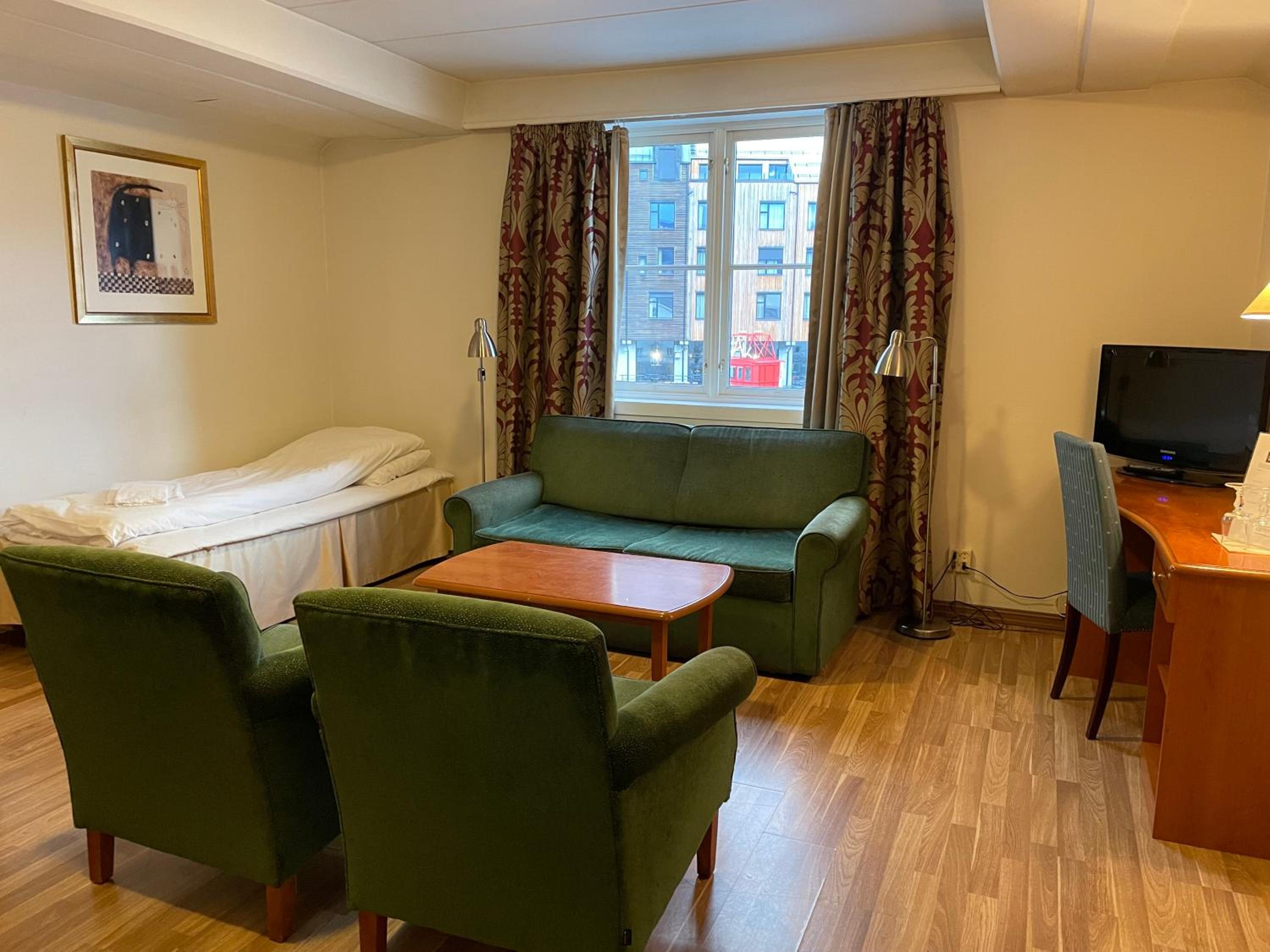 Geen enkele faciliteit was geopend. Restaurant en bar alles was dicht ondanks dat grote groep waar we mee verbleven. Dit was vooraf ook gemeld. De kamers zijn sterk verouderd zeker voor Noorse maatstaven. Een bed met spiraalveren is echt veel te oud!