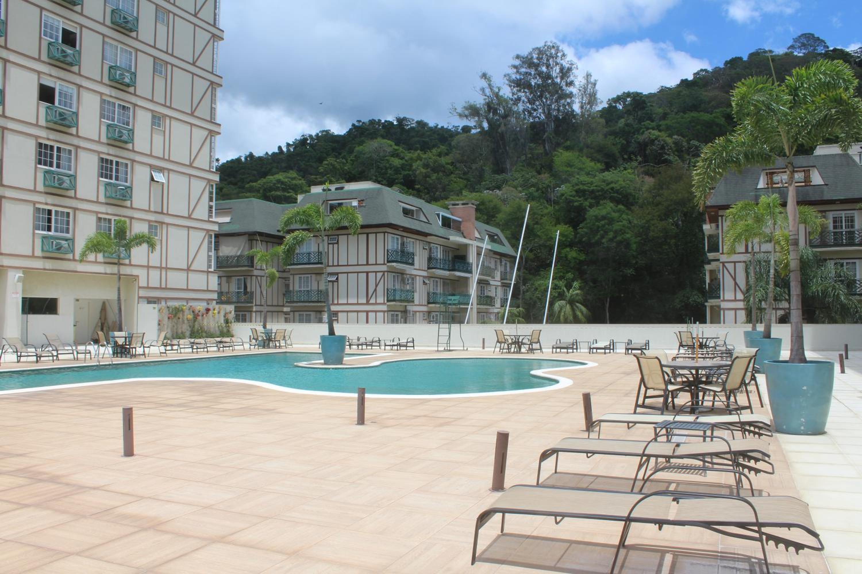 Experience comfort and relaxation at Flat Aconchegante - Granja Brasil Resort - Itaipava with air-conditioned rooms and a heated pool for your enjoyment.