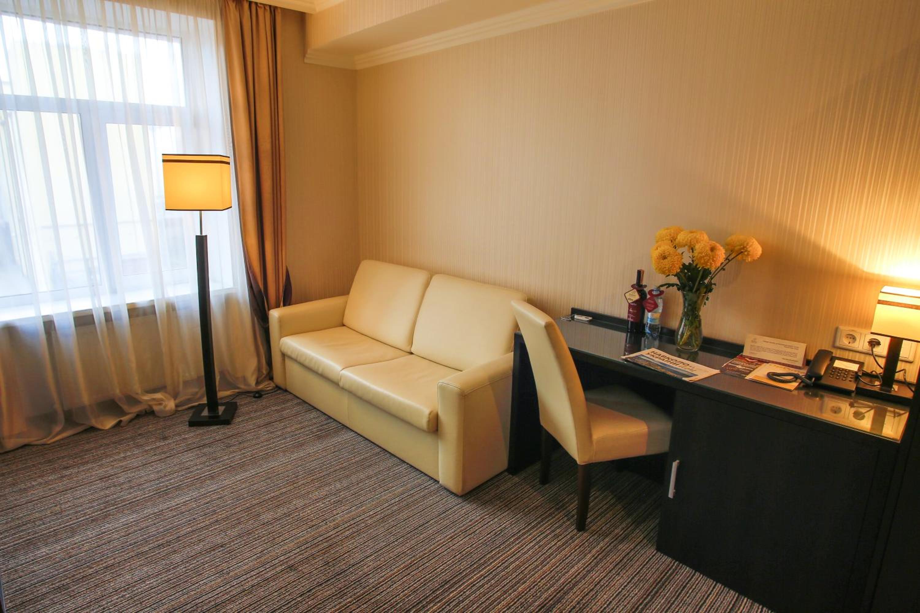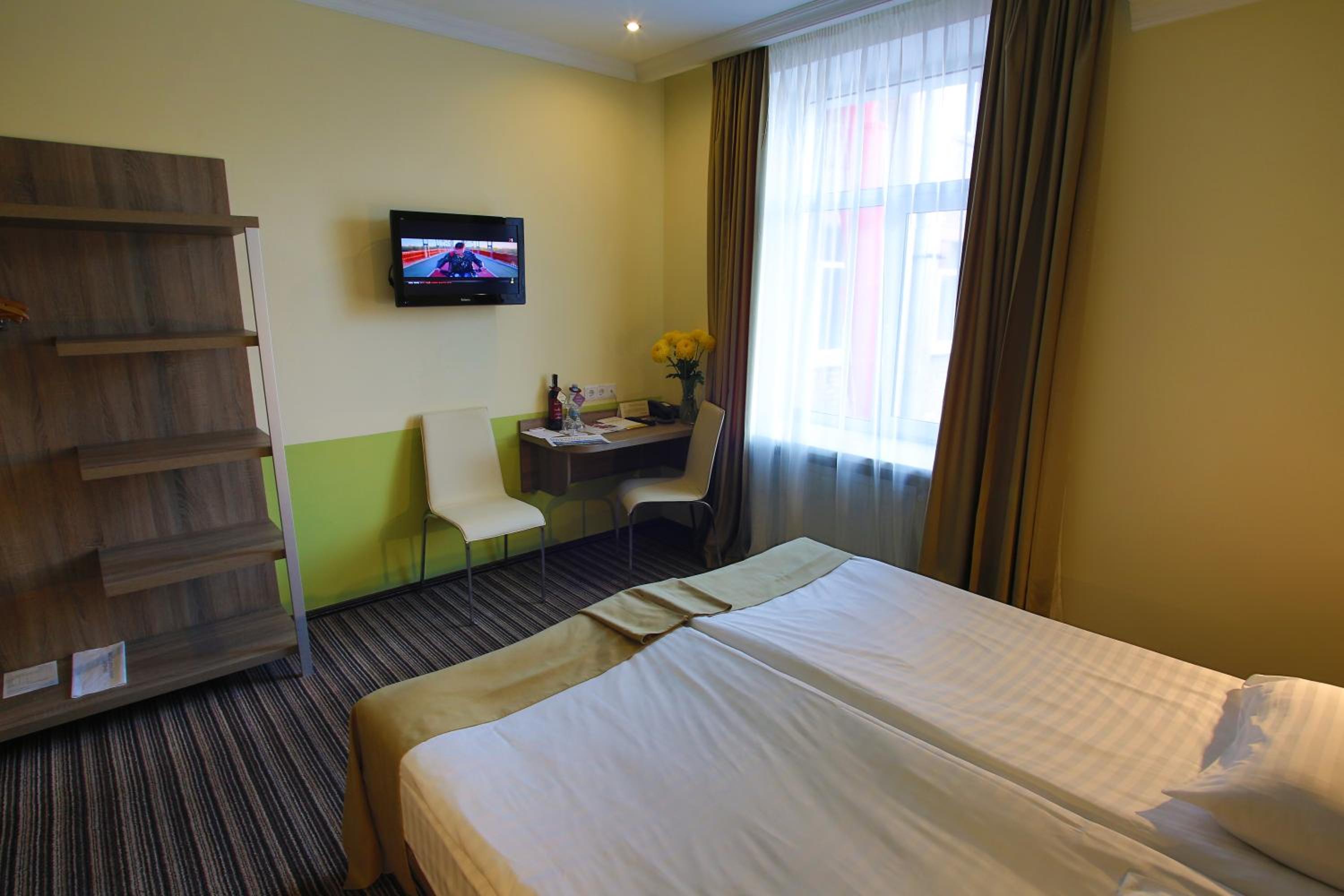 Знімали 2 однакові номери з колегою, за однакову ціну. І питання чого в мене номер кардинально відрізнявся від її номеру, це питання до адміністрації готелю. В неї шафа, ванна кімната, міні бар, в мене кімната малюсінька, без шафи, з душевою кабіною, в ванній кімнаті навіть мила в дозаторі не було. На столі стояла пляшка вина за 250 грн, прострочена як 2 рік.